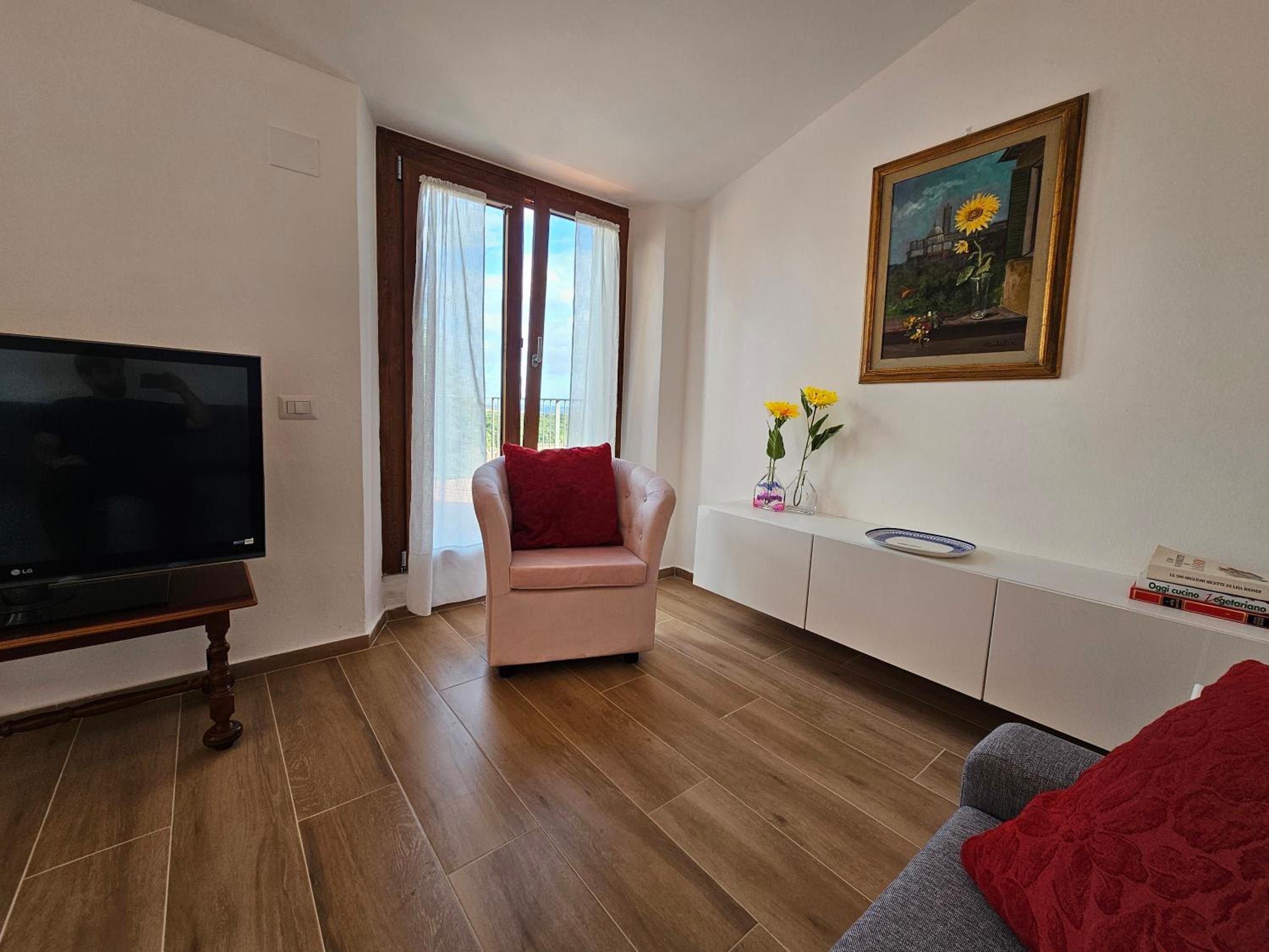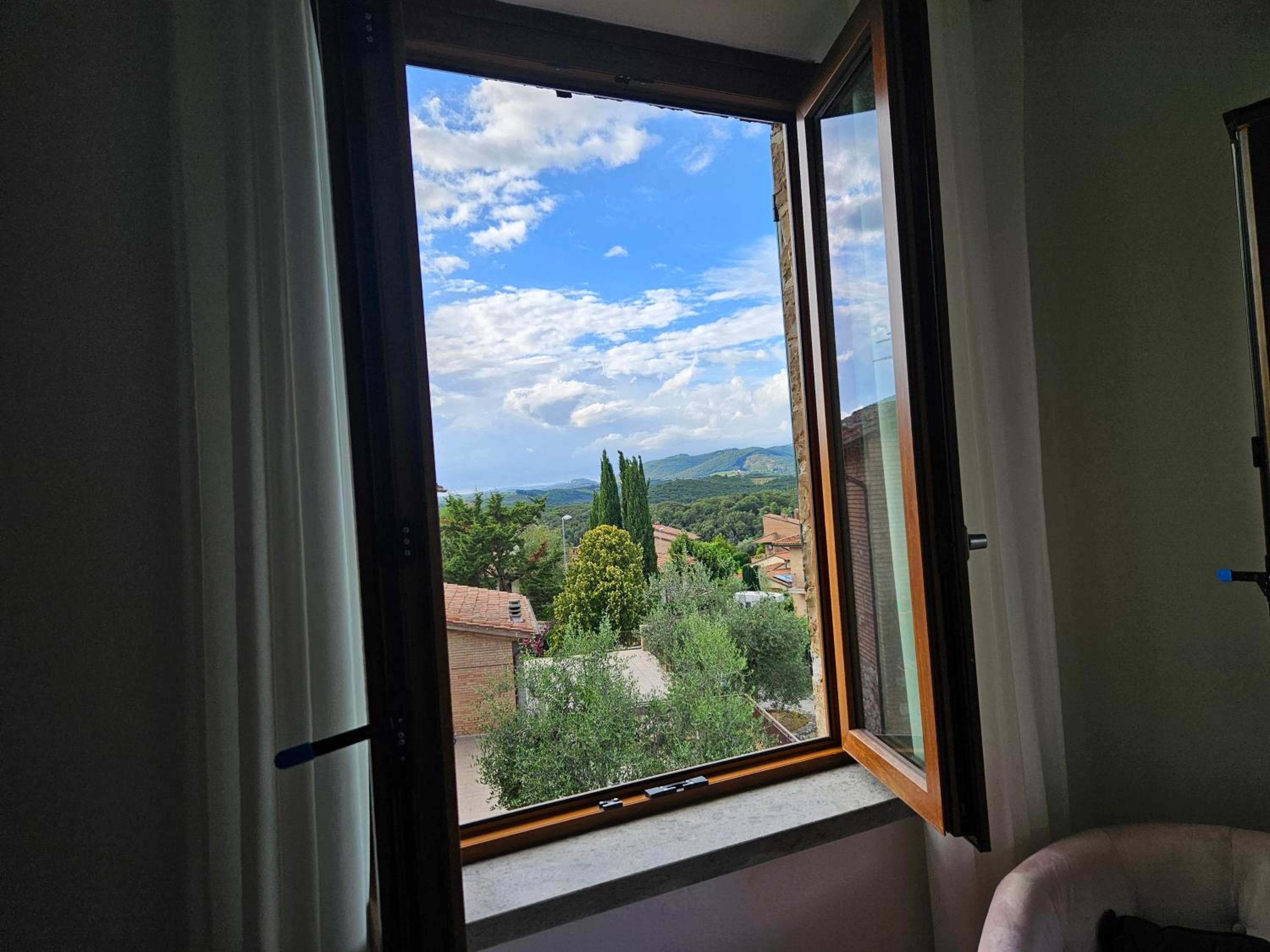 Una casa preciosa en un pueblo muy bonito de la Toscana. Nuestro mini apartamento contaba con dos habitaciones grandes y un lavabo también enorme. Todo nuevo y muy limpio. En plena ola de calor se ha agradecido el aire acondicionado por conducto. Además, disponíamos de una cocina compartida (con dos neveras).