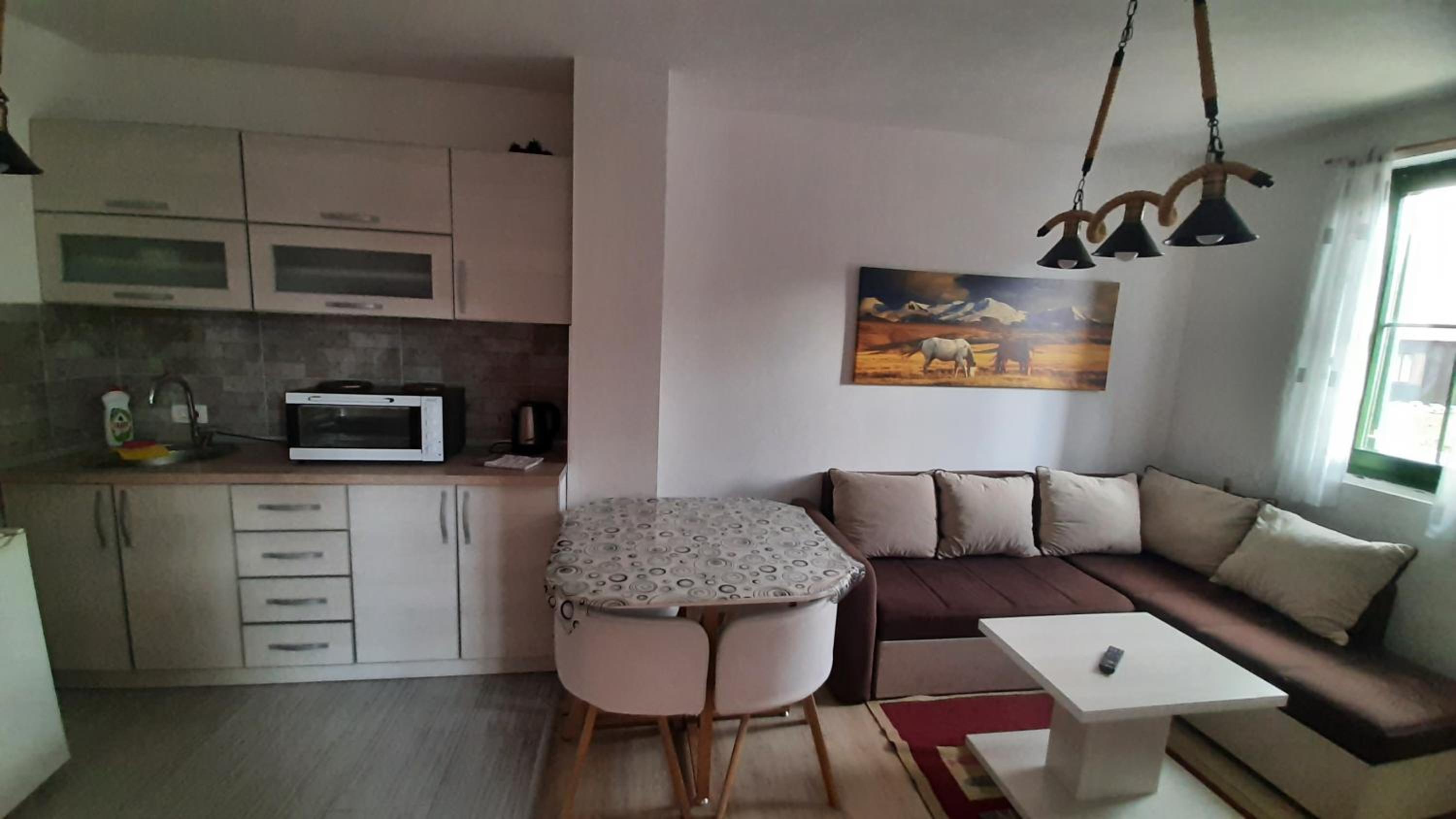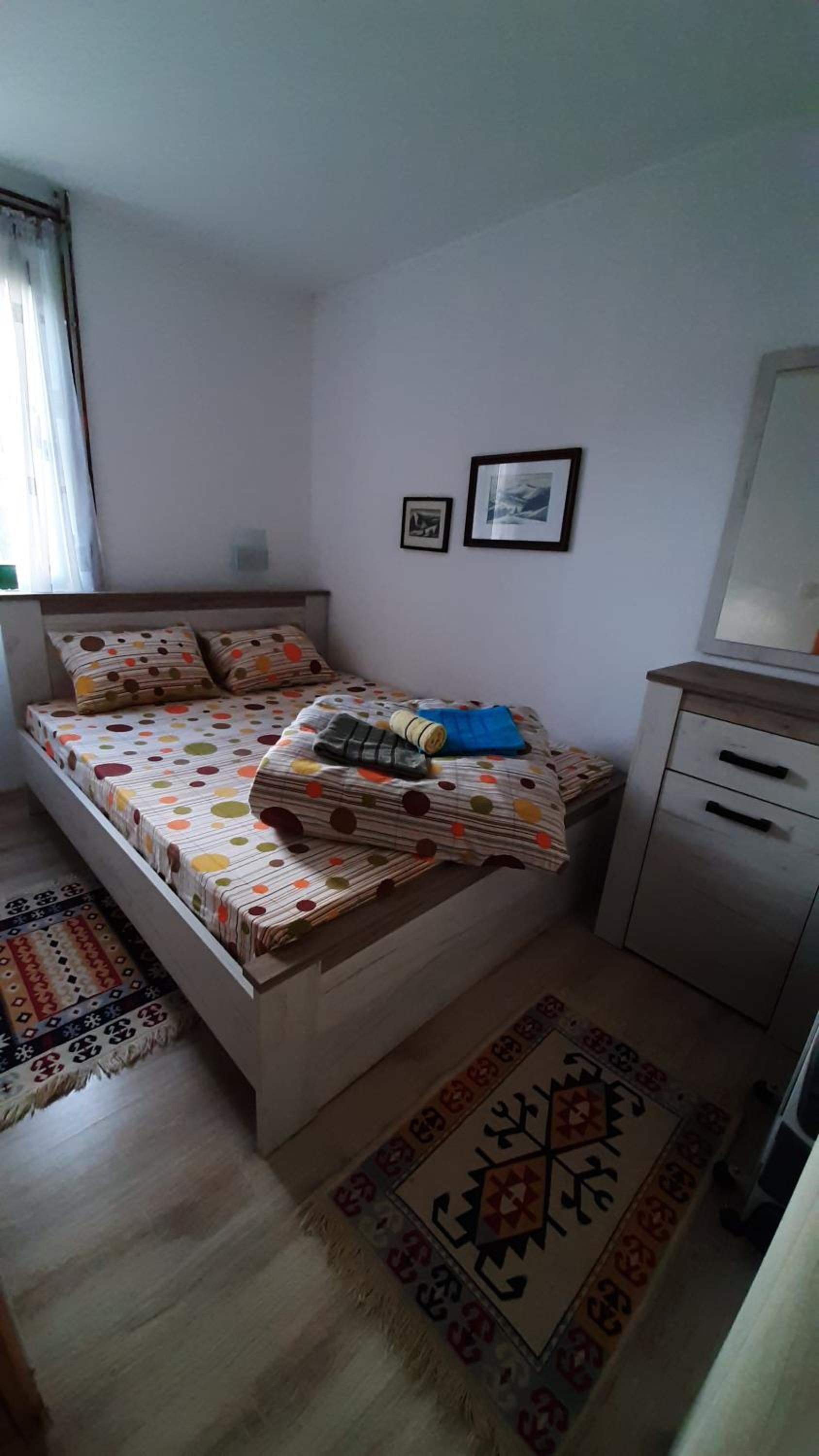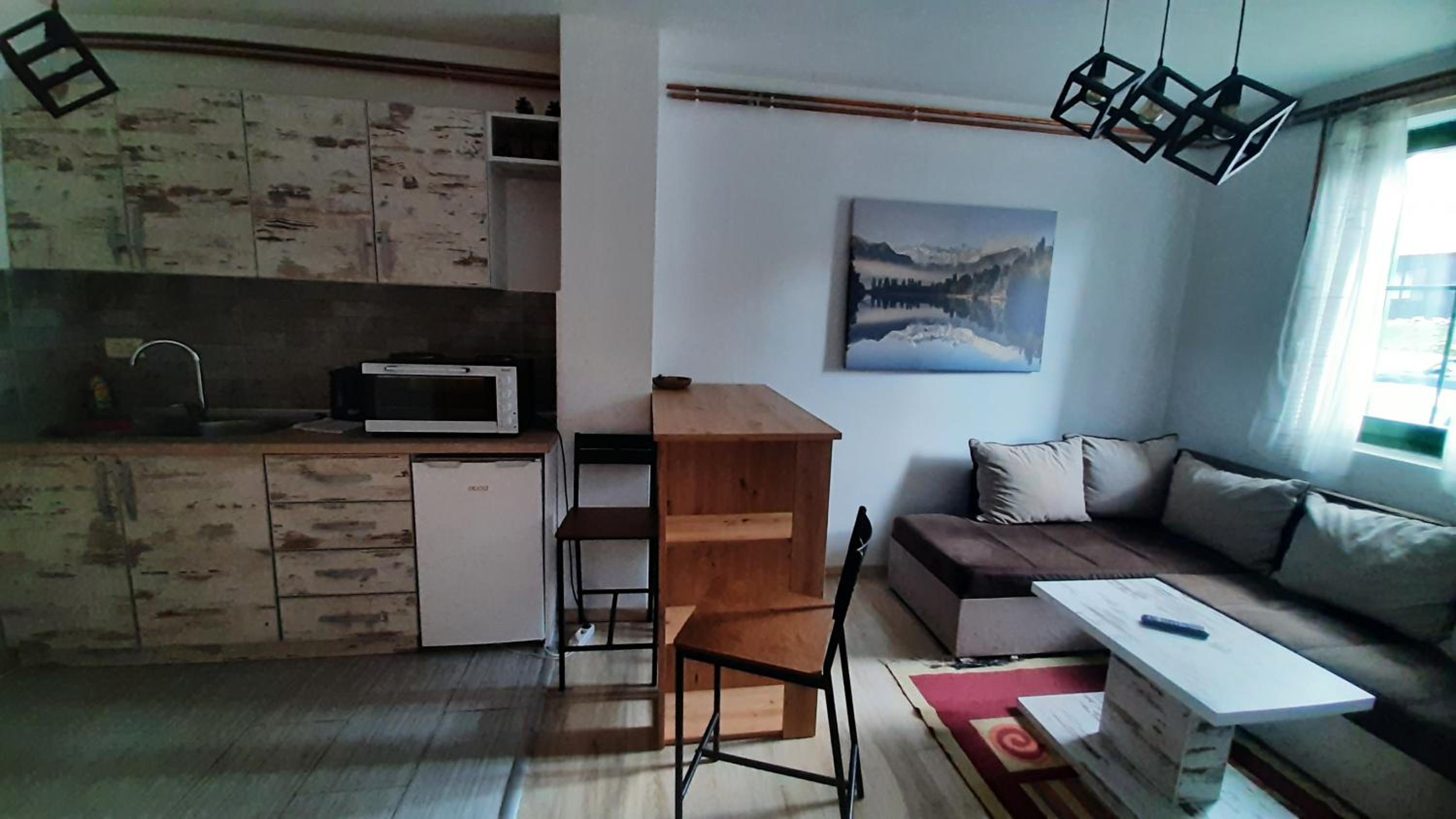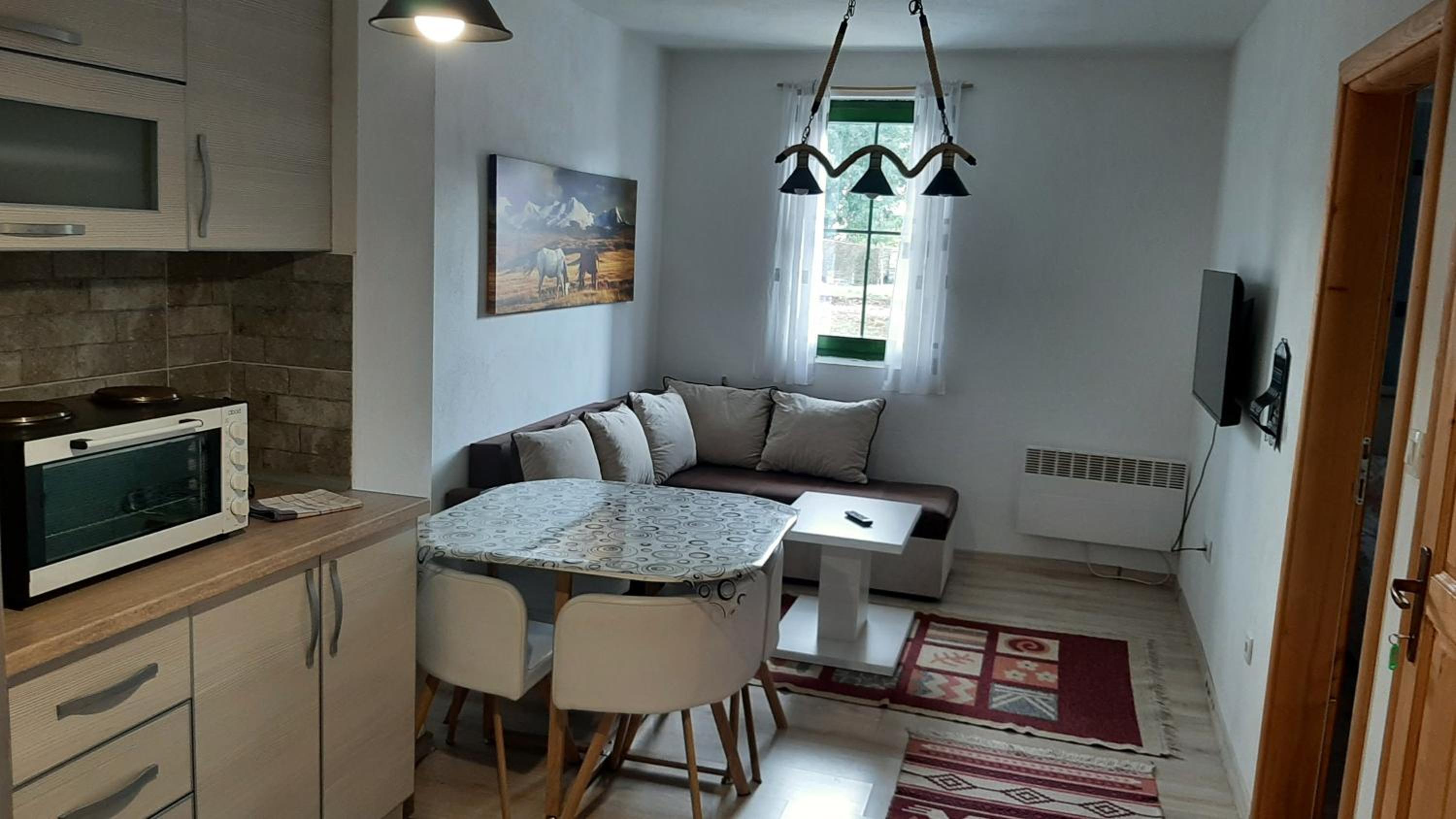 Просторные удобные апартаменты недалеко от центра поселка с ресторанами и магазинами, в пешей доступности от парка Дурмитор. Кухня полностью укомплектована посудой. Быстрый интернет