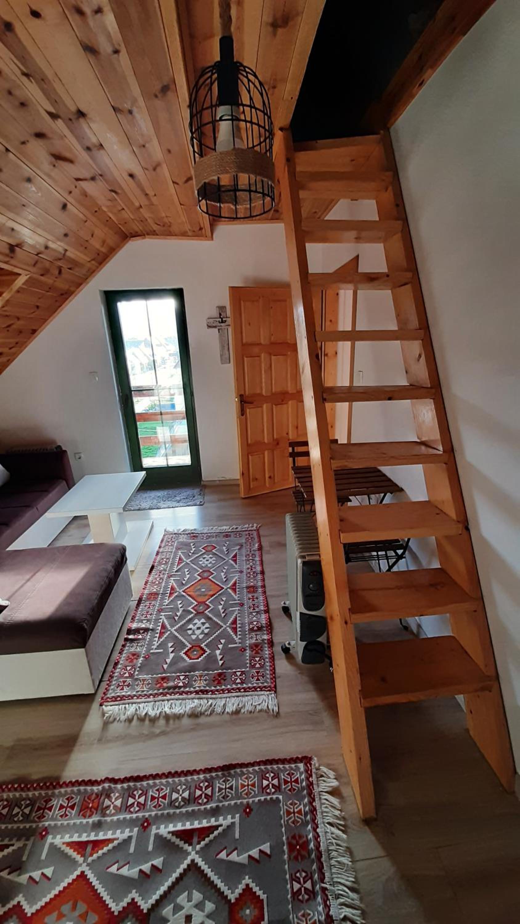 For the price of 42€ a night the space was small. It seemed larger in the pictures. The bed has springs and it is not comfortable besides it is noisy when you move. The bathroom, especially the shower floor gave me the impression it was not clean, it has mould or dirt at corners and on the little bath mat it was hair, from previous guests I suppose . The tv set screen was broken. The staircase is very steep and narrow.