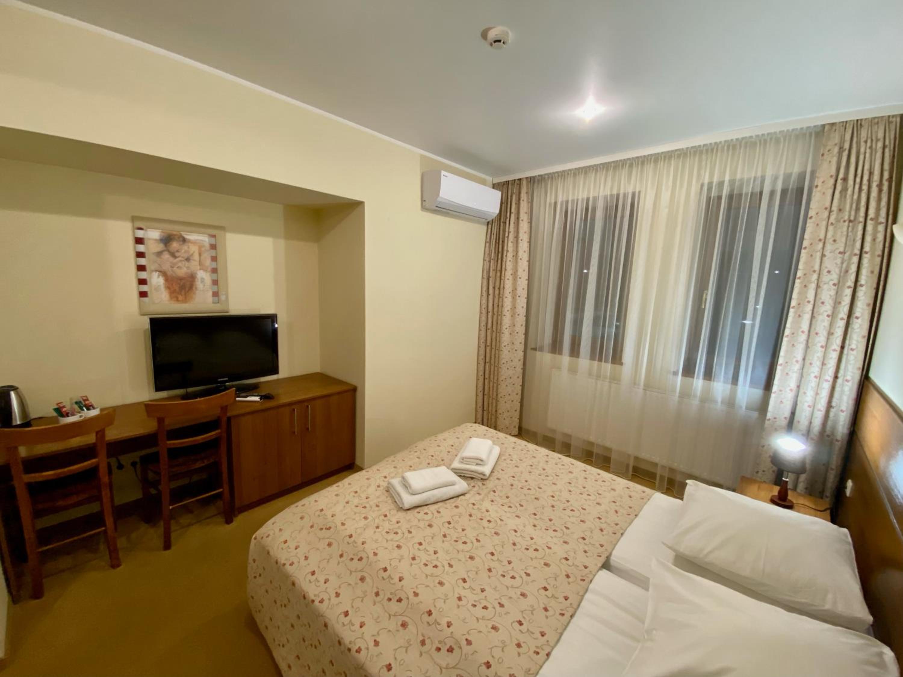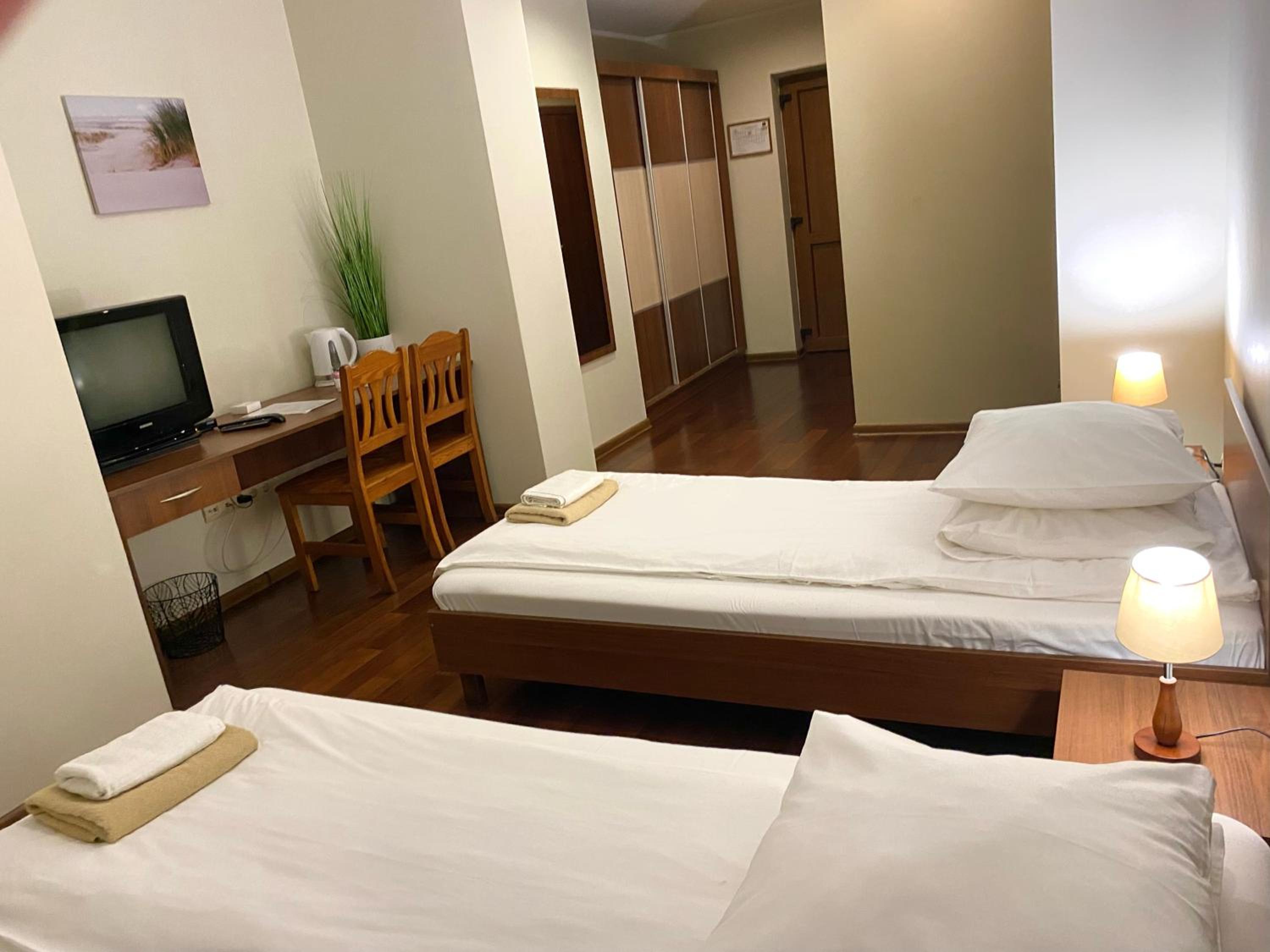 Each room at Širvintos viešbutis features essential amenities like a private bathroom, shower, wardrobe, and a TV to ensure a relaxing stay for guests.