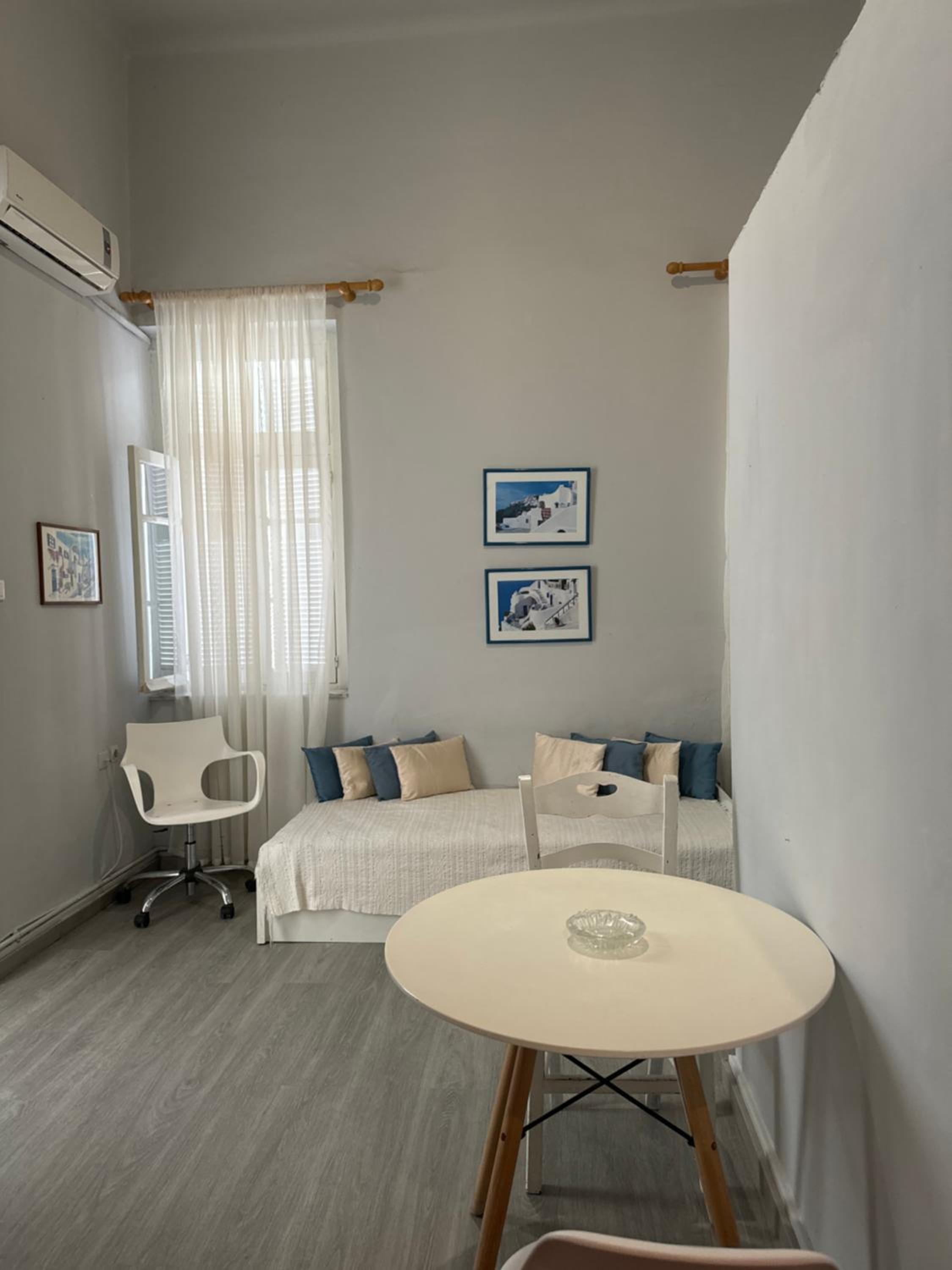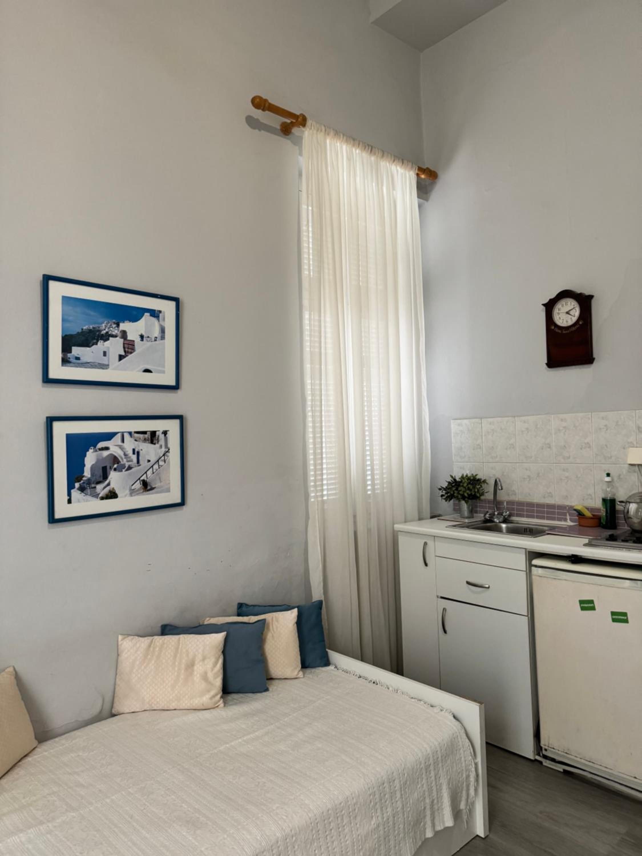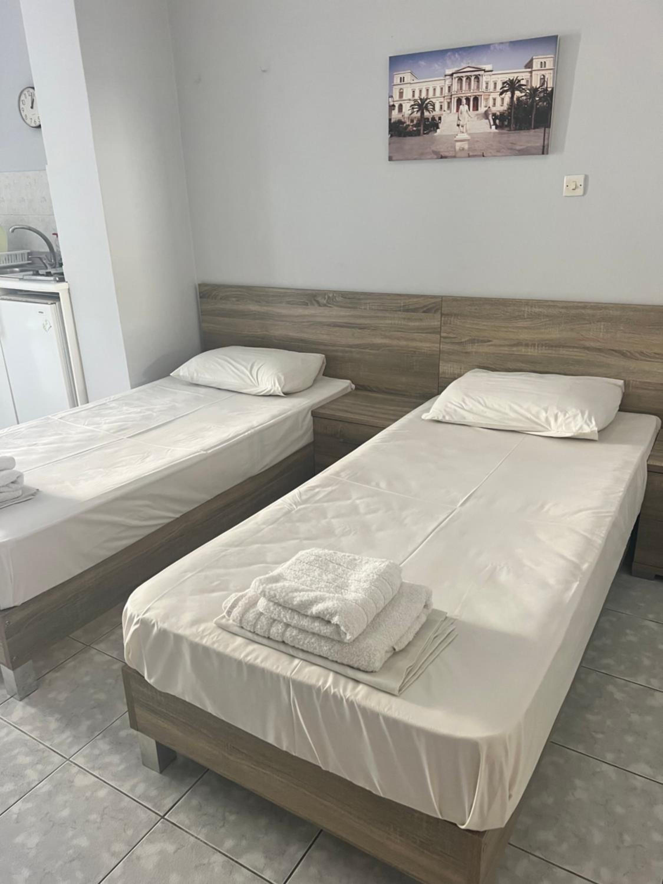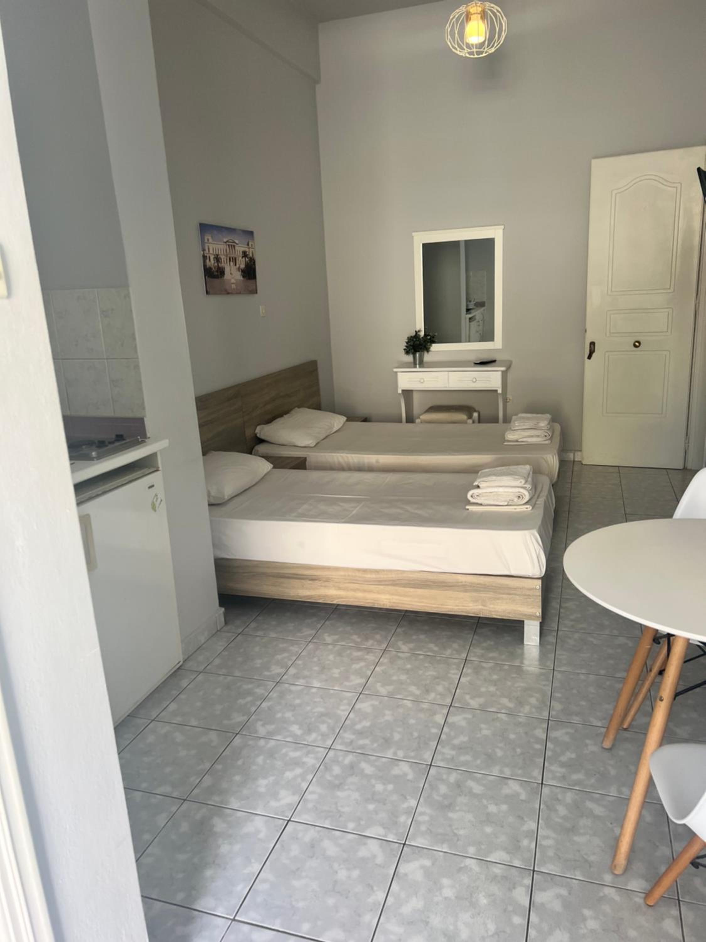 Μικρό αλλά καθαρό, όμορφο και λειτουργικό το δωμάτιο, με ωραία διακόσμηση και χαριτωμένο μπαλκονάκι. Πολύ κοντά στην κεντρική πλατεία της Ερμούπολης, το θέατρο Απόλλων, την αγορά και τα καφέ - εστιατόρια.