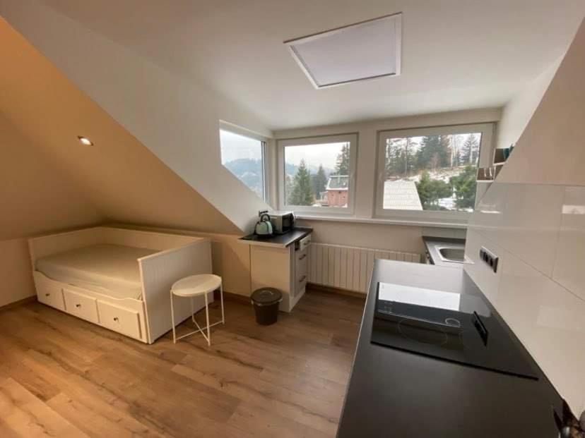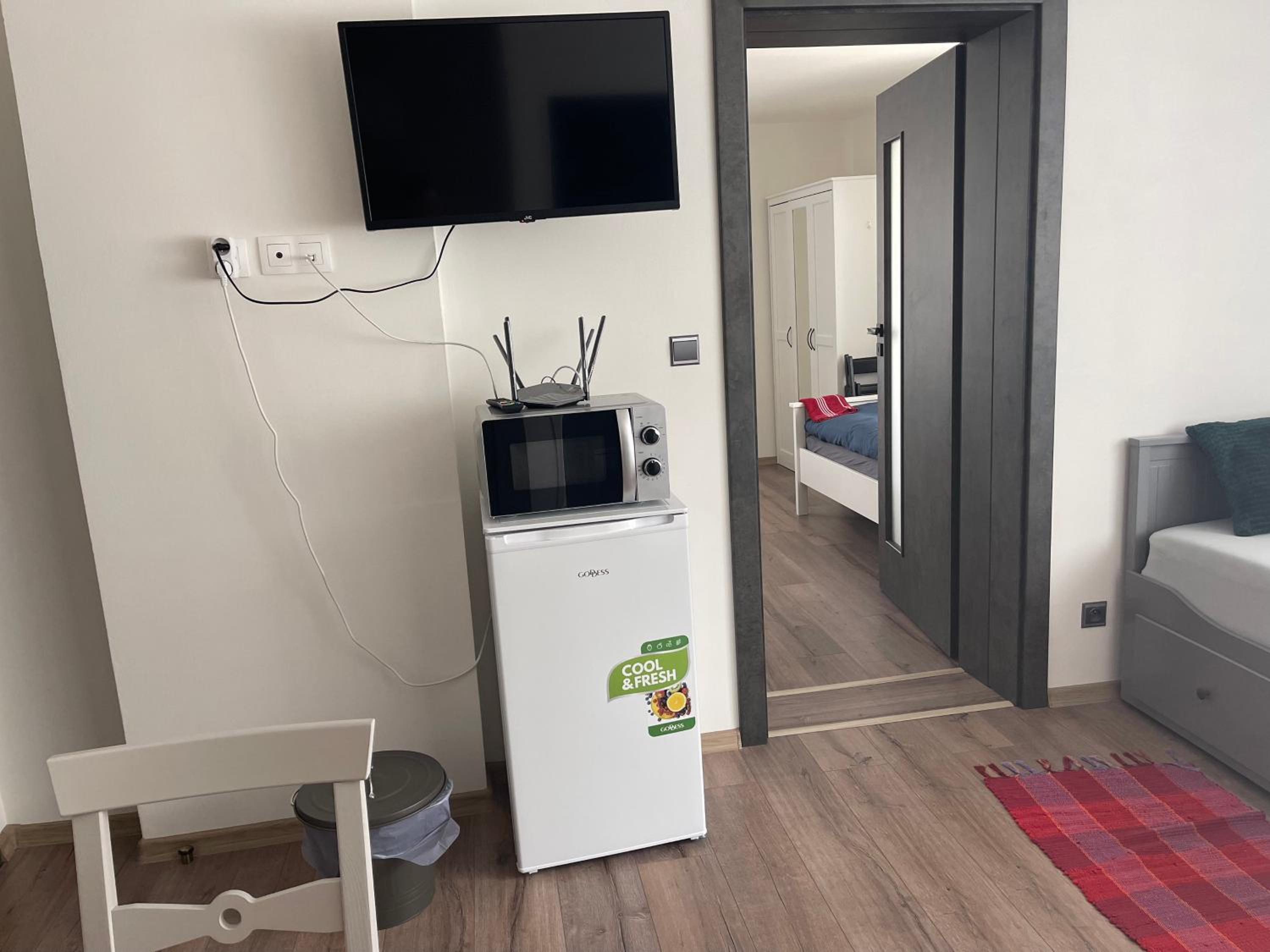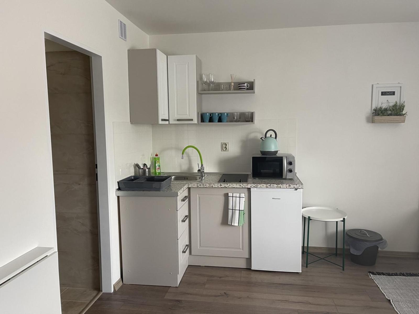 Krásný, nový apartmán. Akorát pro tři osoby, malá kuchyňka, televize, moc pěkná koupelna. Nádherná příroda.
