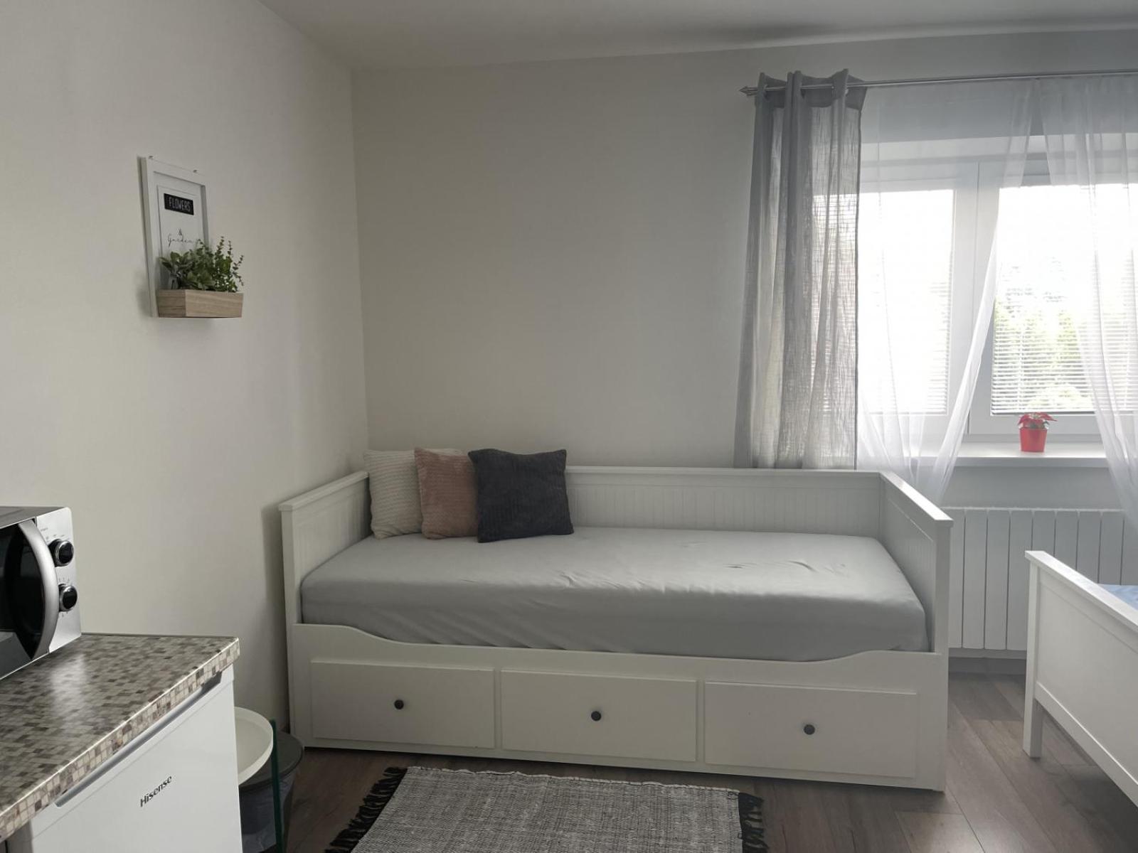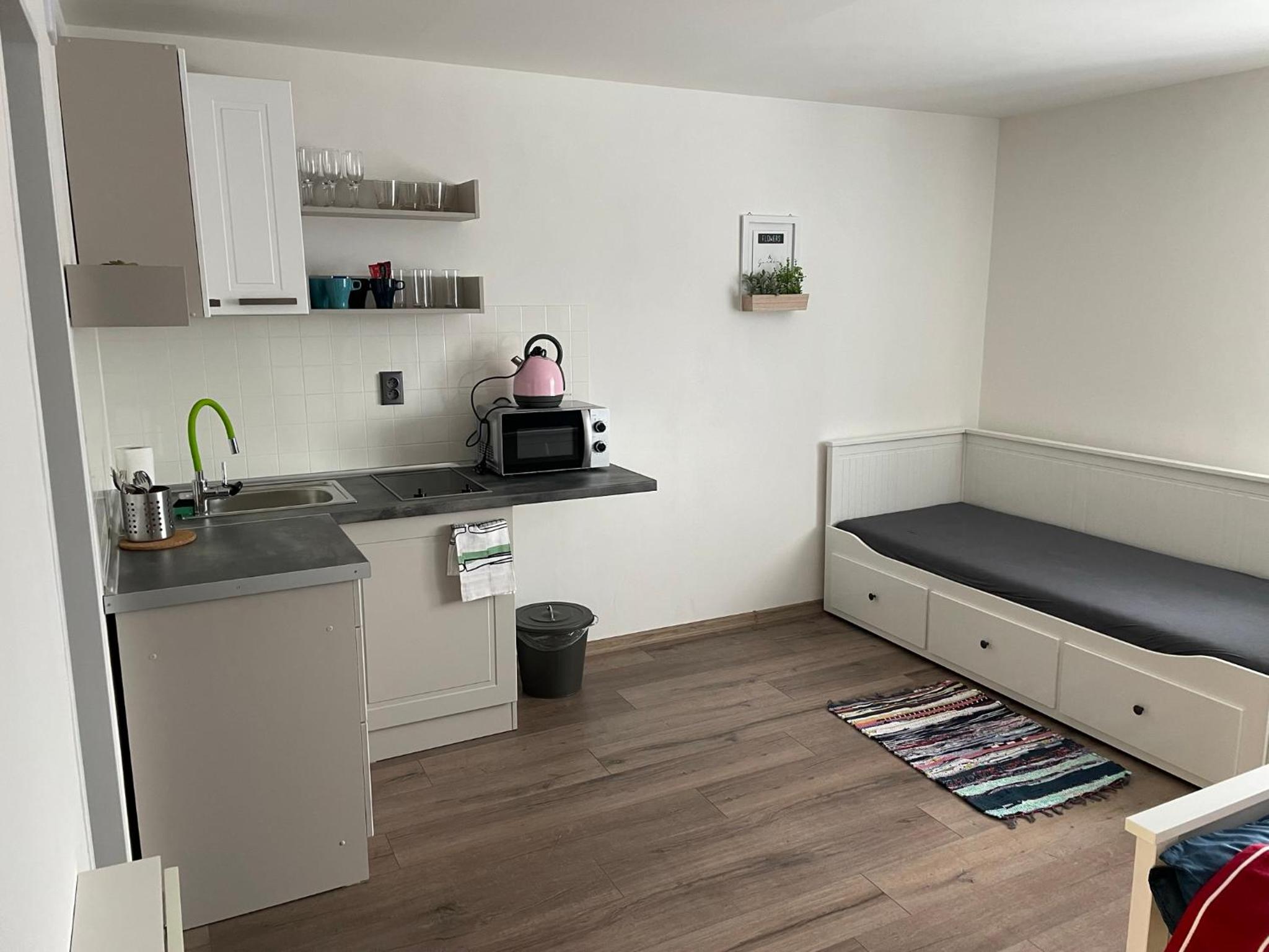 Čisté, účelně vybavené pohodlné apartmány. Možnost využití společenského pokoje. Příjemní, ochotní majitelé. Dobrá dostupnost místní dopravy.
