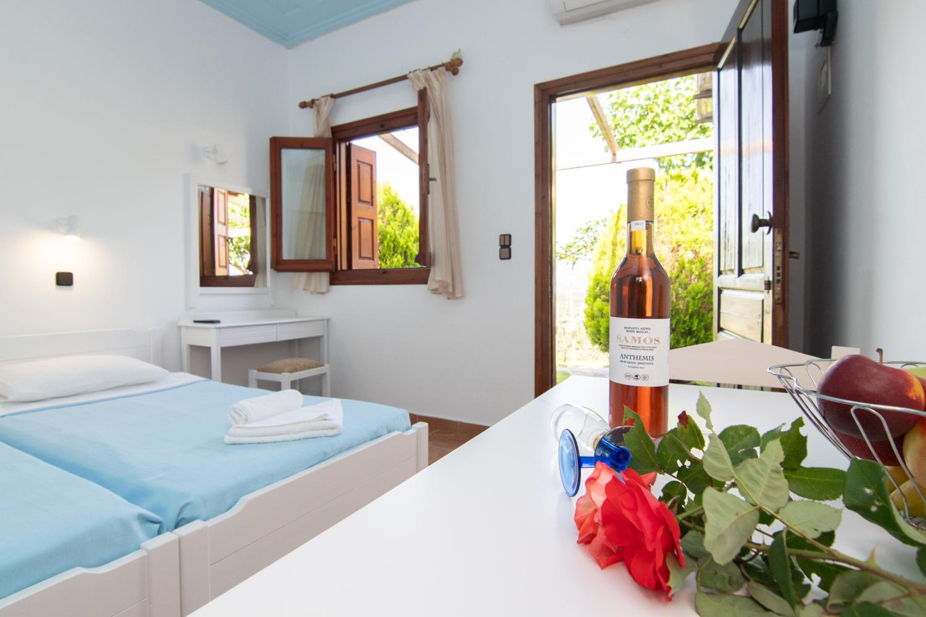 Από το δωμάτιο μας είχαμε απρόσκοπτη θέα στο ηλιοβασίλεμα και στο Καρλοβασι , η φιλοξενία του κ.Γιαννη δεν περιγράφεται με λόγια …! Περάσαμε υπέροχα …!!