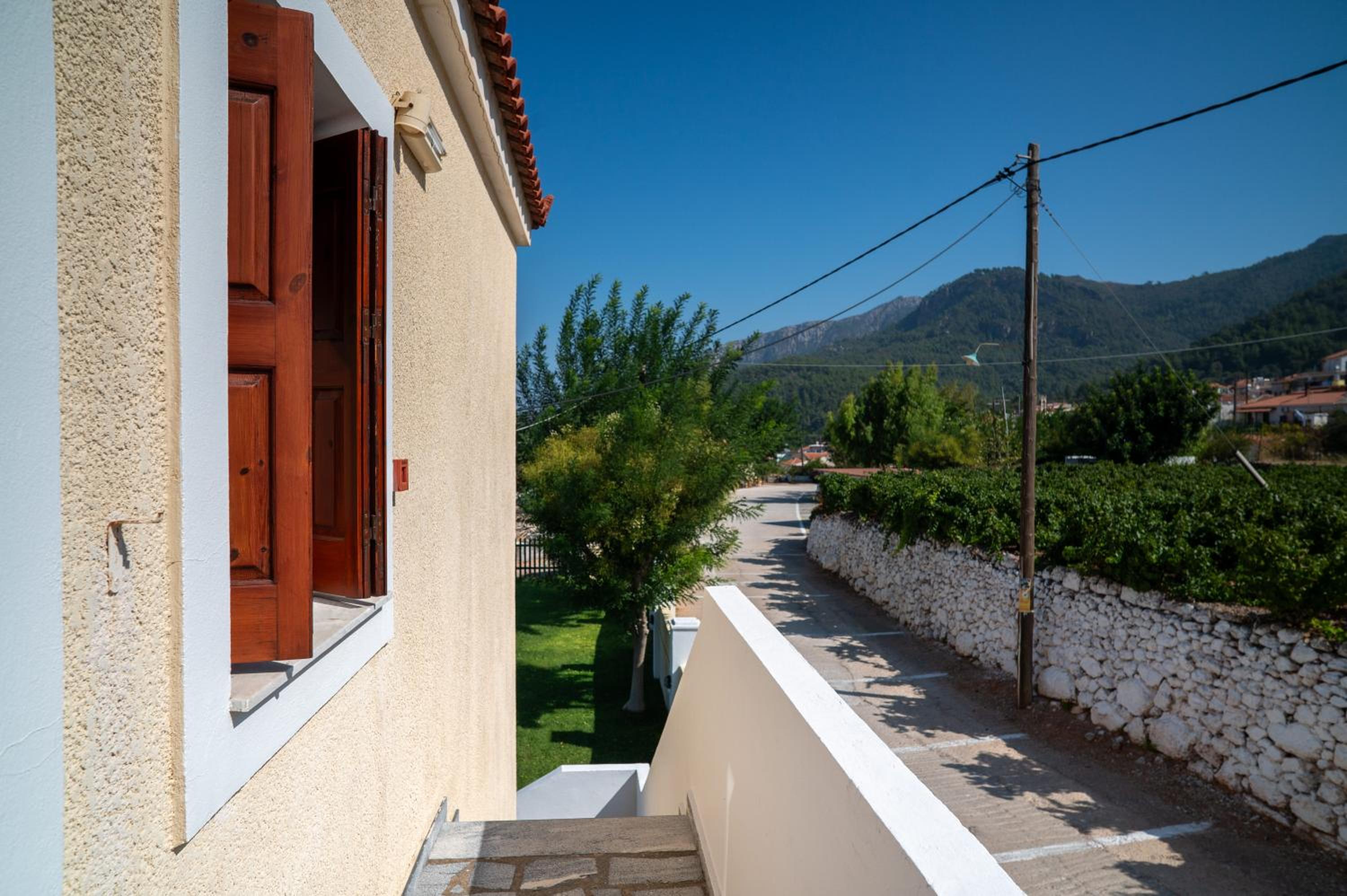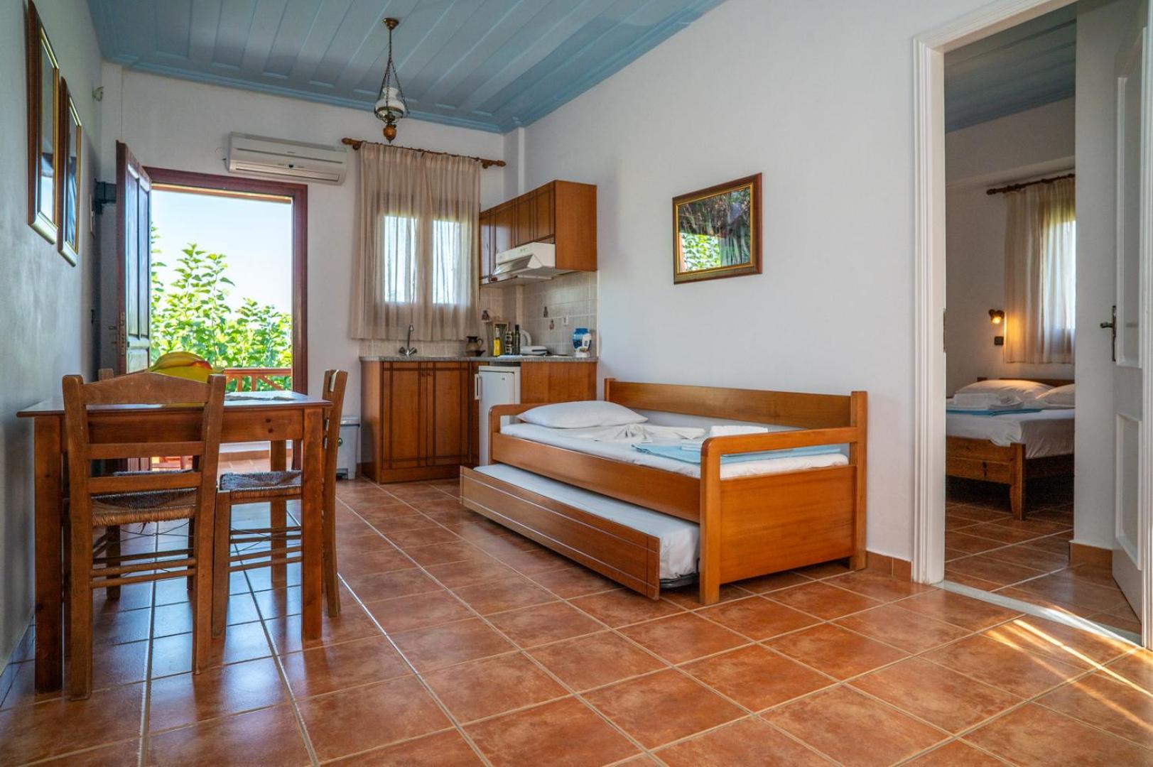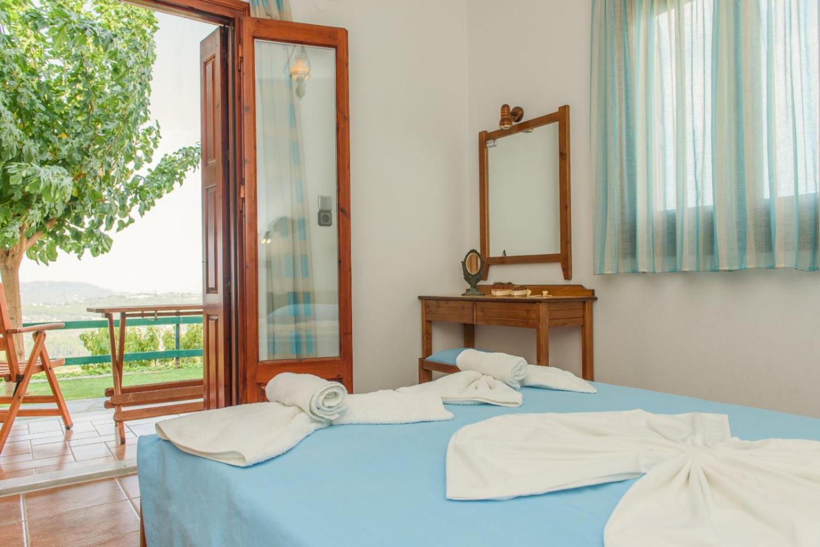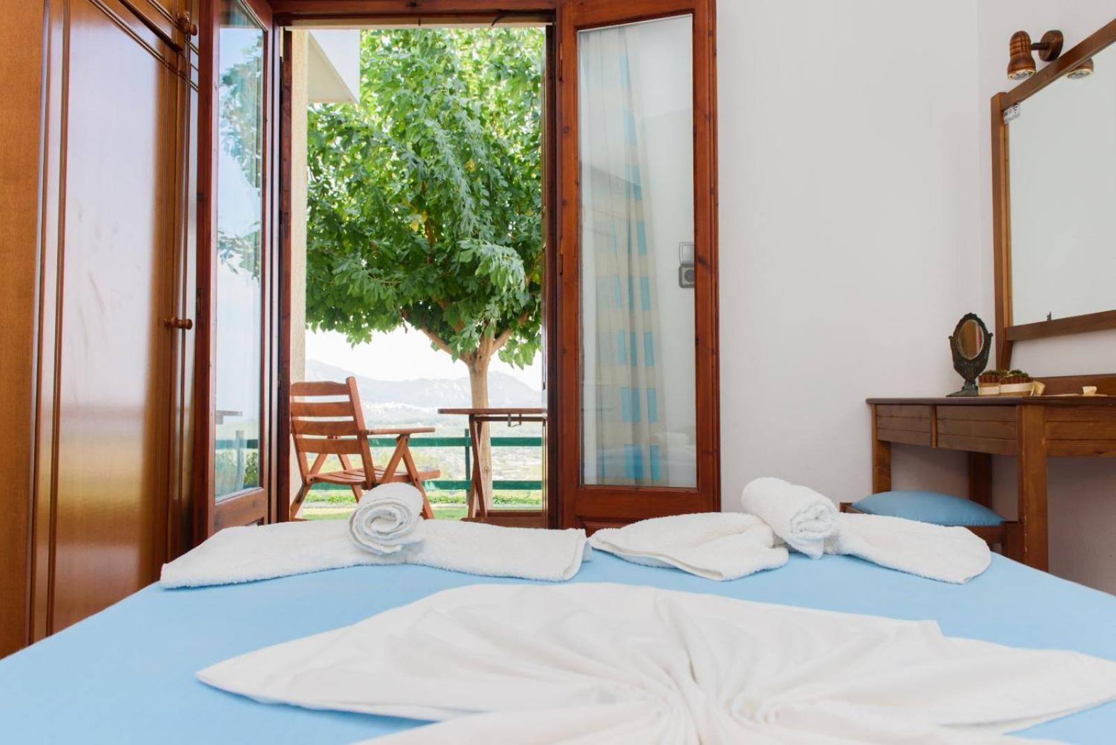 Enjoy breathtaking views of the sea and mountains from your room at Giannakos Apartments.