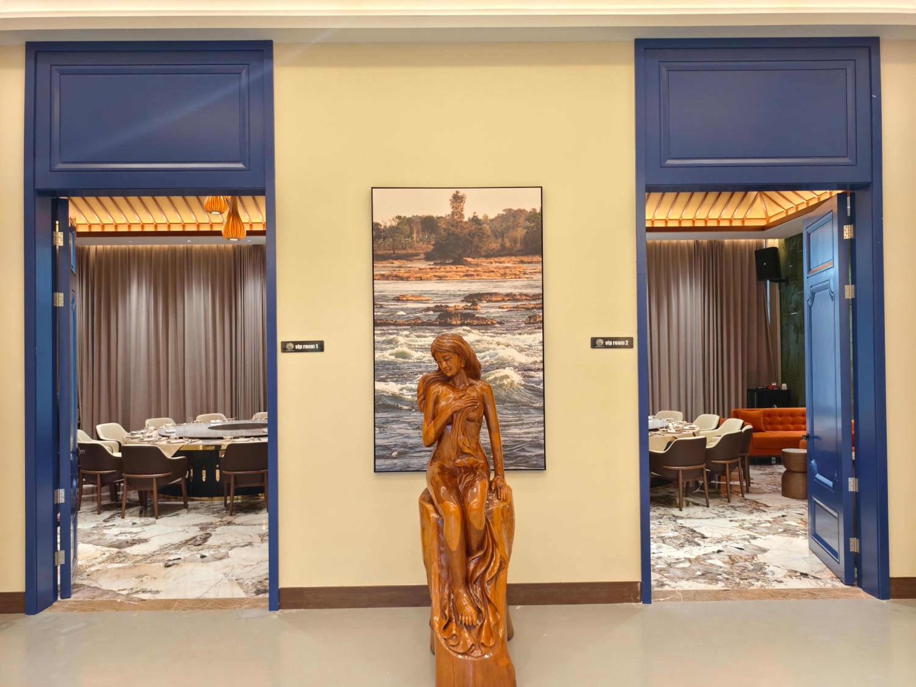 Amazing location on the banks of the Mekong, this new resort hotel has superb rooms, lots of parking, two Olympic sized pools and stunning art throughout, but…