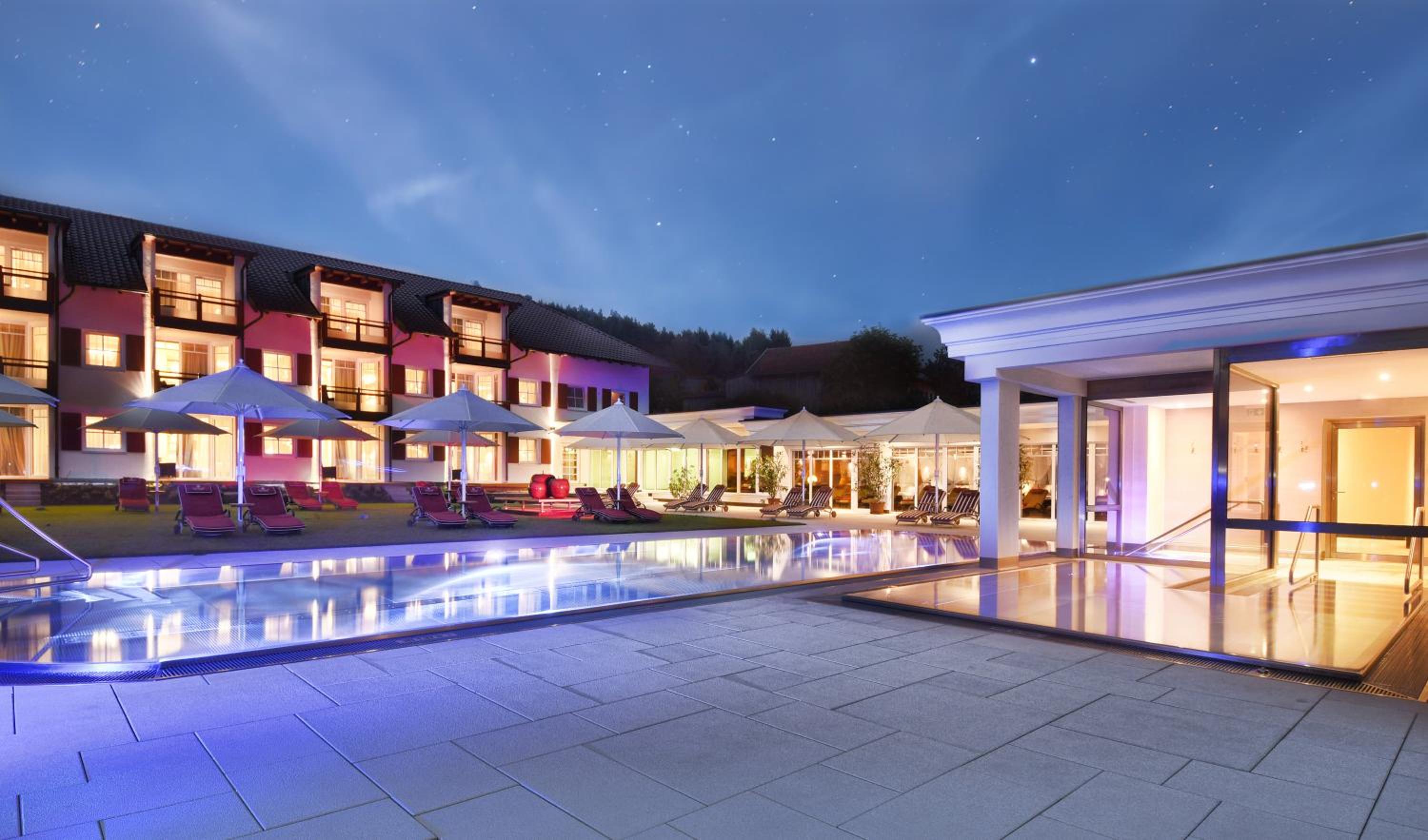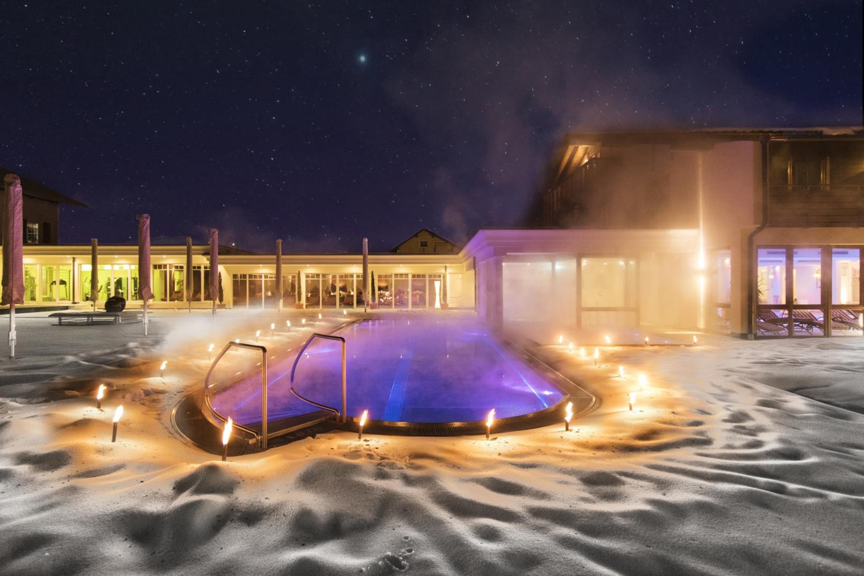 Luxurious Amenities: From the year-round outdoor and indoor pools to the fitness center, enjoy a range of premium facilities during your stay at Wellnesshotel Oswald.