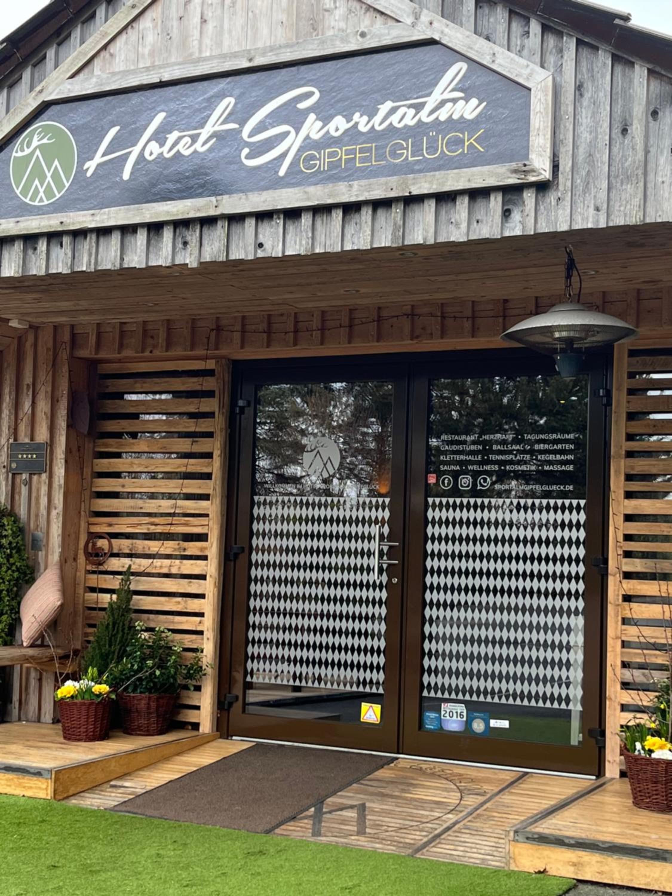 Ein Hotel mit Sportangeboten von Kletterwand, Eisstockschießen oder Axtwerfen usw.