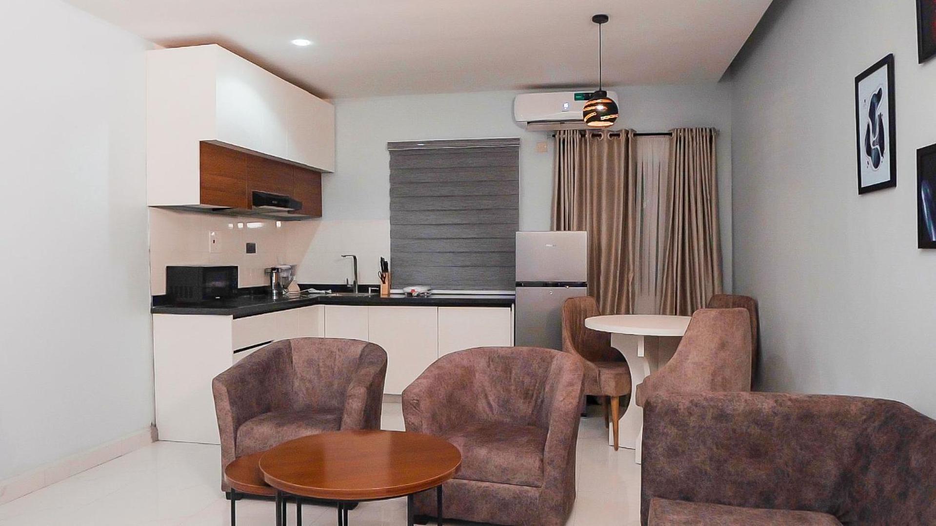 Step into modern, elegantly designed apartments equipped with top-notch amenities such as air conditioning, flat-screen TVs, and fully equipped kitchens.