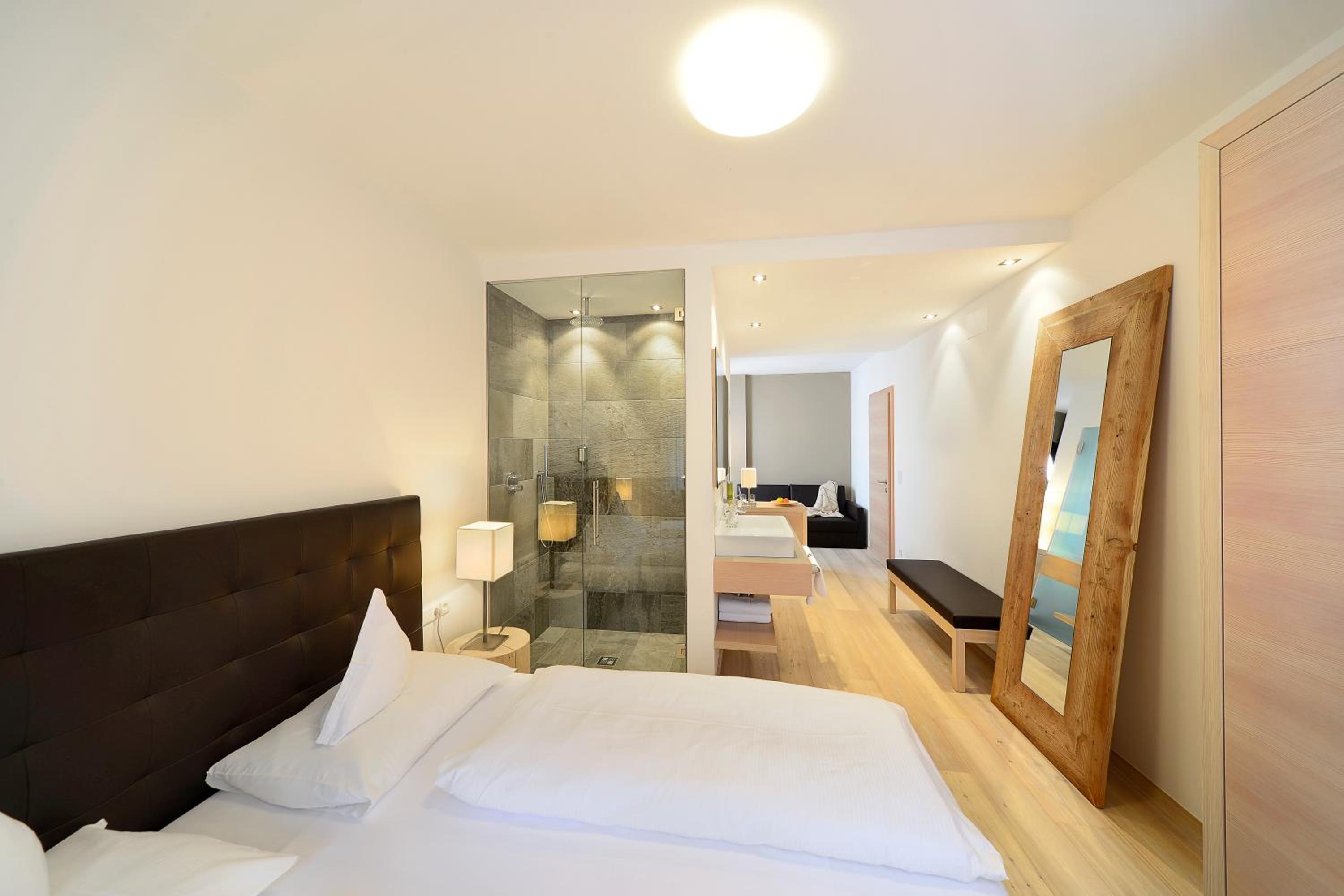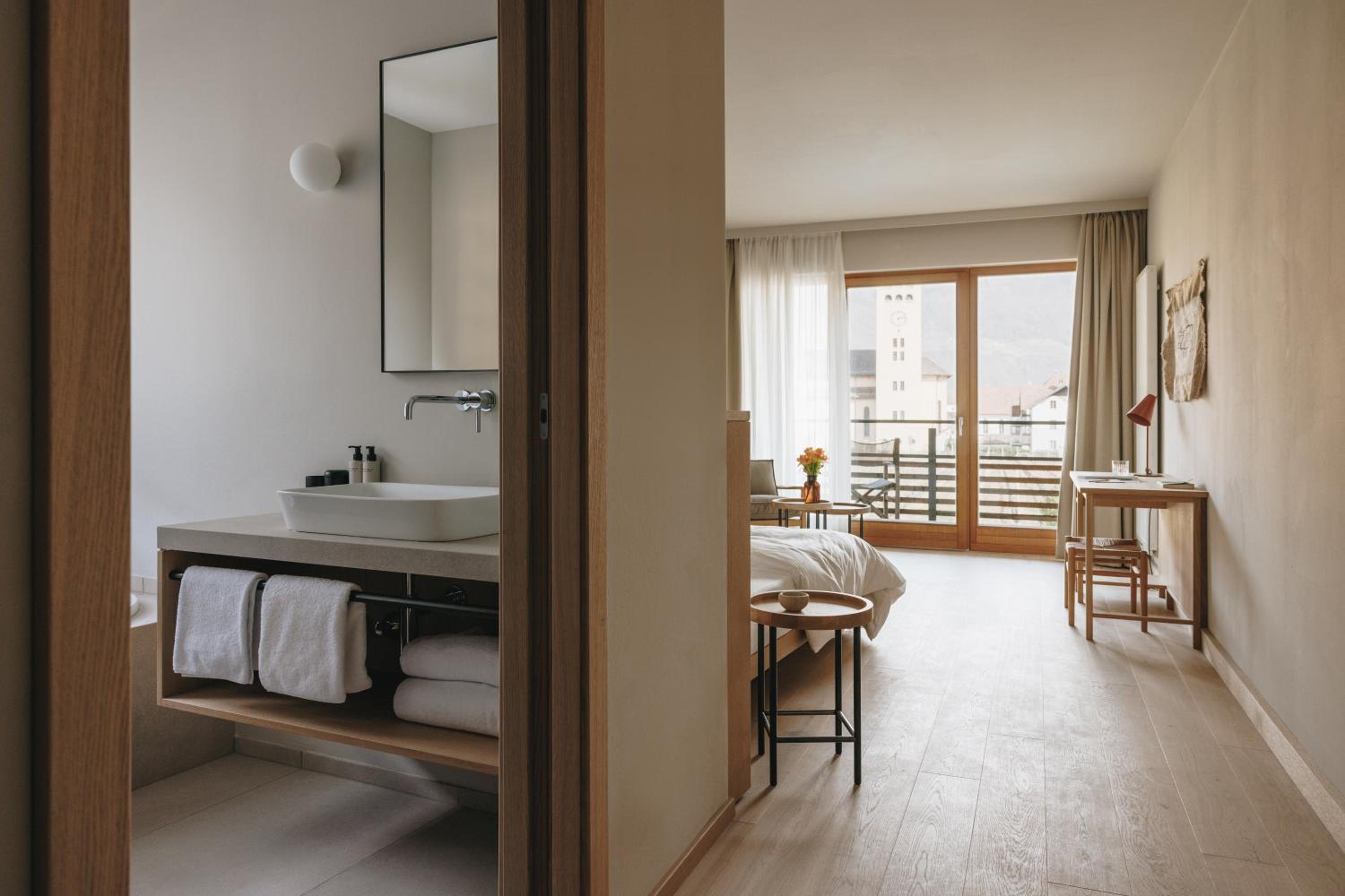 Personal war sehr freundlich und angenehm. Zimmer (Junior Suite) sehr geräumig und schick eingerichtet. Angenehmer Balkon mit Hängesessel. Modernes Bad. Morgens mit Sonnenaufgang Blick über den Pool und die Apfelplantage ist begeisternd. Essen und Frühstück haben hohe Qualität.