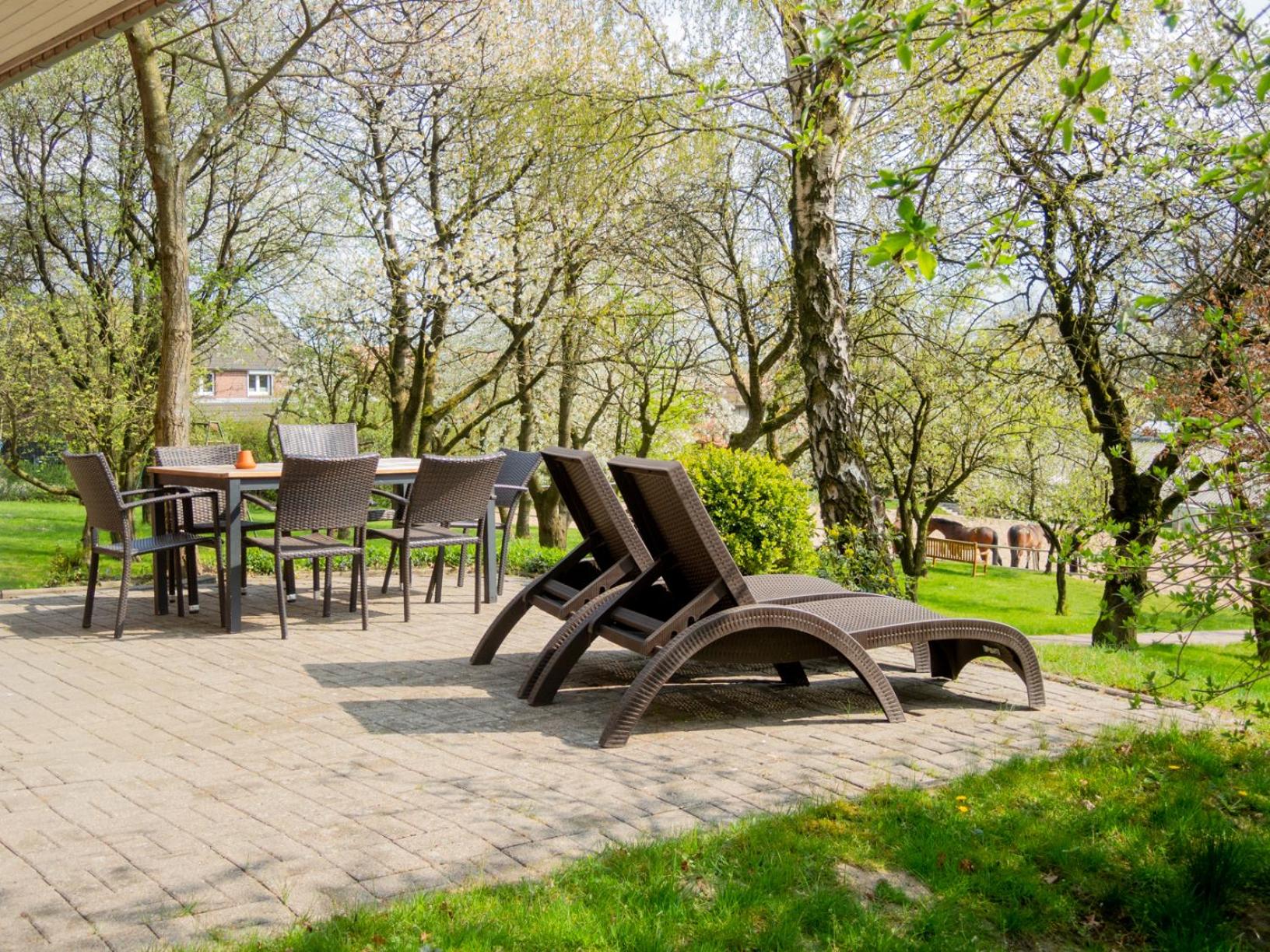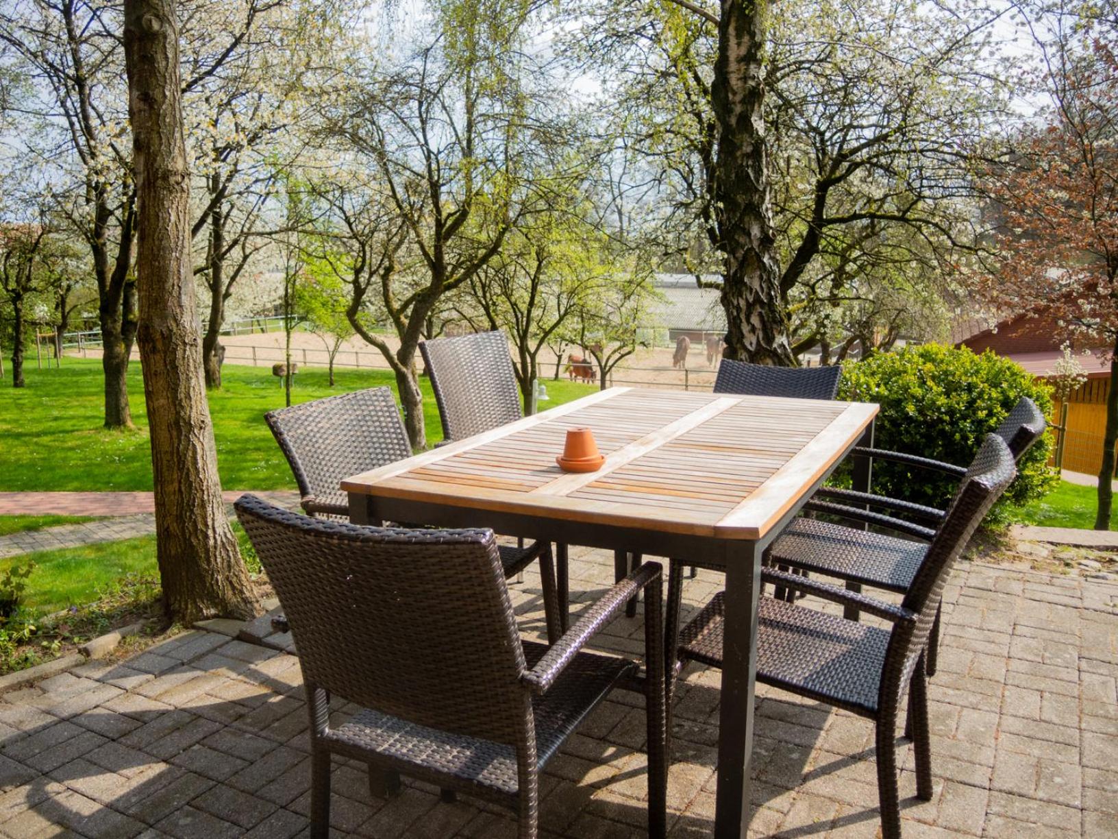 Feel the serenity of nature at Glockenhof Studtmann's beautiful garden and unwind at the cozy terrace.