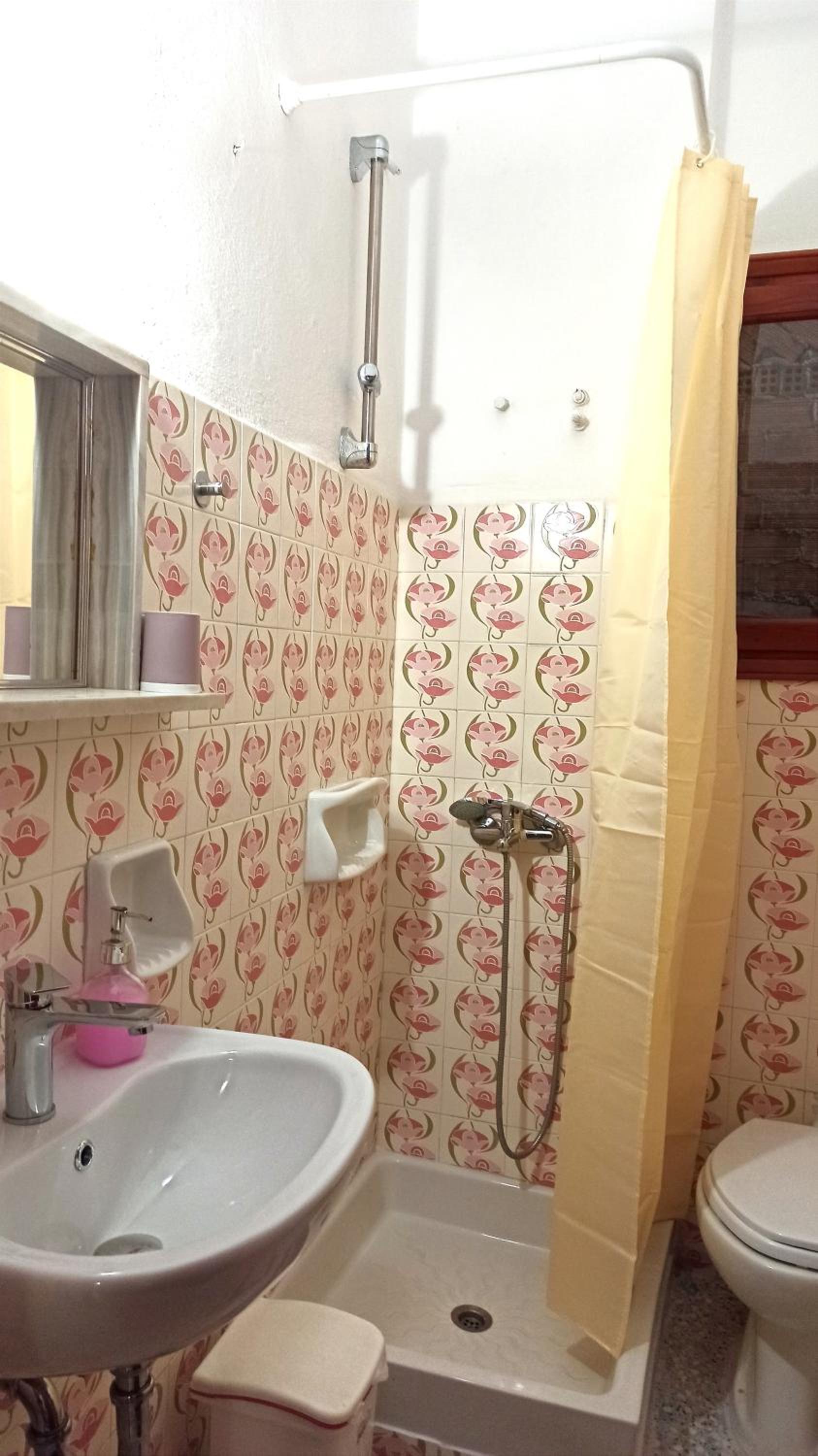 The bathroom is a bit outdated and could use renovation.