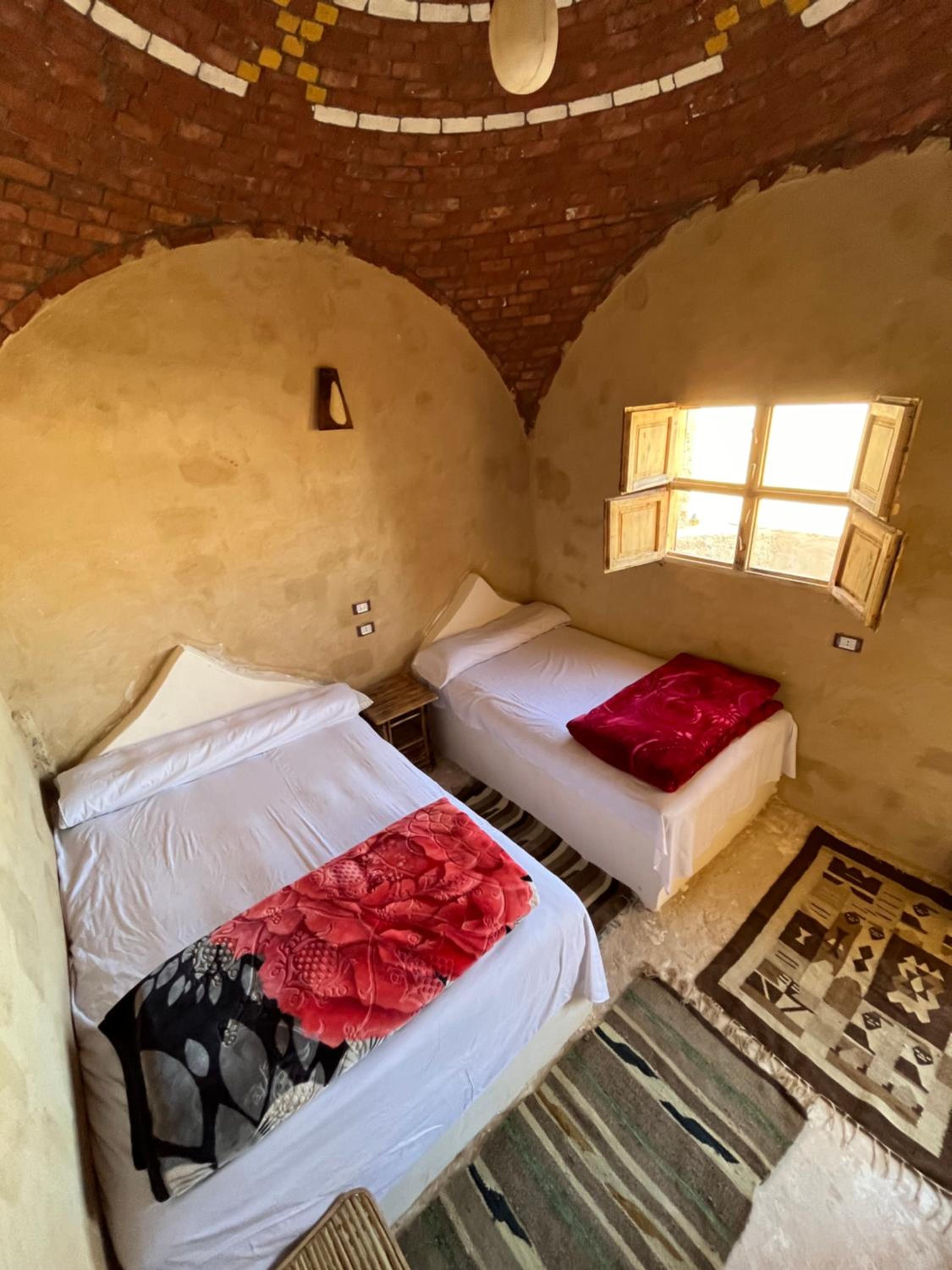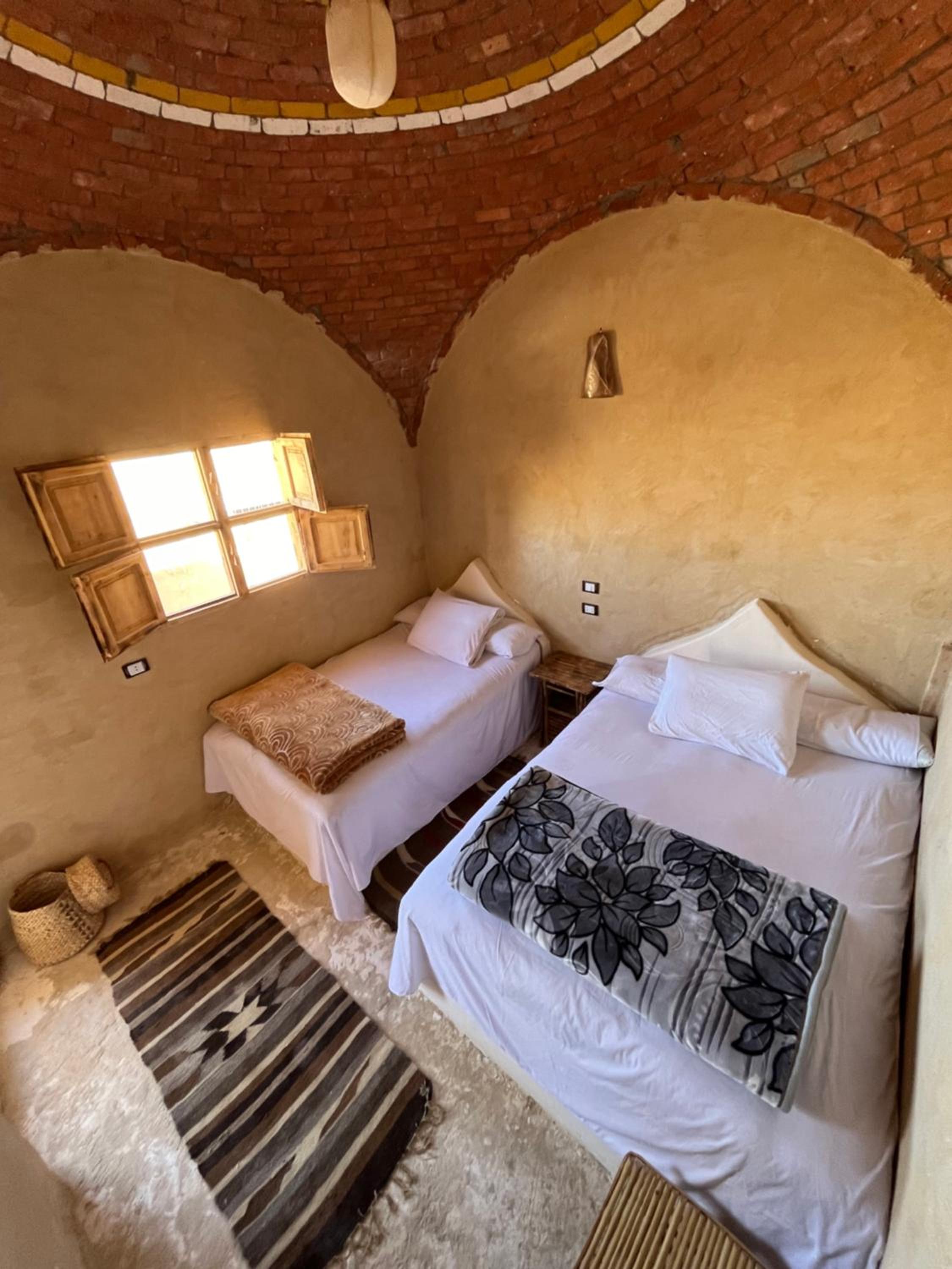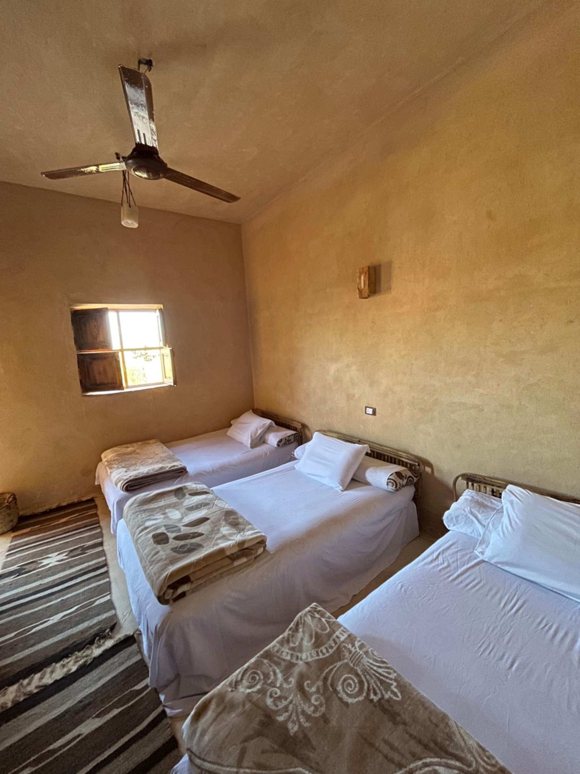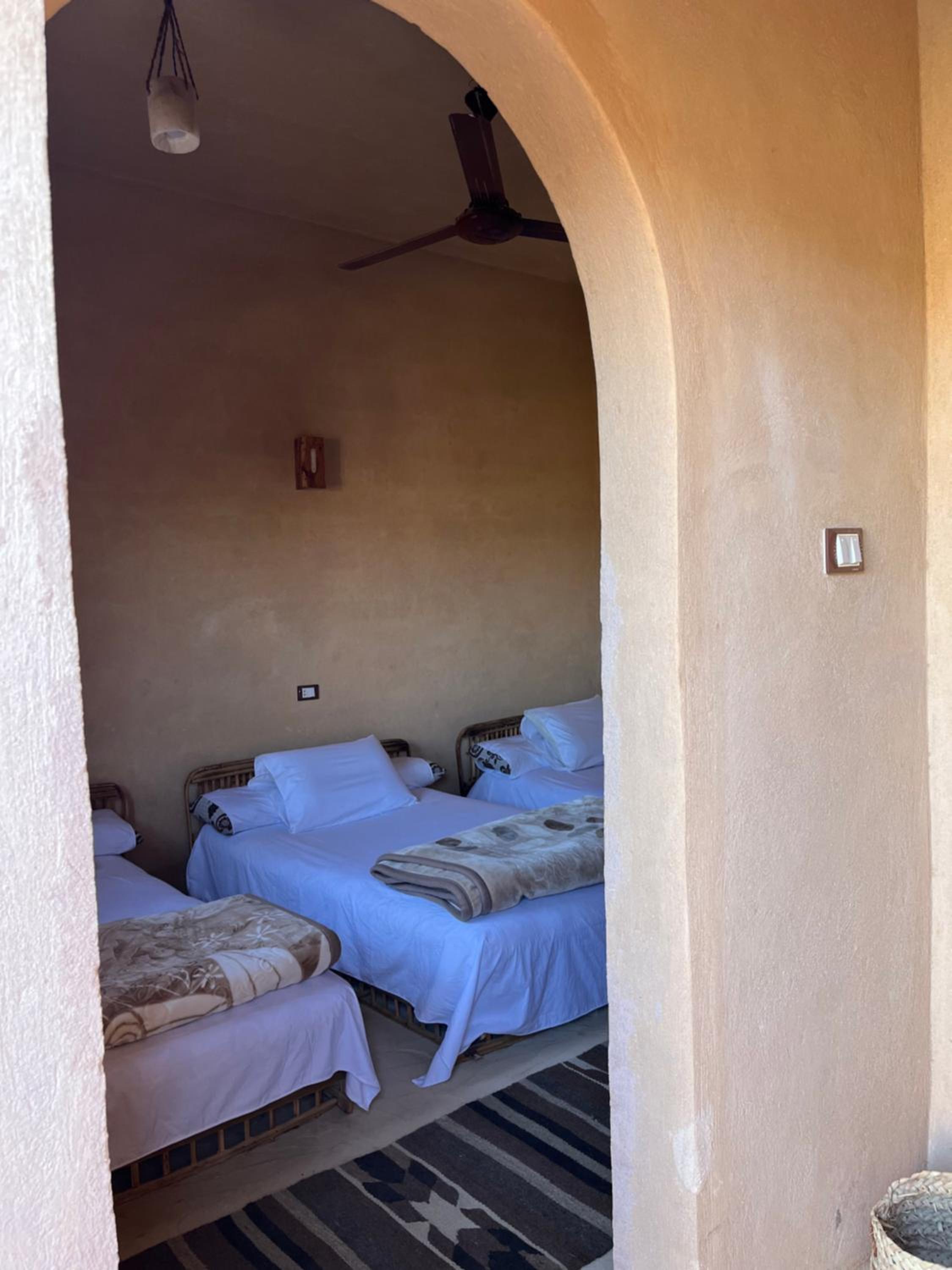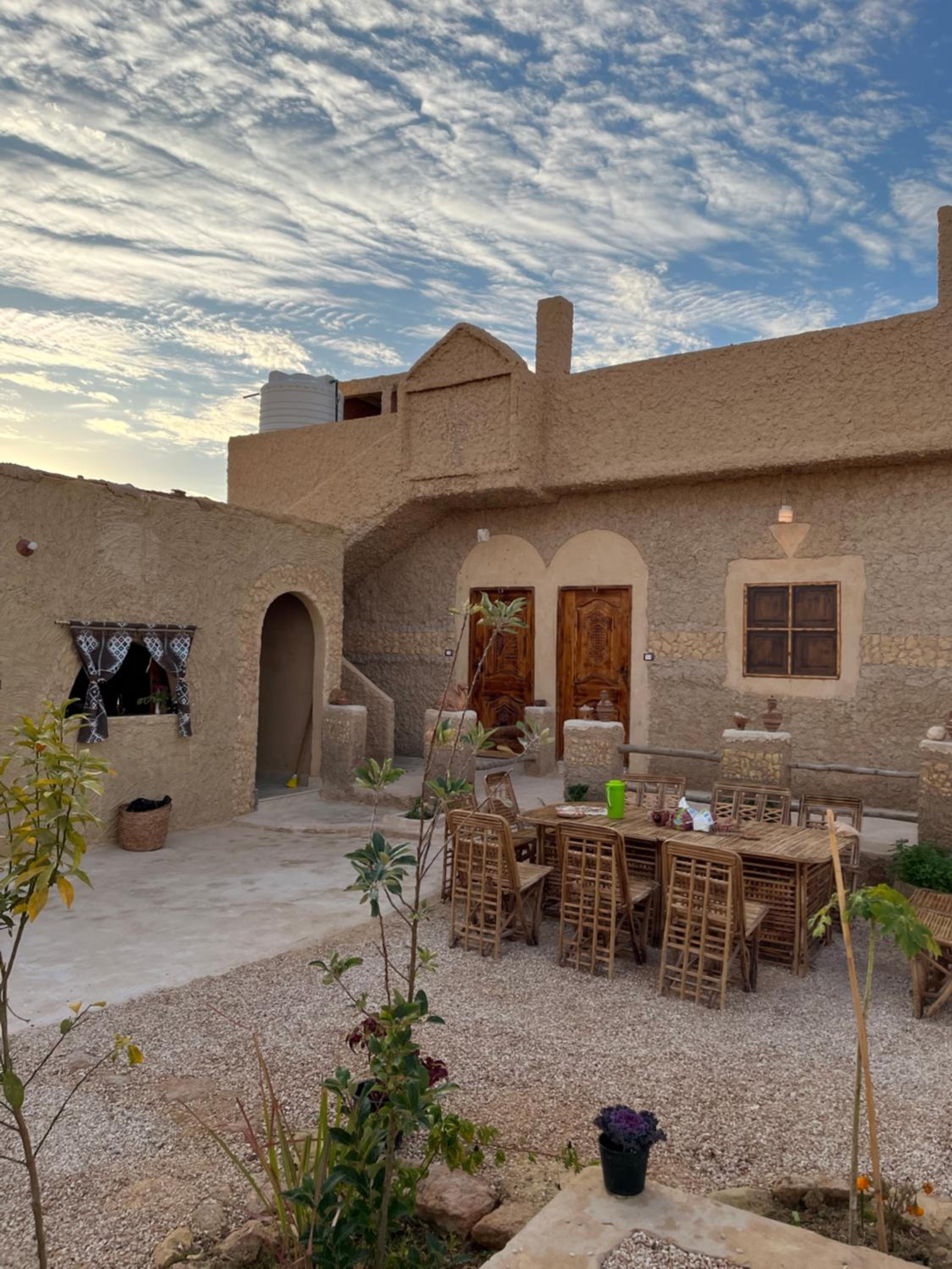 The place is in a very calm and peaceful part of Siwa. There's a beautiful inner yard with a small pool and a campfire seating. It was really nice to sit around the fire in the evening and drink tea. The room and bathroom were nice and clean. There were warm and soft blankets for winter months. Breakfast was delicious and there was also possibility to order lunch and dinner. The owner is very kind and accommodating.