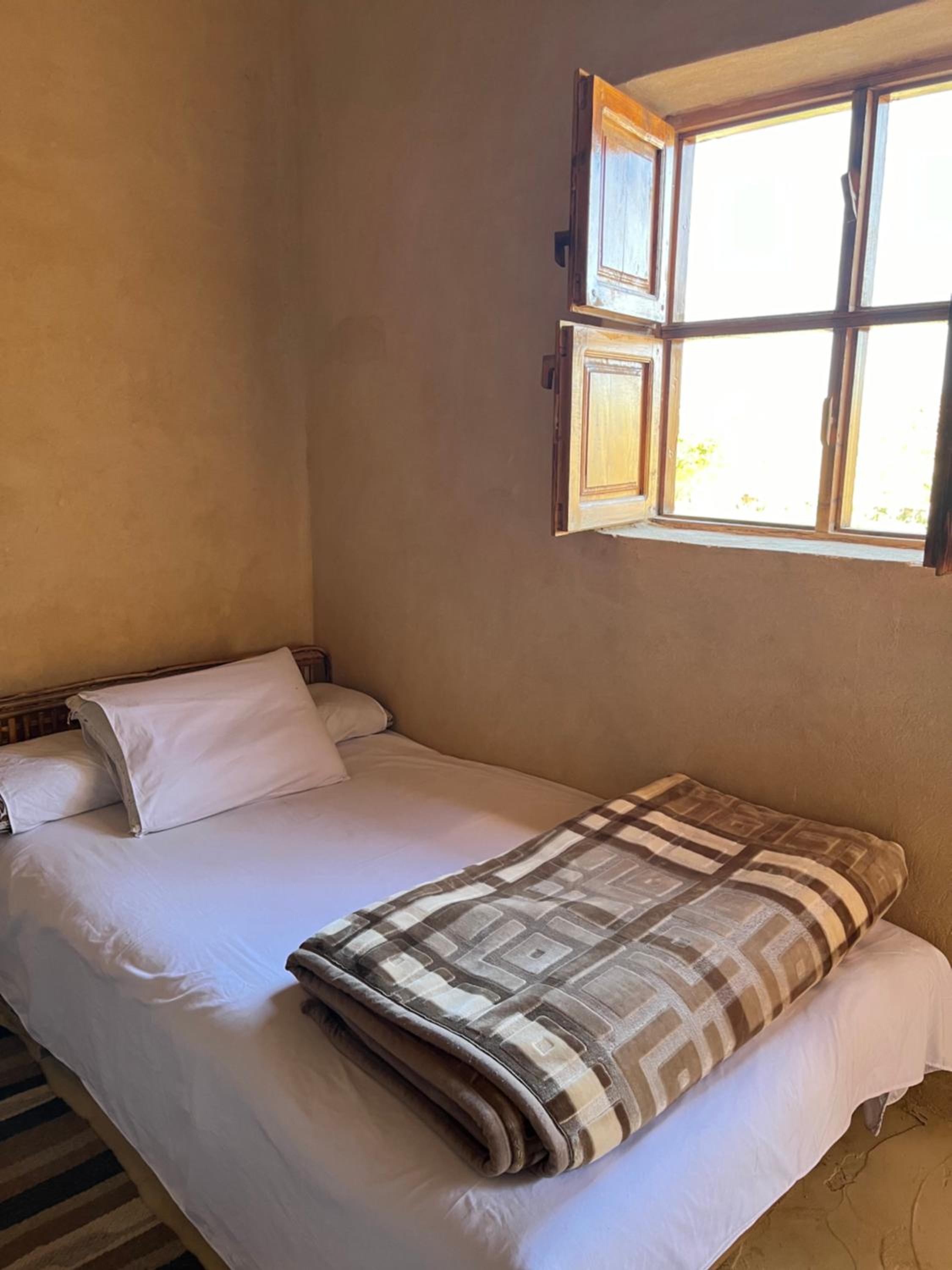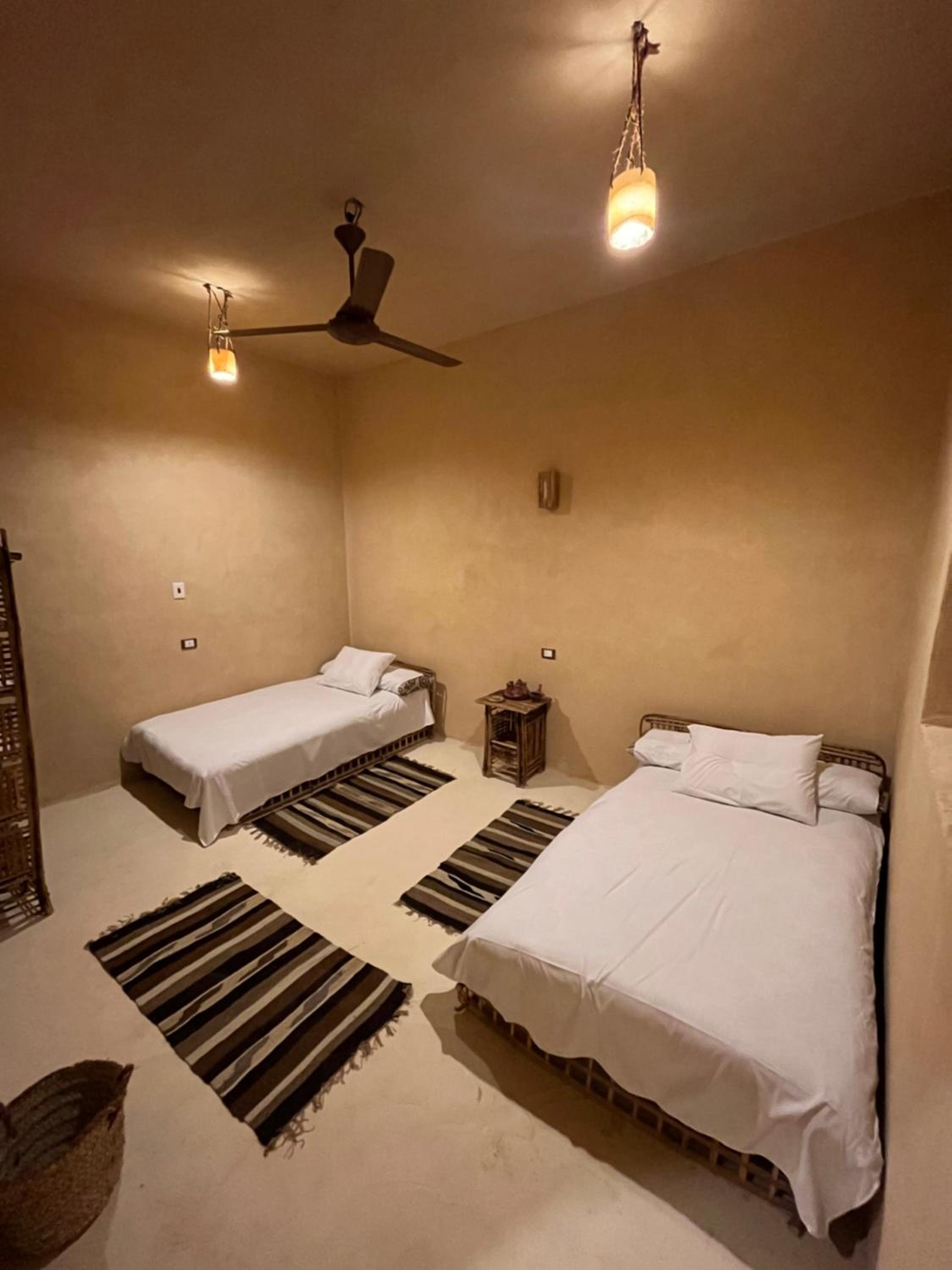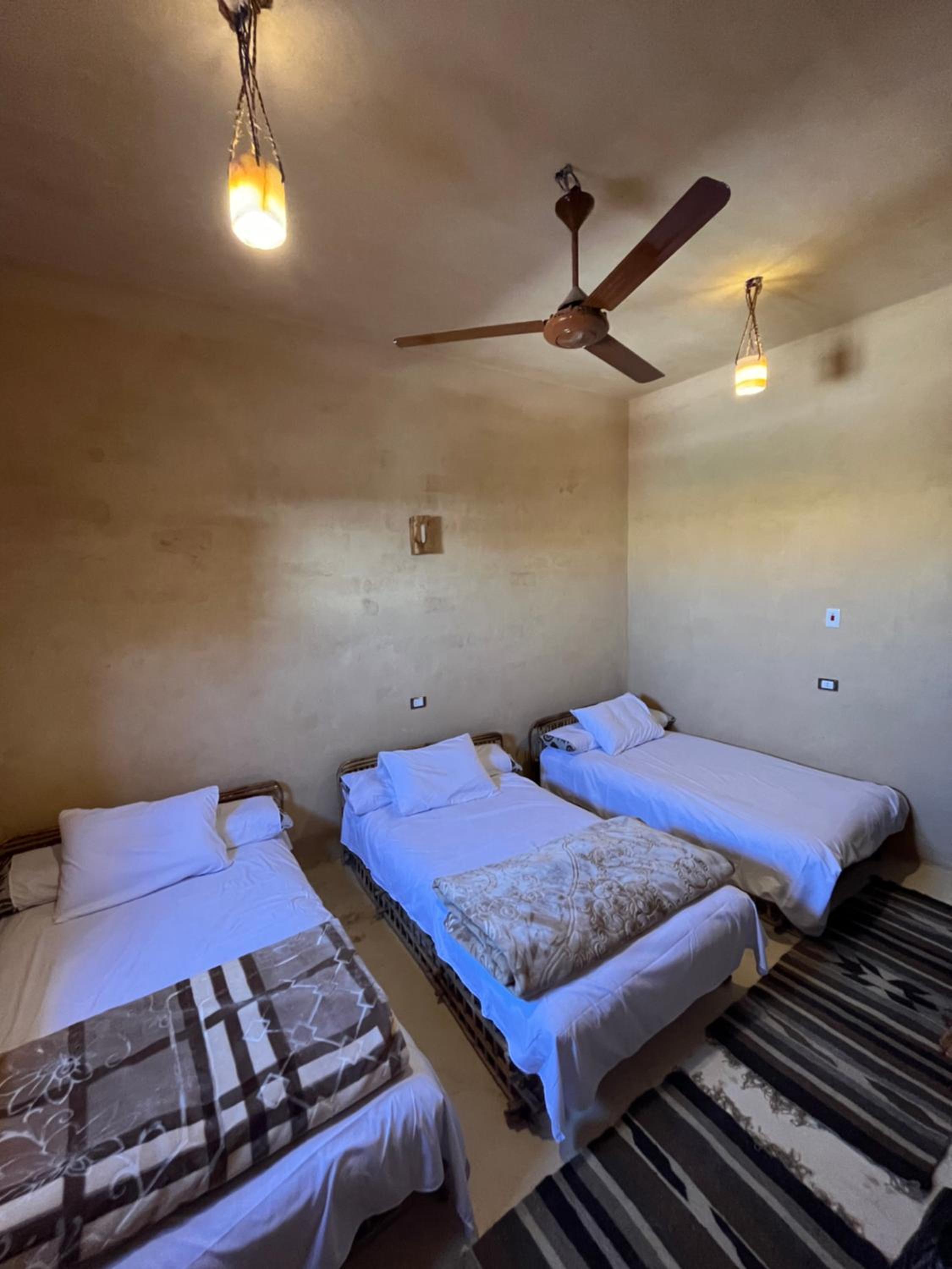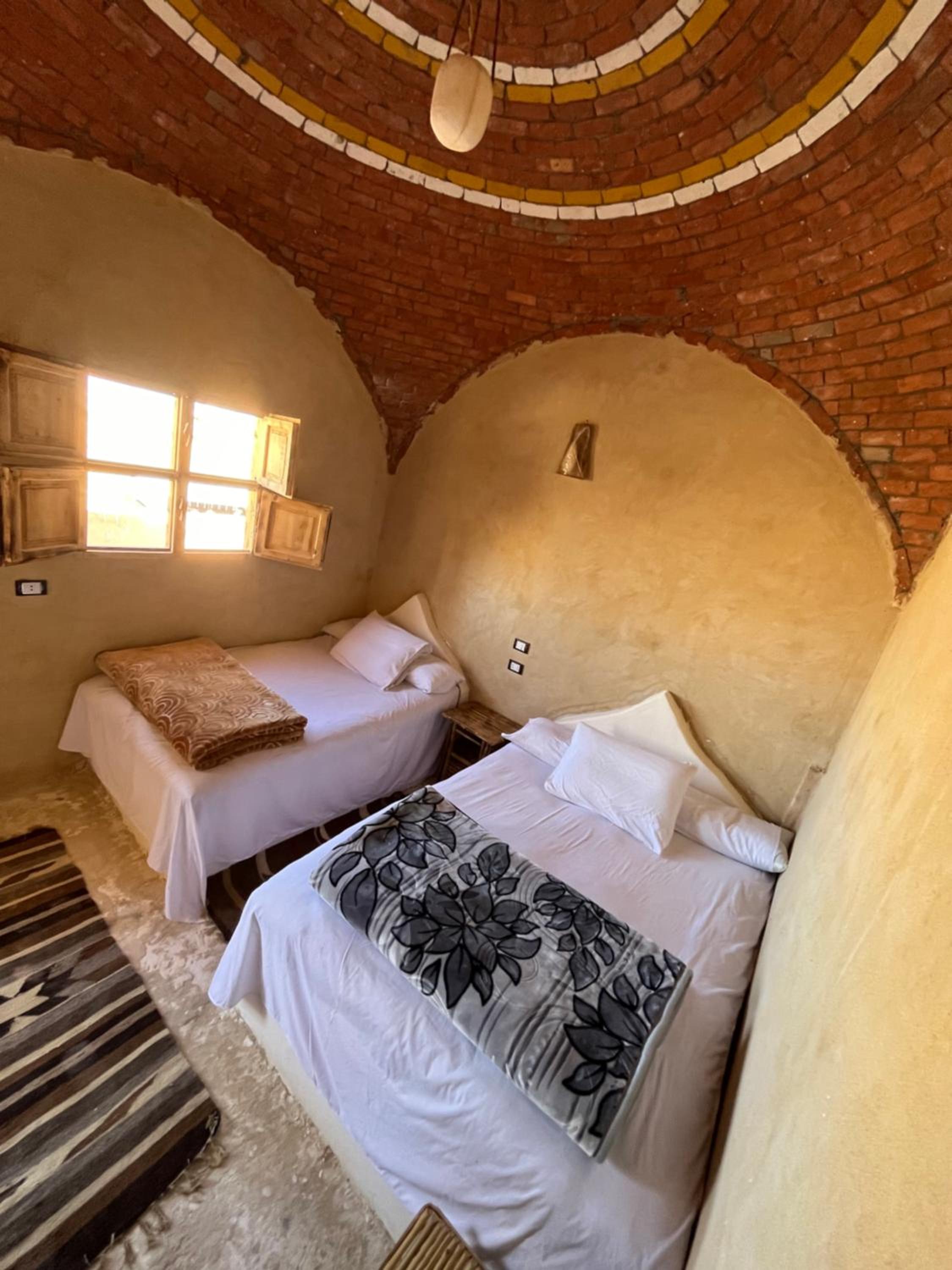 The place is in a very calm and peaceful part of Siwa. There's a beautiful inner yard with a small pool and a campfire seating. It was really nice to sit around the fire in the evening and drink tea. The room and bathroom were nice and clean. There were warm and soft blankets for winter months. Breakfast was delicious and there was also possibility to order lunch and dinner. The owner is very kind and accommodating.