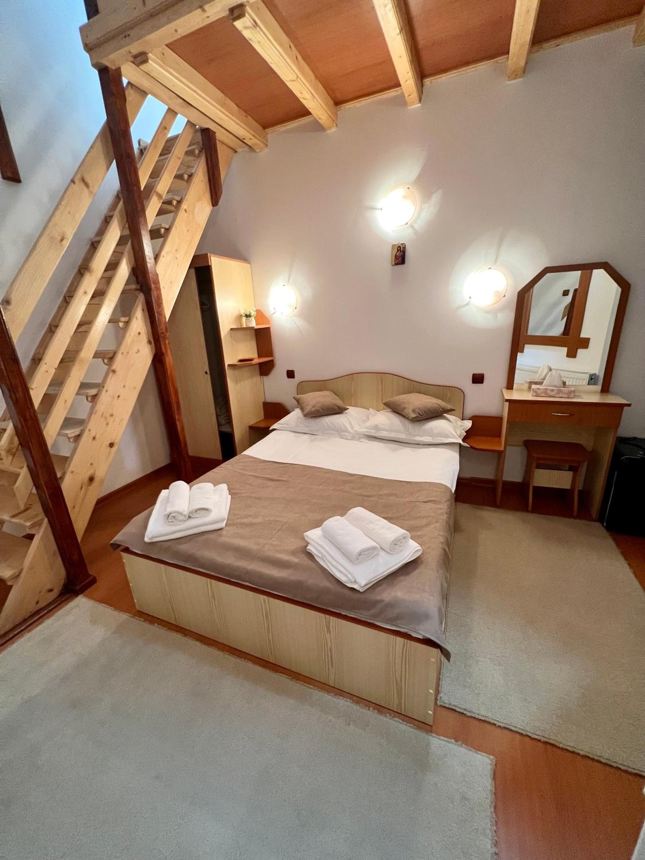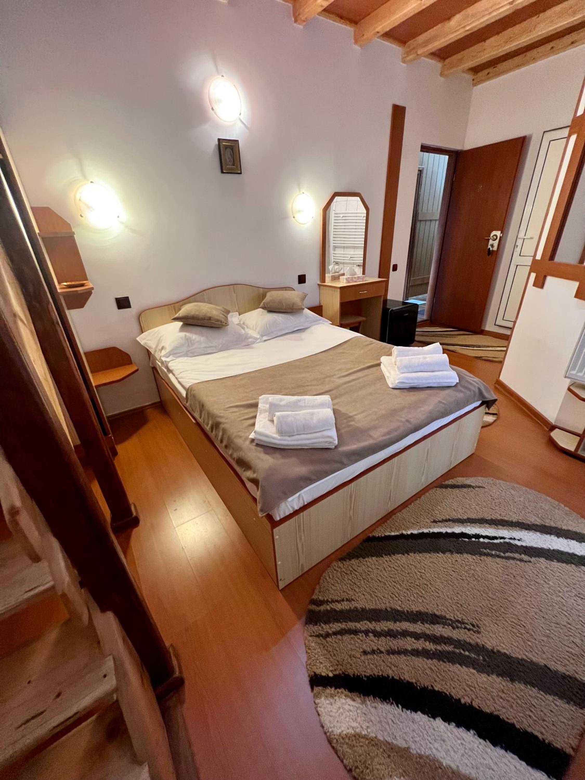 Am rămas foarte plăcut surprinsă de această pensiune. Am fost cu cei doi copii sub 9 ani, care au fost foarte încântați de cameră și paturile lor separate la etaj. Proprietarii au fost foarte primitori și de ajutor. Camera era foarte încăpătoare, cu aer condiționat, ceea ce a fost perfect pe căldurile astea. O să revenim cât de curând! Recomandăm cu drag.