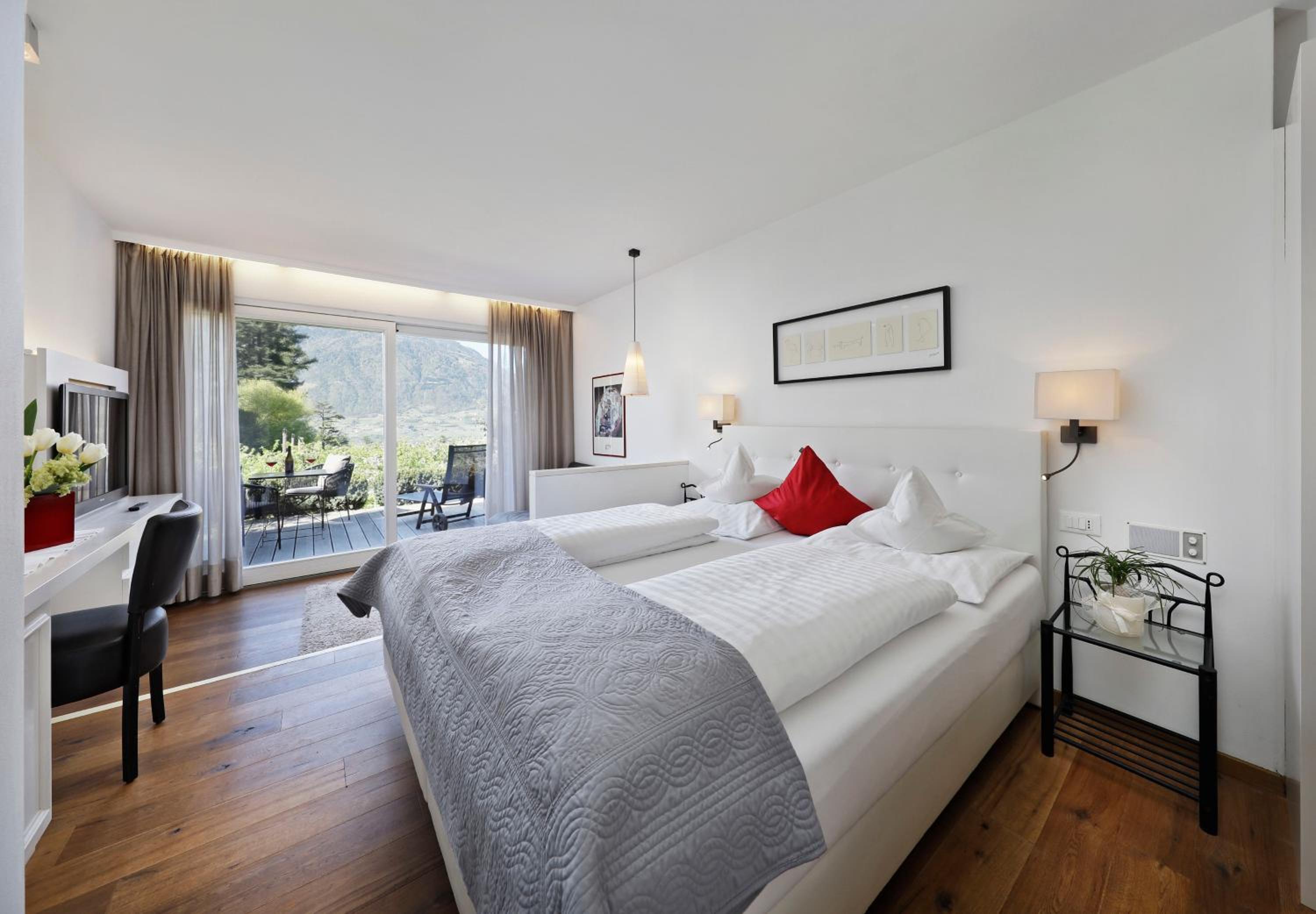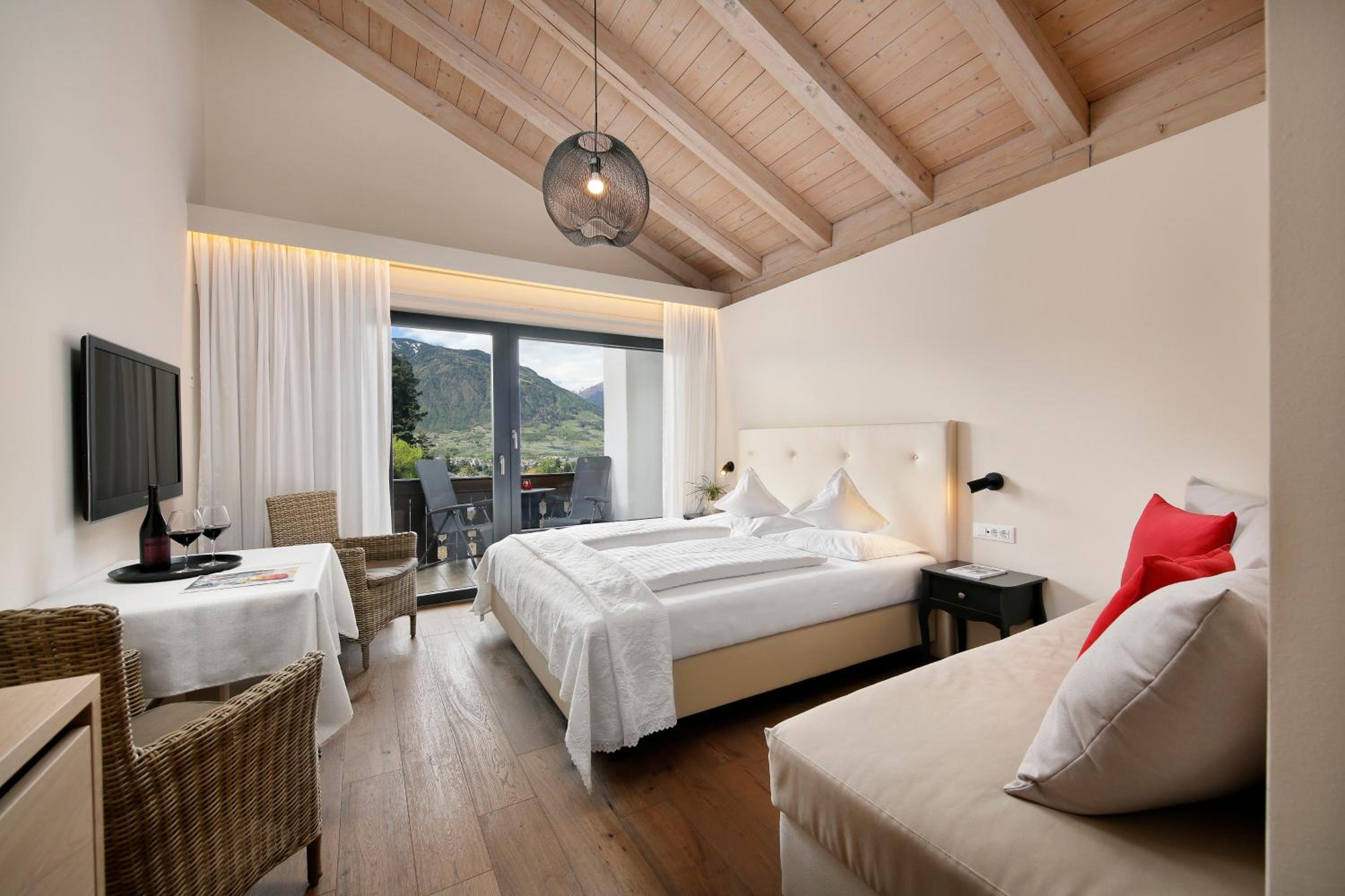 La posizione è strategica perchè si arriva comodamente al centro e si è vicini a Merano 2000 e in genere è vicina da tutte le attrazioni della zona. Colazione eccellente, i prodotti sono scelti con cura.