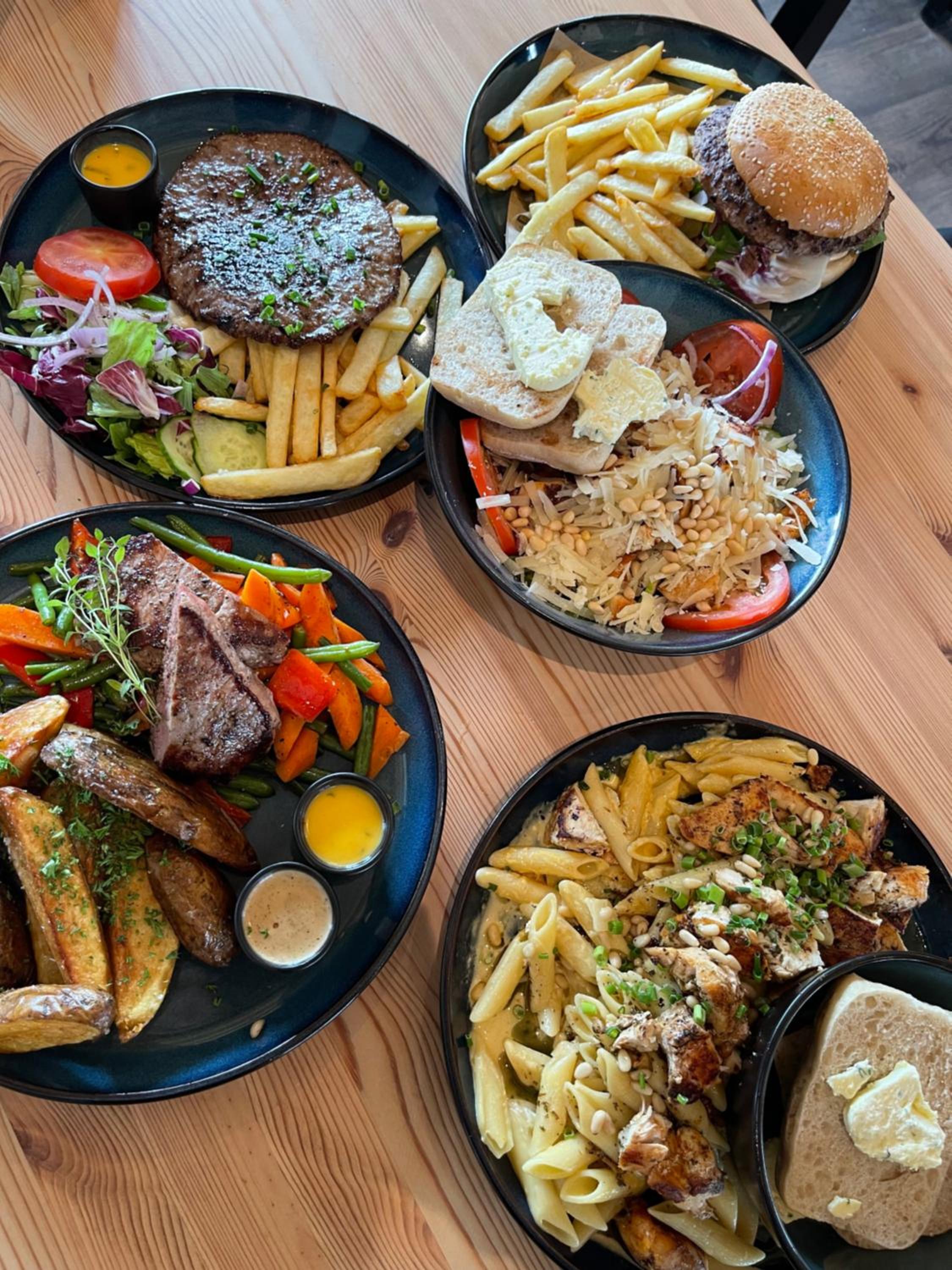 Enjoy the outdoor ambiance on our terrace, indulge in delicious meals at our restaurant, and unwind with a drink at the bar.