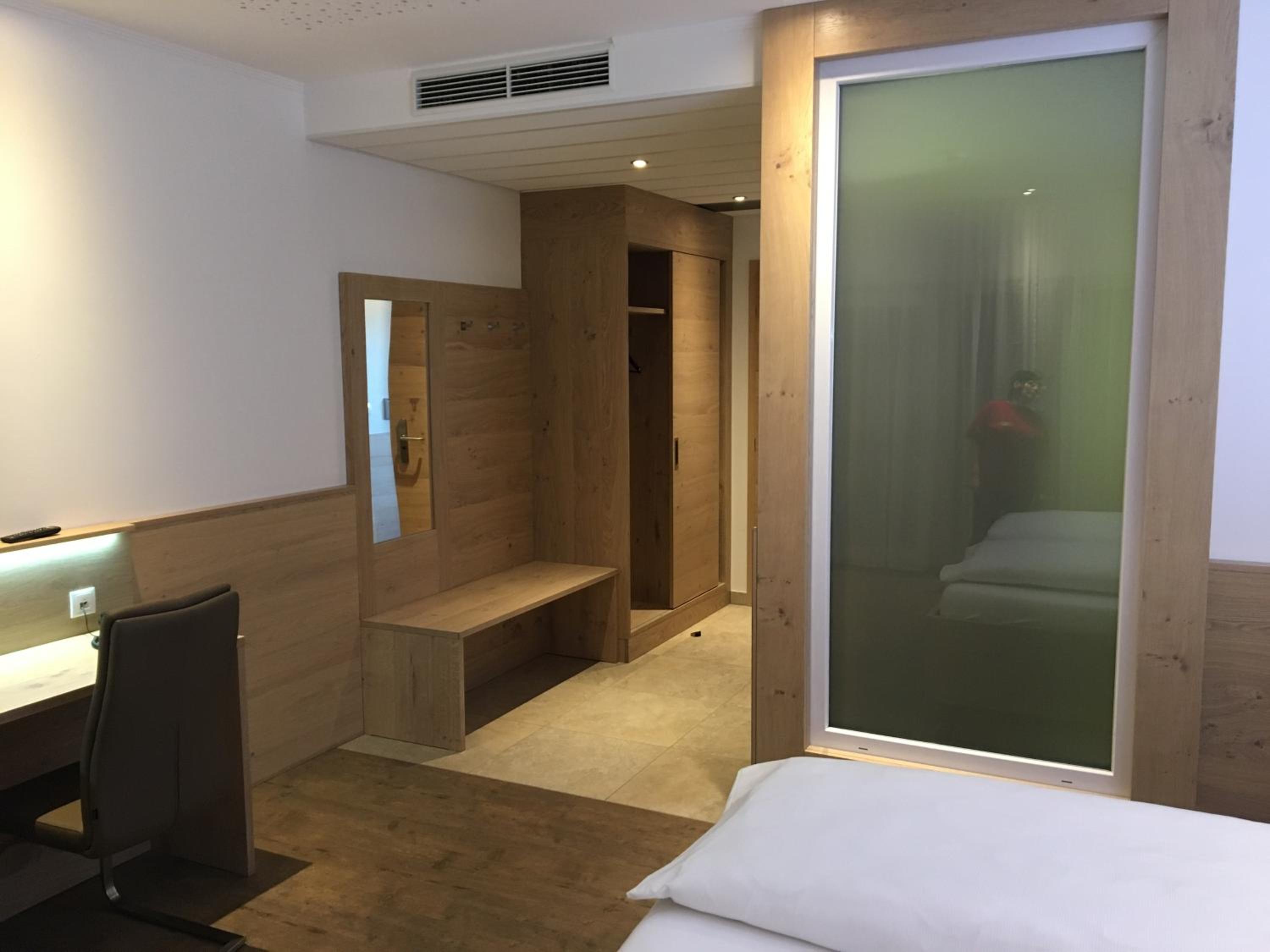 Sehr moderne Unterkunft mit gemütlichem Bett und großen Zimmer. Reichhaltiges Frühstücksbuffet.