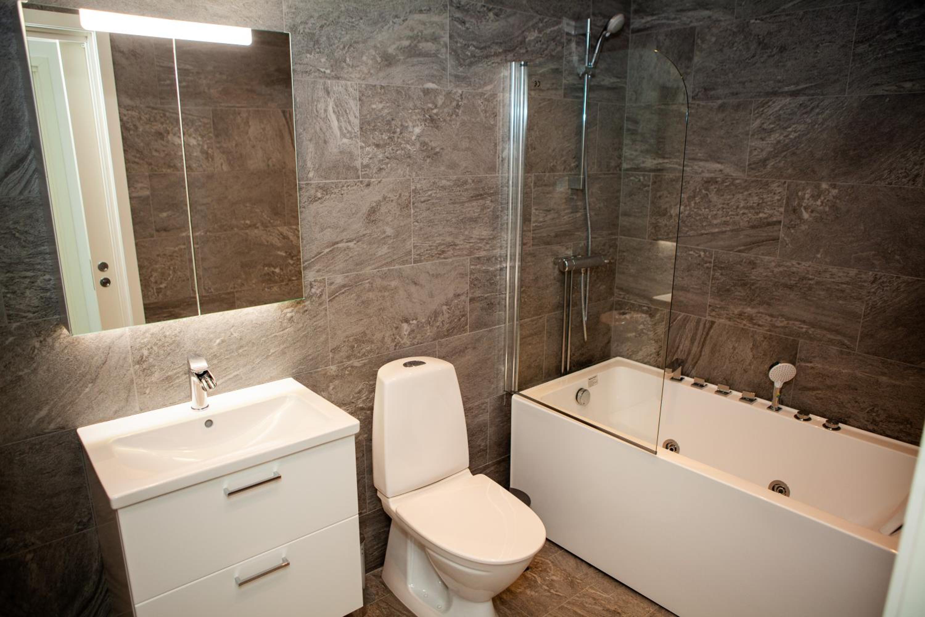 Indulge in relaxation at Rösholmens Havsboende with your very own spa bath, perfect for unwinding after a day of exploring Kungshamn.