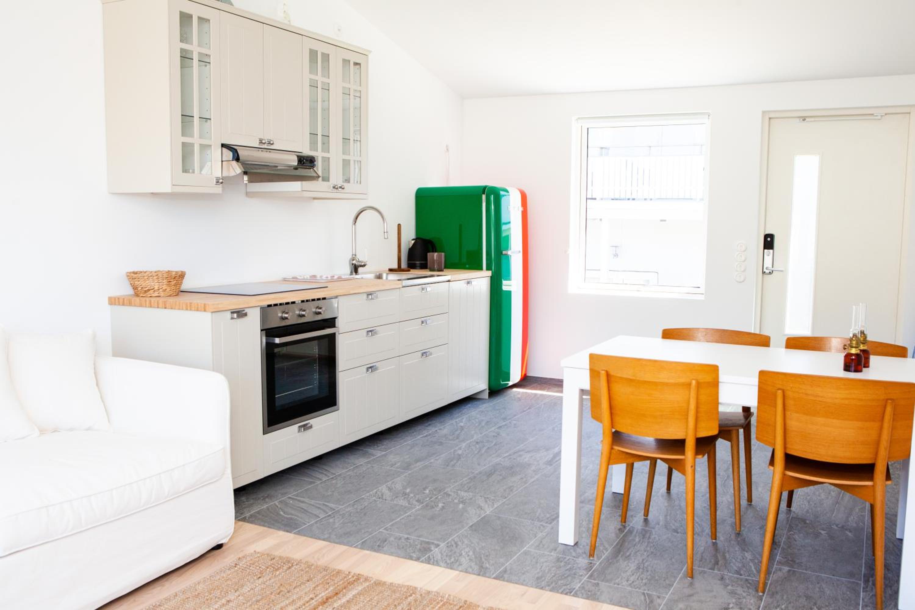 Fin och smakfull inredning. Lugn omgivning. Fint klippbad i närheten.