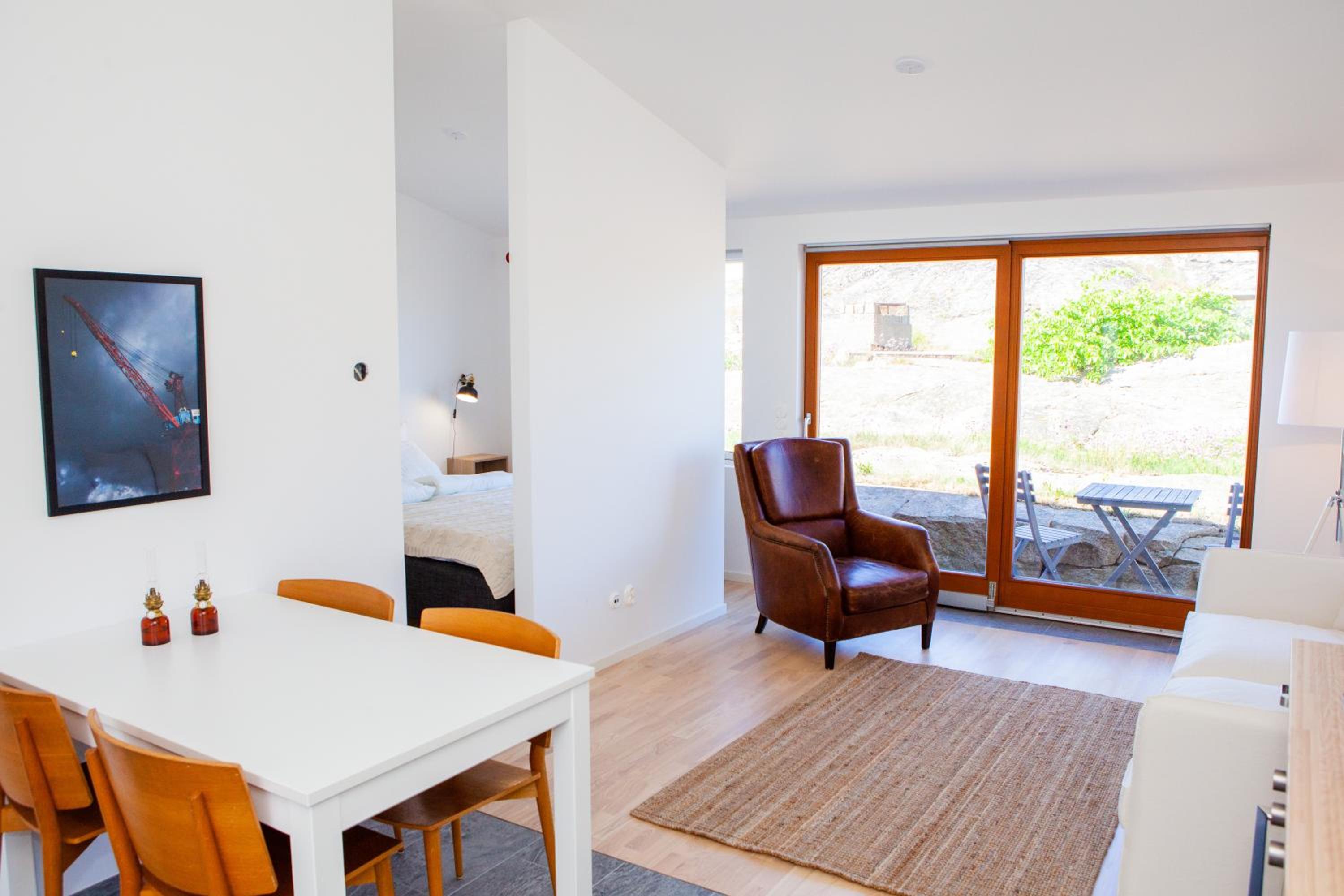 Nicely located on an isle, nice and modern interior and very comfortable bed. Well equiped kitchen. Very close to Smögen.