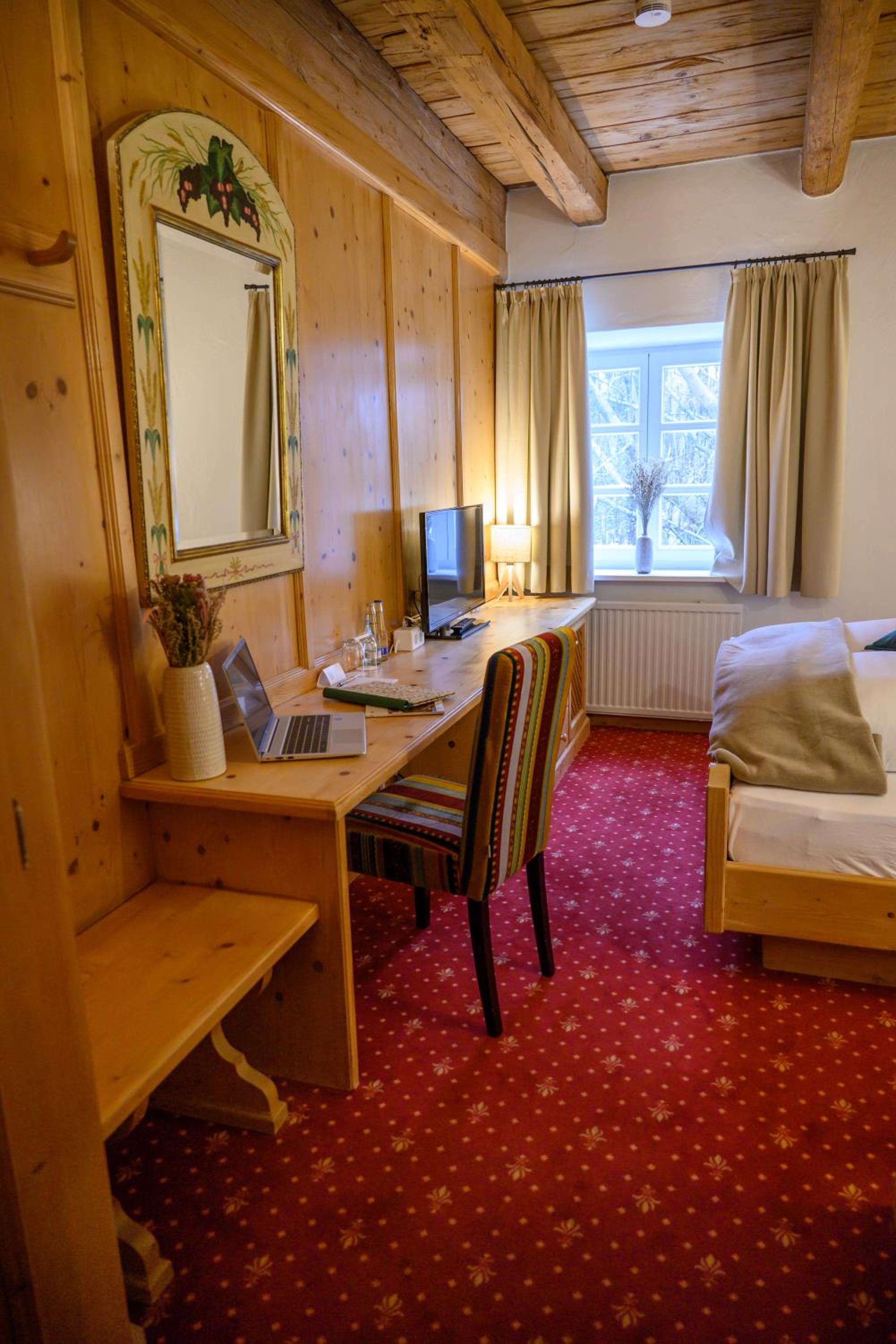 Dieses historische Gebäude bzw. Hotel liegt wunderschön am nordwestlichen Stadtrand von München in Allach. Man kann prima direkt vor dem Hotel parken. Der Check-In verlief wegen später Anreise zuverlässig mit einem Schlüssel-Safe. Das ganze Hotel und auch die Zimmer sind im bayerischen Stil, was sehr gut paßt und authentisch wirkt. Im Somemr gibt es hier noch einen wunderschönen und weithin bekannten Biergarten unter großen Bäumen. Das Frühstück unten im Gewölbe-Keller hatte ein sehr gutes Preis-/Leistungsverhältnis (es gibt im Umkreis keine vernünftigen Bäcker-Cafés). Wir kommen wieder.