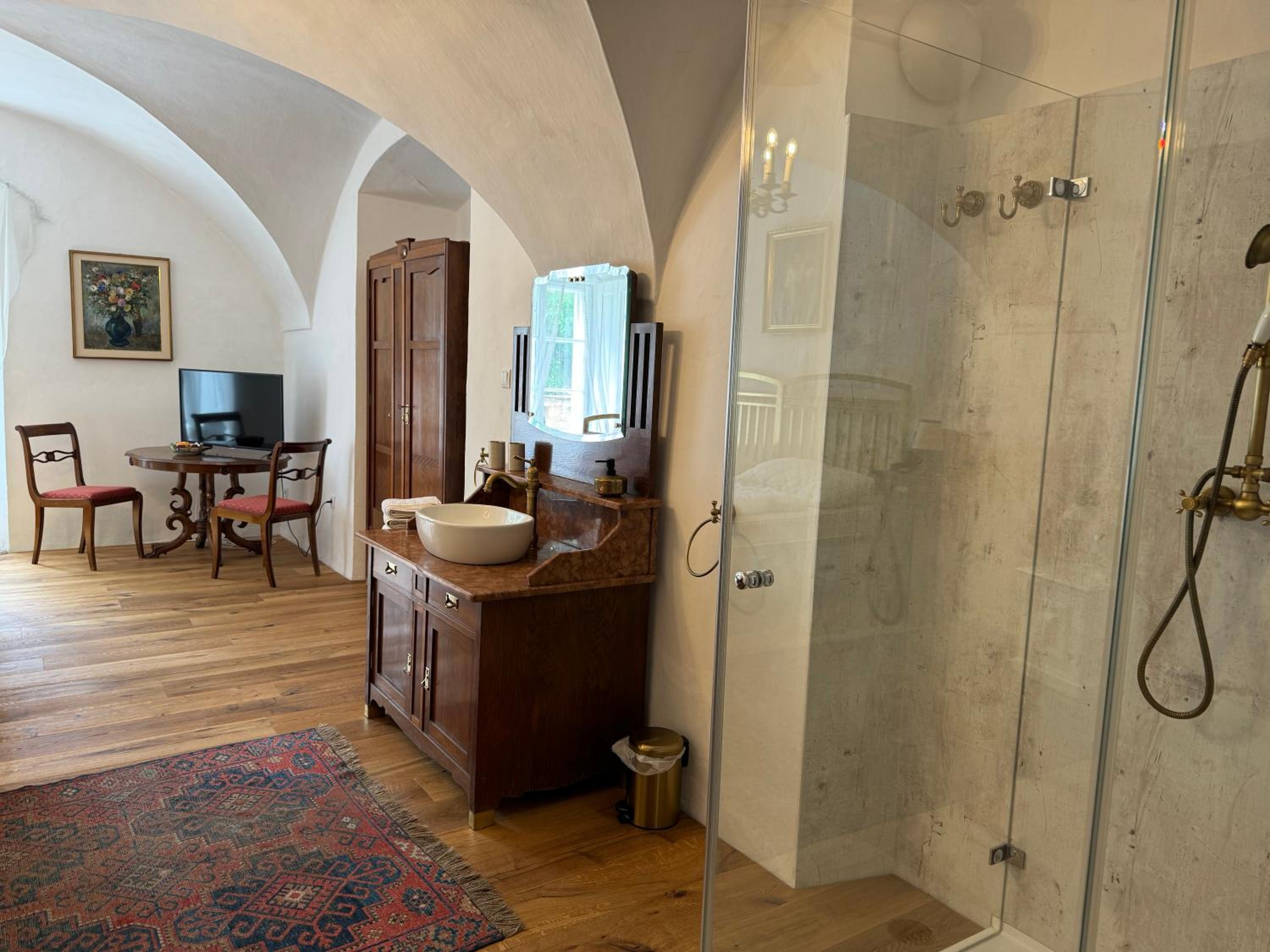 Ein richtiger Schlossurlaub in alten Gemäuern Mit herrlichem Garten. Das Ambiente war großartig und von der Herrschaft liebevoll zusammengetragen. Es passte alles, Möbel ,Vorhänge, Pölster, Bettwäsche und alles stimmig. Der Empfang sehr herzlich und informativ .das Frühstück gut und ausreichend .wir können diese Unterkunft nur weiterempfehlen und wir werden wieder kommen , lieben Dank