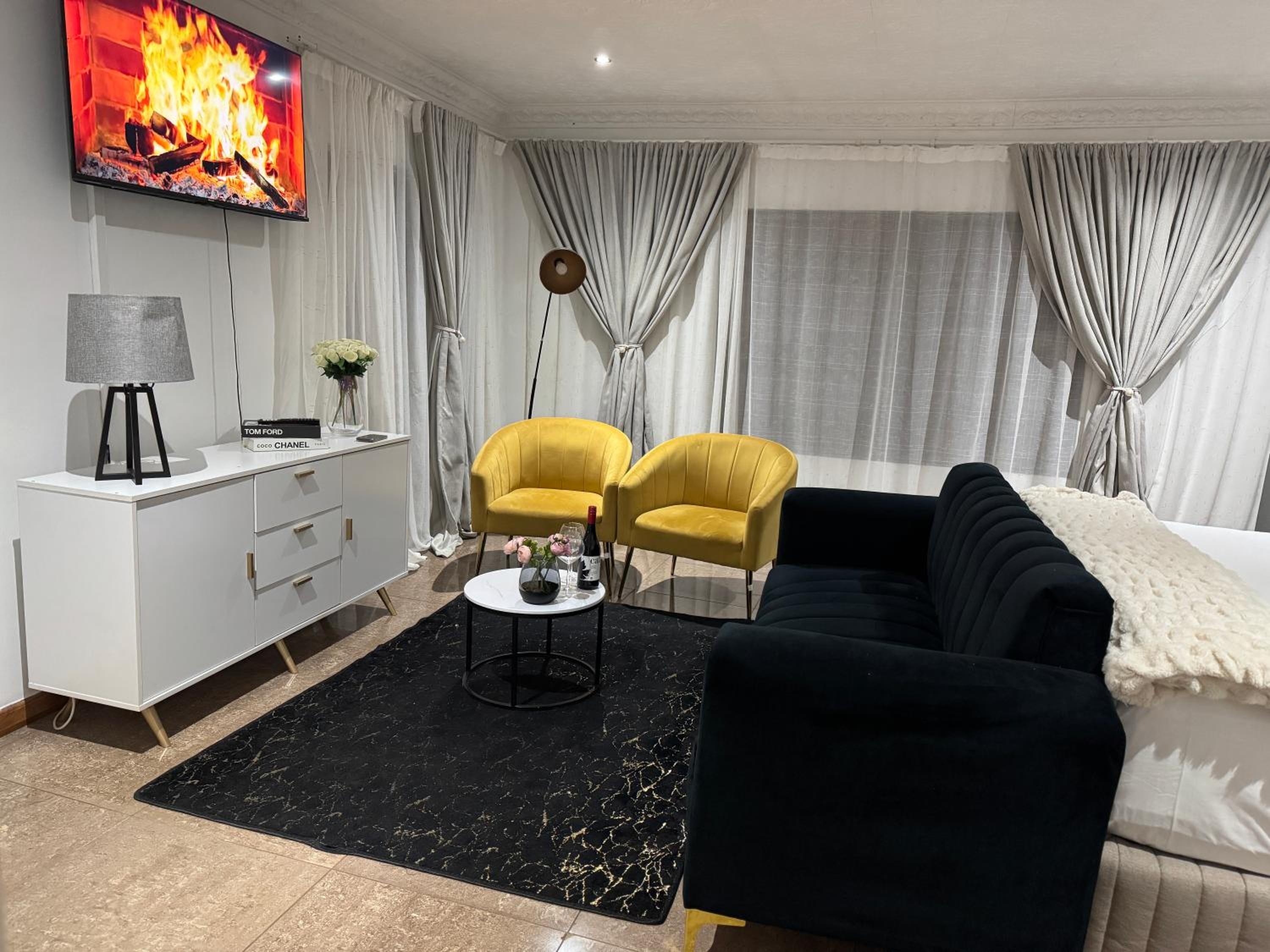 Explore Abe Bailey Nature Reserve just 10 km away or tee off at Blyvooruitzicht and Goldfields West Golf Clubs nearby. Lanseria International Airport is conveniently located 90 km from our homestay.