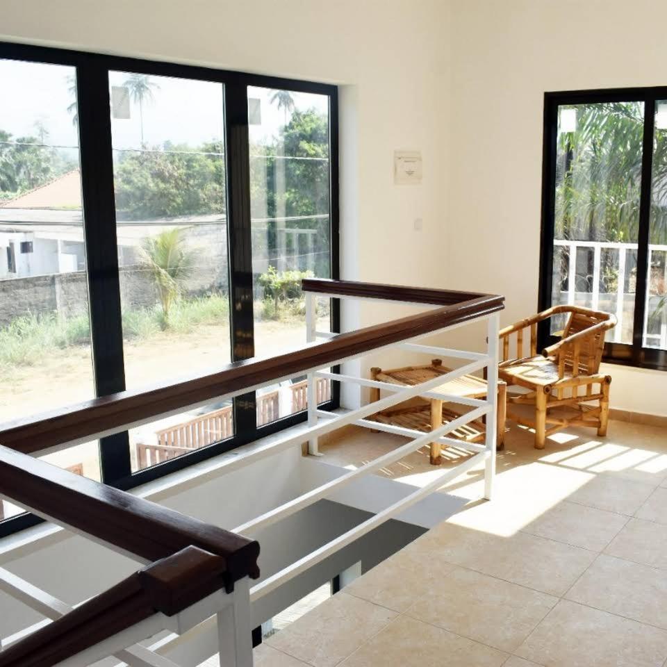 En la zona bien del pais. Muy proximo al aeropuerto. Se puede ir andando si vas con poco equipaje. Hay parking en la puerta. Habitacion sencilla pero amplia con buen lavabo. Tiene nevera y aire. Dan desayuno pero no pudimos tomarlo por el horario del avion. A 4 min en coche està el mejor super del pais. El unico quizas con cosas como yogures...Es el super donde compra la elite del pais y los extranjeros que curran alli.