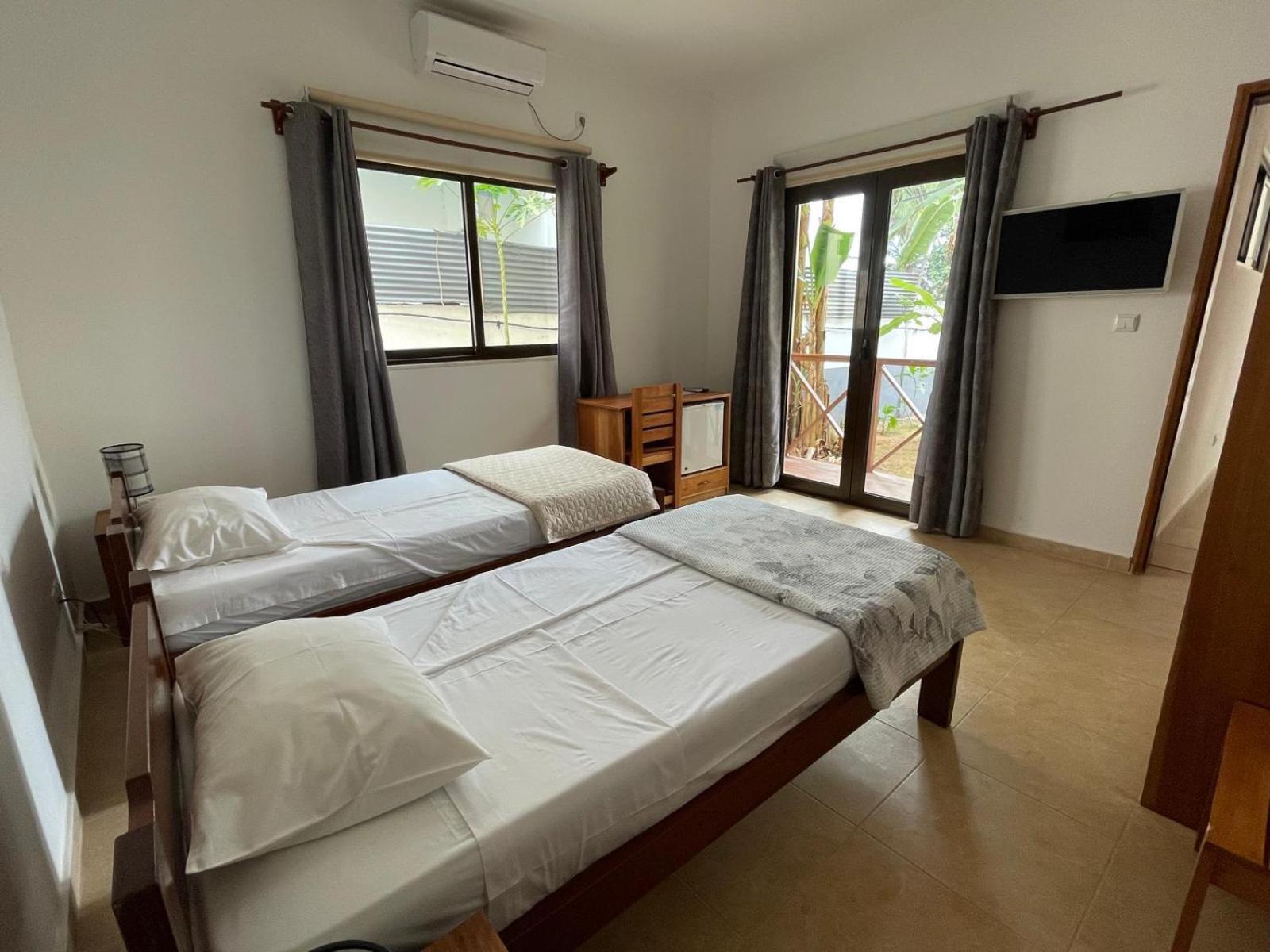 The rooms and spacious and clean, with nice en-suite bathroom. We were able to exchange some euros into dobras as well, which was very handy! There was also a delicious breakfast for us the next morning, with fresh bread, fruits, eggs and butter and delicious coffee and tea.