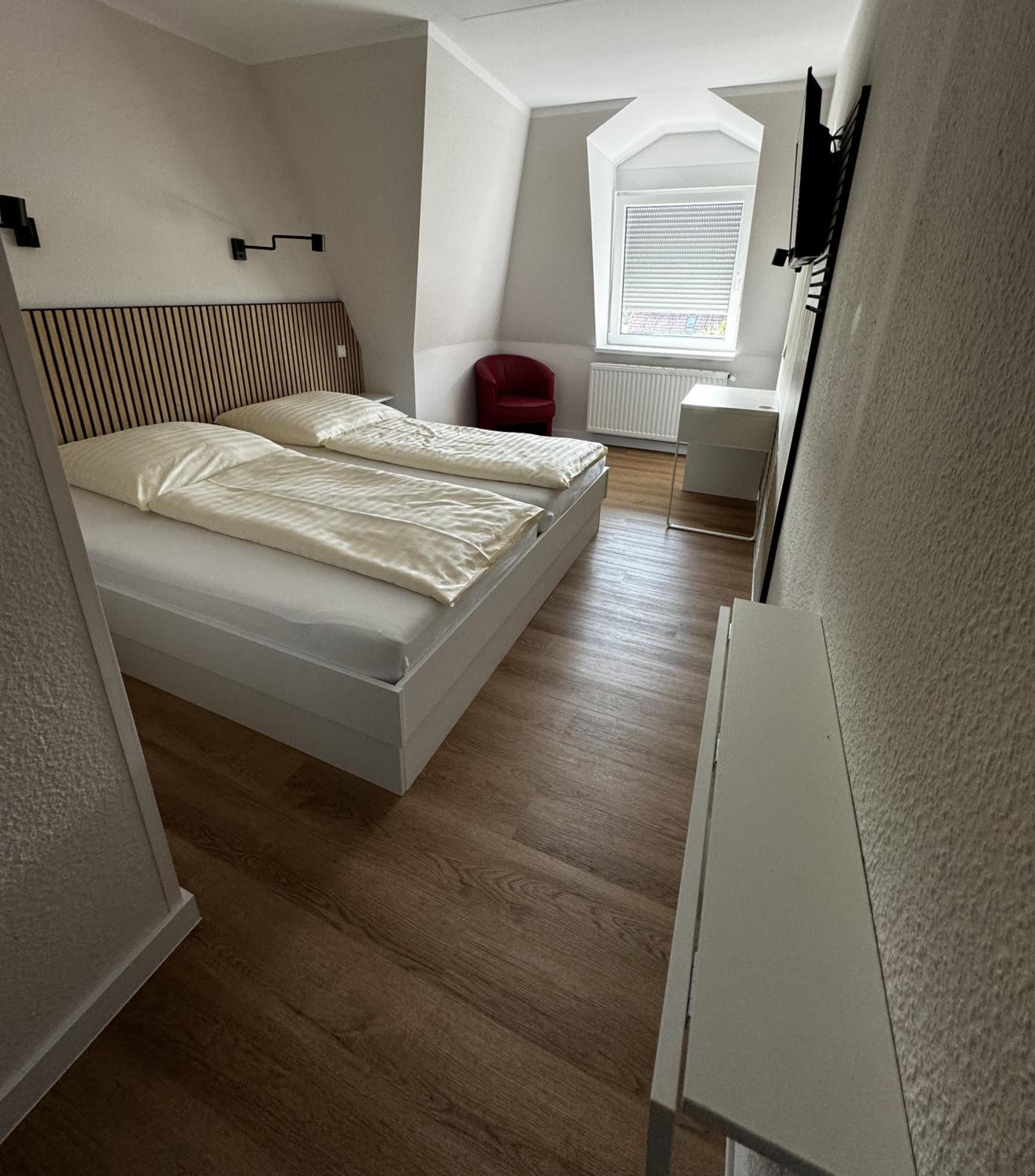 Unkomplizierter Check-in und Check-out. Zimmer wirkte neu renoviert, alles sauber. Wasserkocher und Mikrowelle Auf dem Zimmer waren sehr praktisch. Zimmer mit Balkon nach hinten raus war schön ruhig.