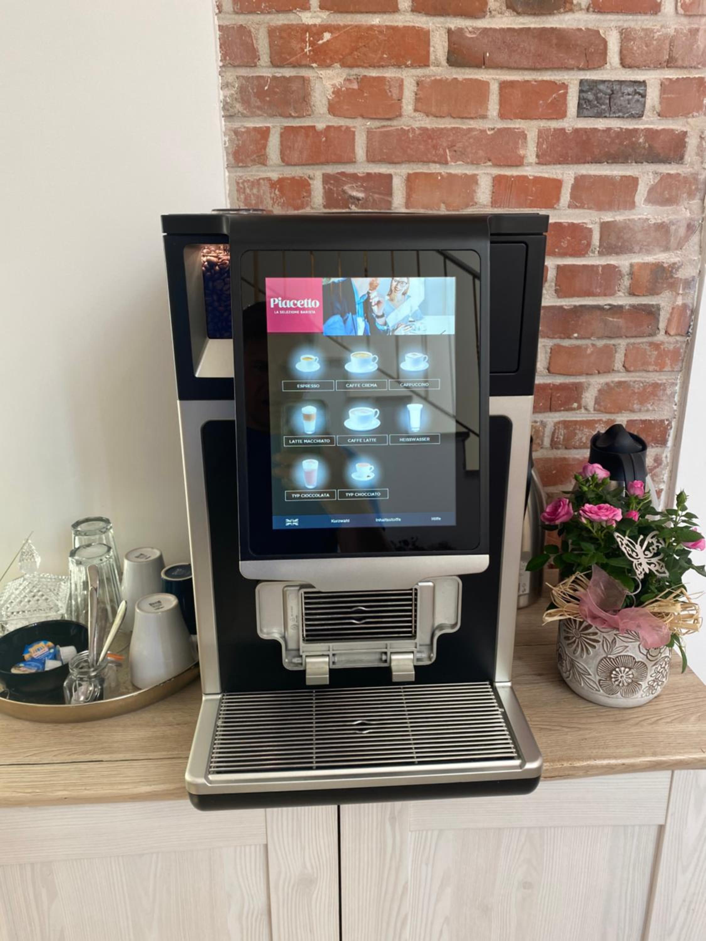 Vorbildlich: Auf jeder Etage eine Kaffeemaschine zur Selbstbedienung. Getränkekühlschrank (auch SB). Powerbanks leihweise.