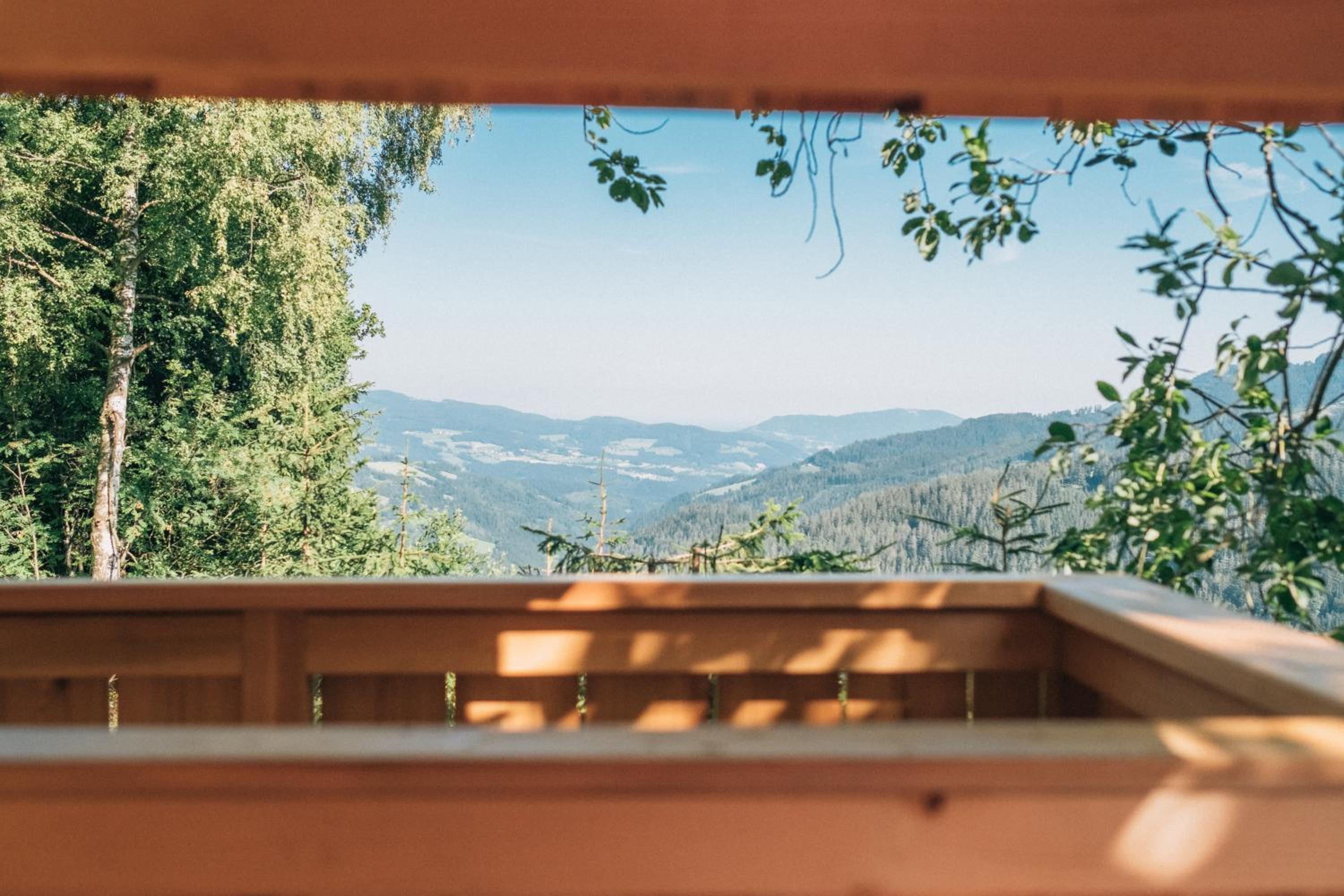 Experience breathtaking panoramic views of the scenic landscape from the tranquil location of Naturhotel Bauernhofer, nestled amidst the Almenland Nature Park.