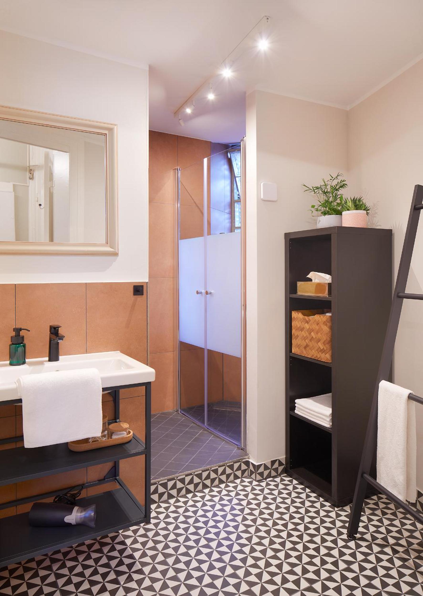 La salle de bain privative était très spacieuse. Le Wifi fonctionne très bien et la TV est très grande.