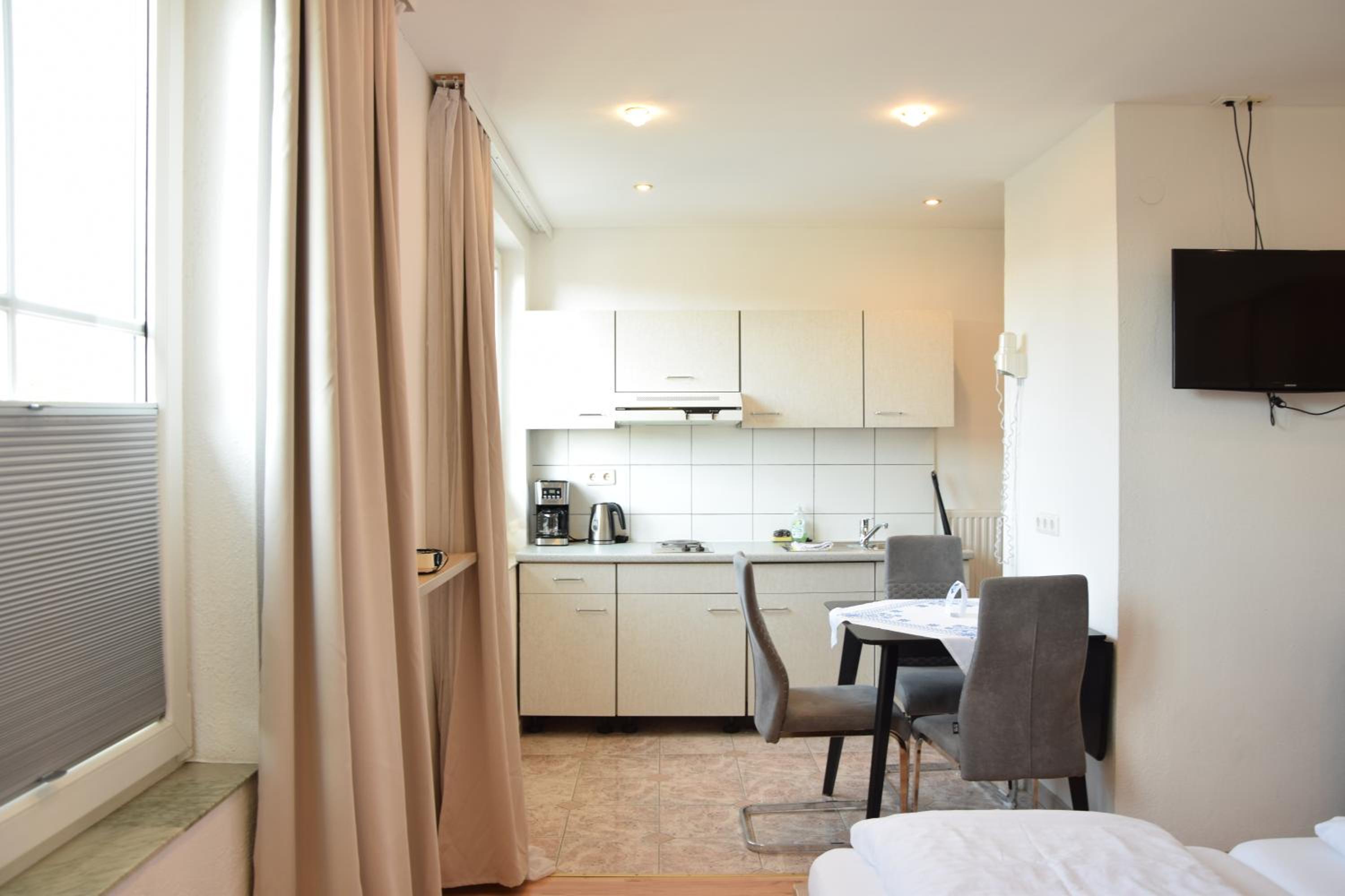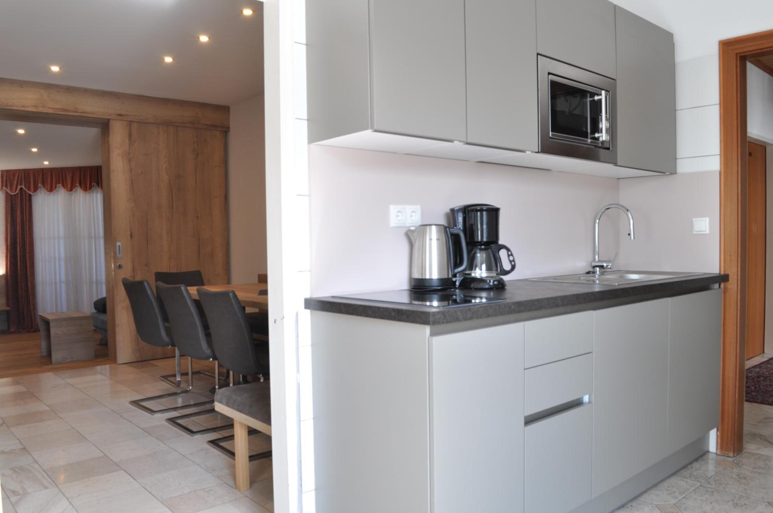 Schlechte Ausstattung. Mikrowelle gehört mittlerweile zu standard. Milch zu wärmen zum Frühstück im mittelgroßen Topf ist mühsam. Keine 2. Geschirrtuch. Schmutzige, abgenütze Küchenschwamm.Keine Belüftung im Badezimmer. Das Bett bei jeder Bewegung kracht . Keine Wäscheständer am Balkon. Bei 4 Personen, nasse Badeanzüge und Badetücher usw. aufzuhängen ist schwierig. Das waren nur einige wichtige Beanstandungen. Der Rest waren Kleinigkeiten. Ausserdem wir haben nie das Personal zu Gesicht bekommen.