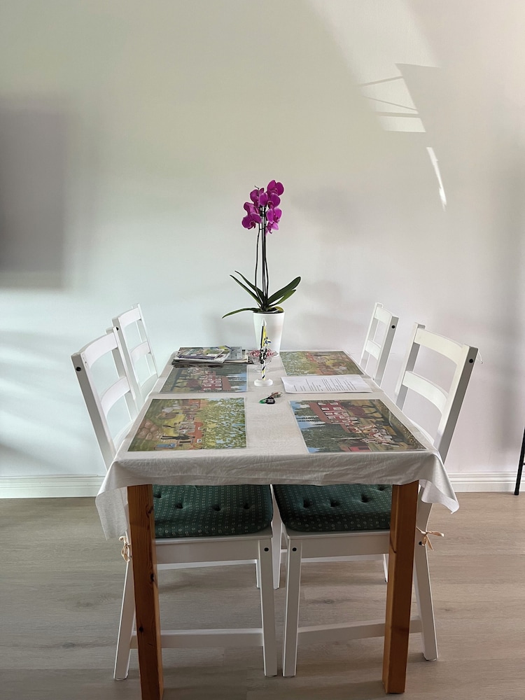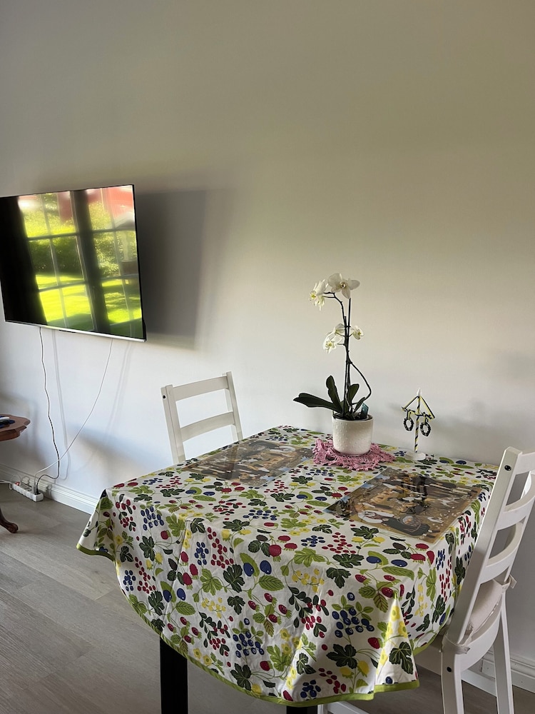 En kort men toppen-vistelse på alla vis. Stannade 2 nätter (2 vuxna och en tonåring). Utan att ha kollat läget jättenoga visade det sig att vi hade en kort promenad till bad, stan, cykelbanan för lite rullskidåkning men ffa till friidrottsarenan där dottern tävlade. Området väldigt mysigt och lugnt med en liten loppis som låg ett stenkast ifrån boendet. Tydliga instruktioner kring incheckning, trevligt bemötande på plats och en jättefin liten lägenhet. Köket välutrustat och allt hemtrevligt och välstädat. Sov gott i sängarna och AC var underbart i värmeböljan. En liten uteplats fanns också. Det där lilla extra med kaffe, te, oboy, plastpåsar och aluminiumfolie betyder mycket när man som vi kom iväg lite oplanerat😀 Boendet rekommenderas varmt och vi kommer gärna igen!