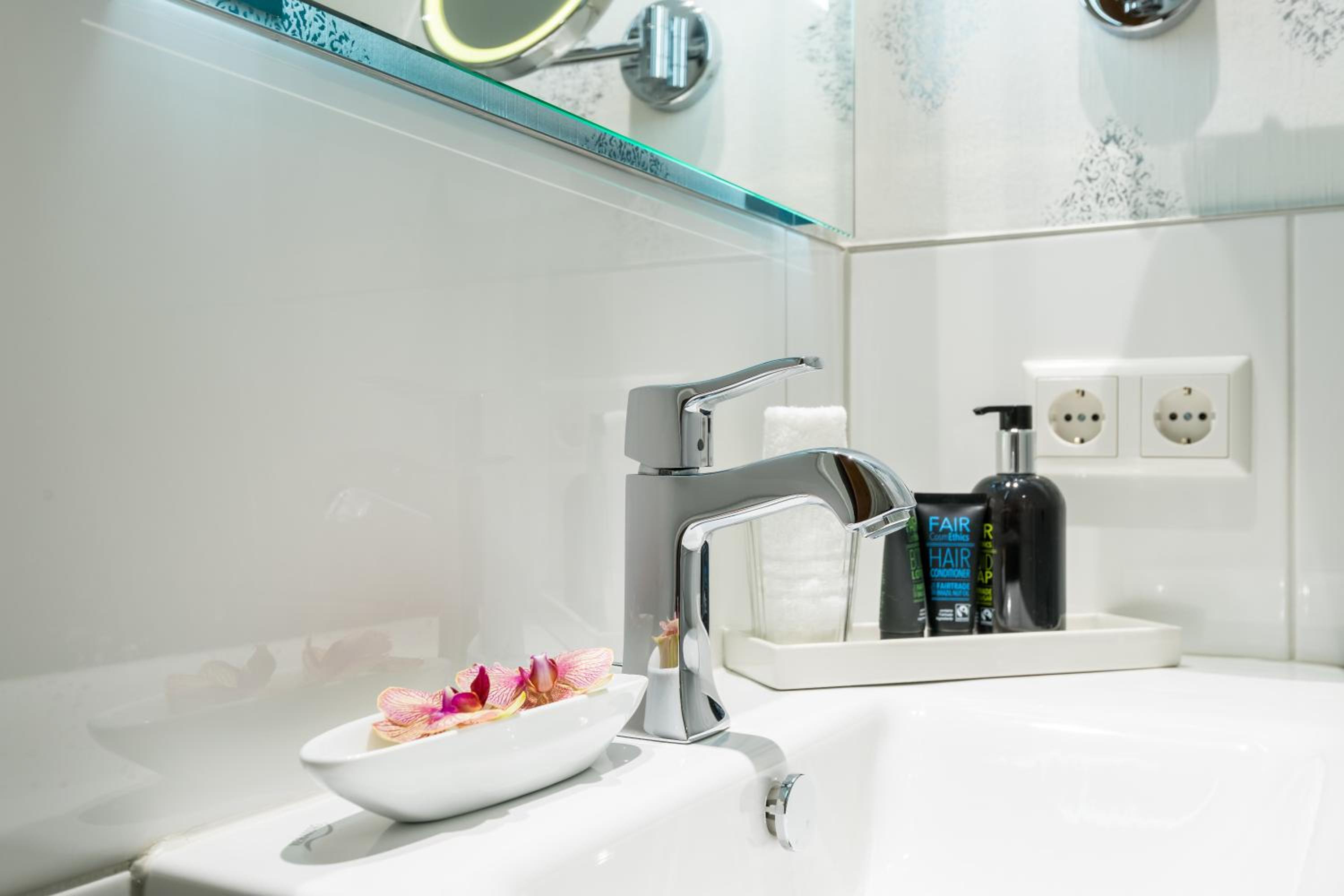 Sehr schönes Zimmer und andere Räumlichkeiten (Lobby, Spa-Bereich), ruhige Schlossatmosphäre. Die ganze Anlage ist etwas besonderes.
