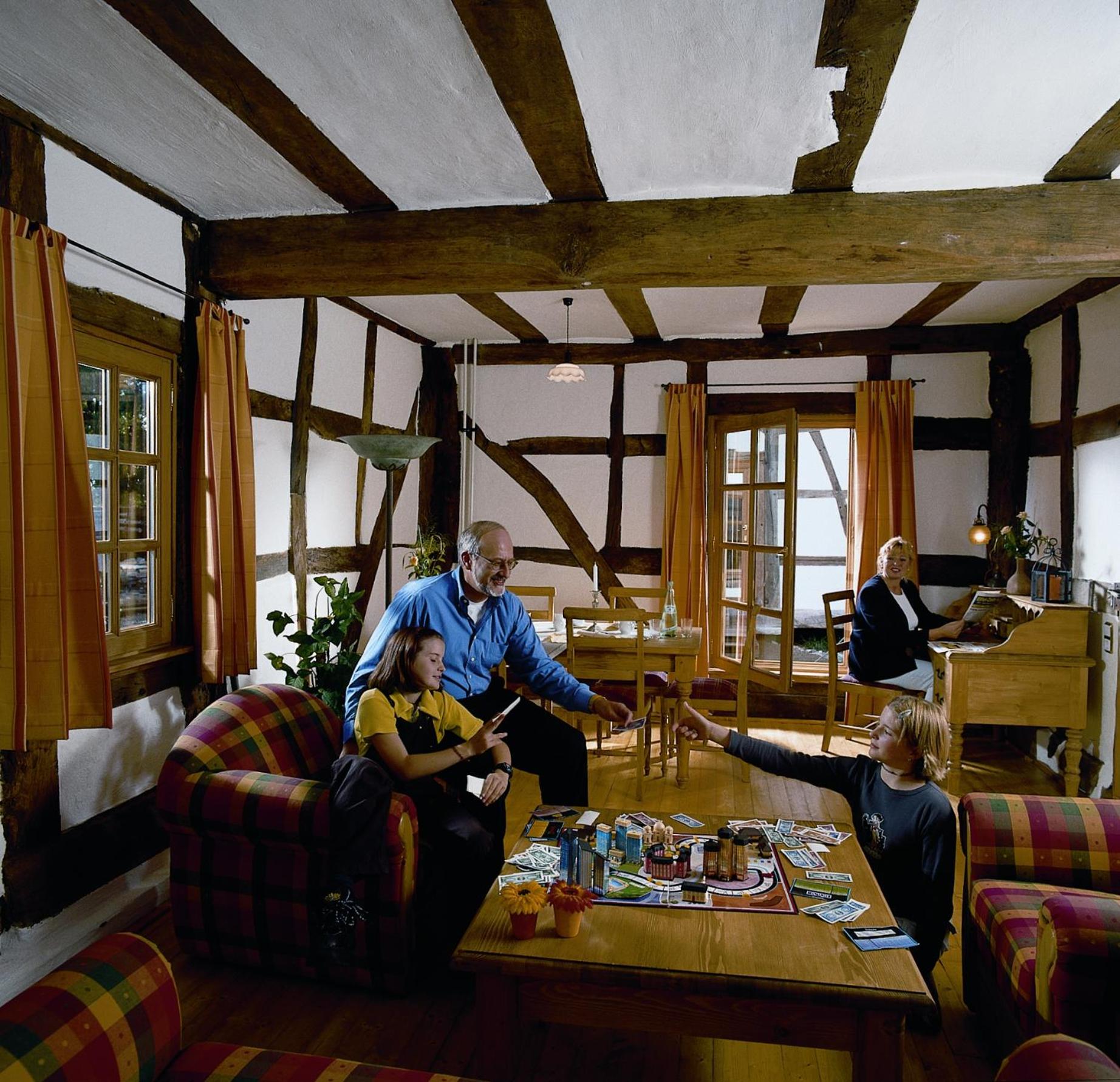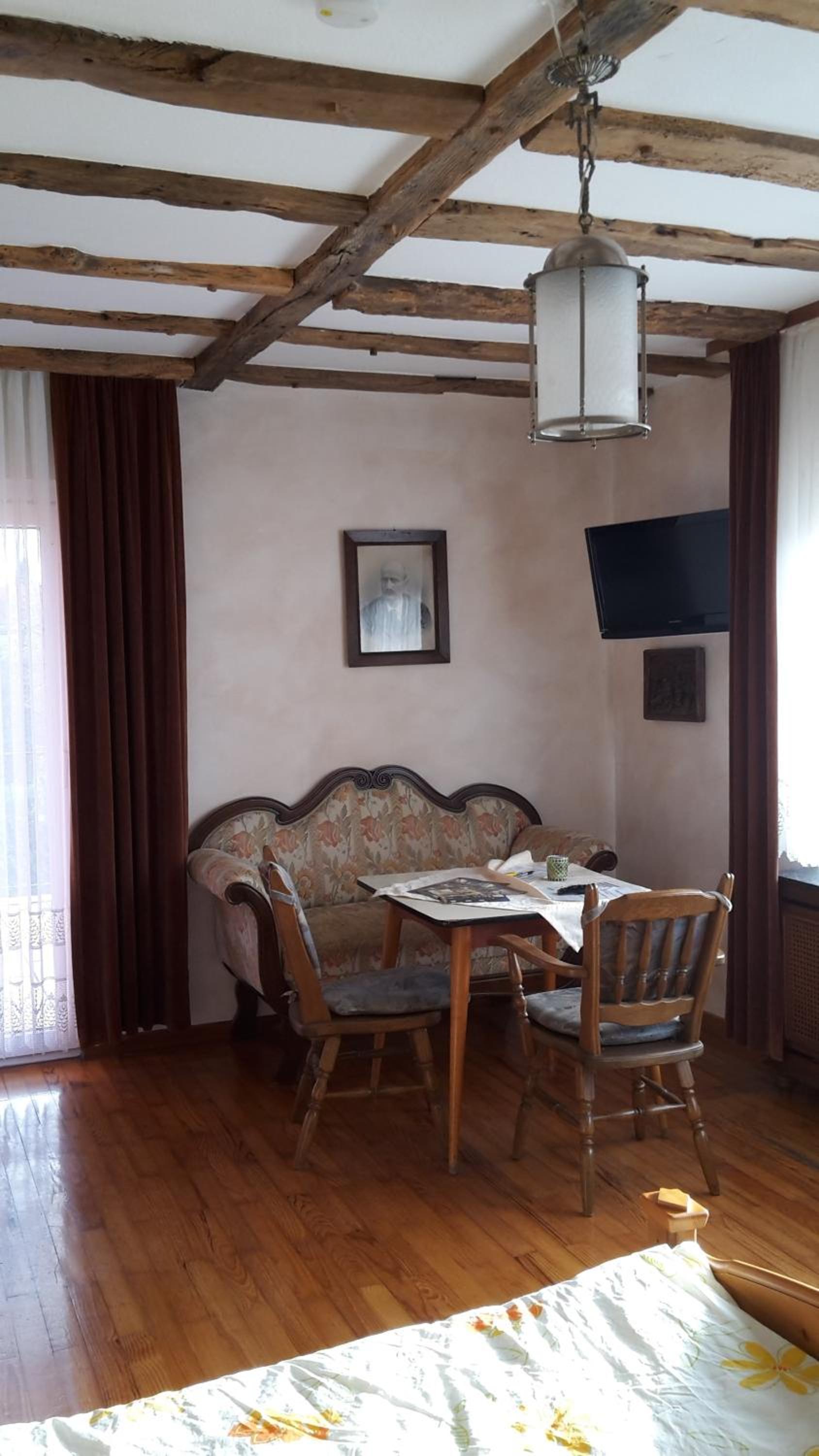 Historische Wassermühle offers cozy guest rooms with modern amenities, including flat-screen TVs and private bathrooms. Some rooms even feature a comfortable seating area for relaxation.