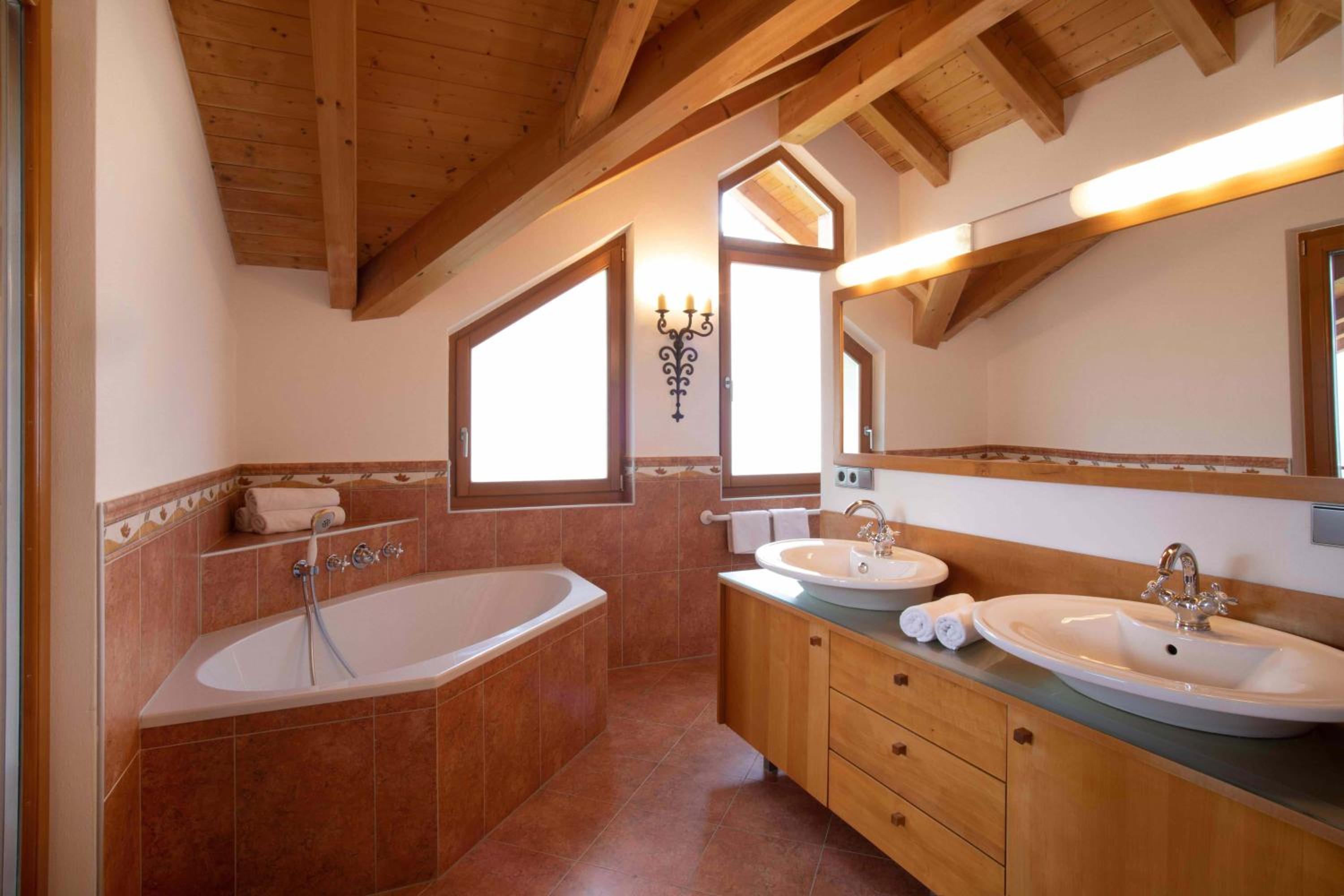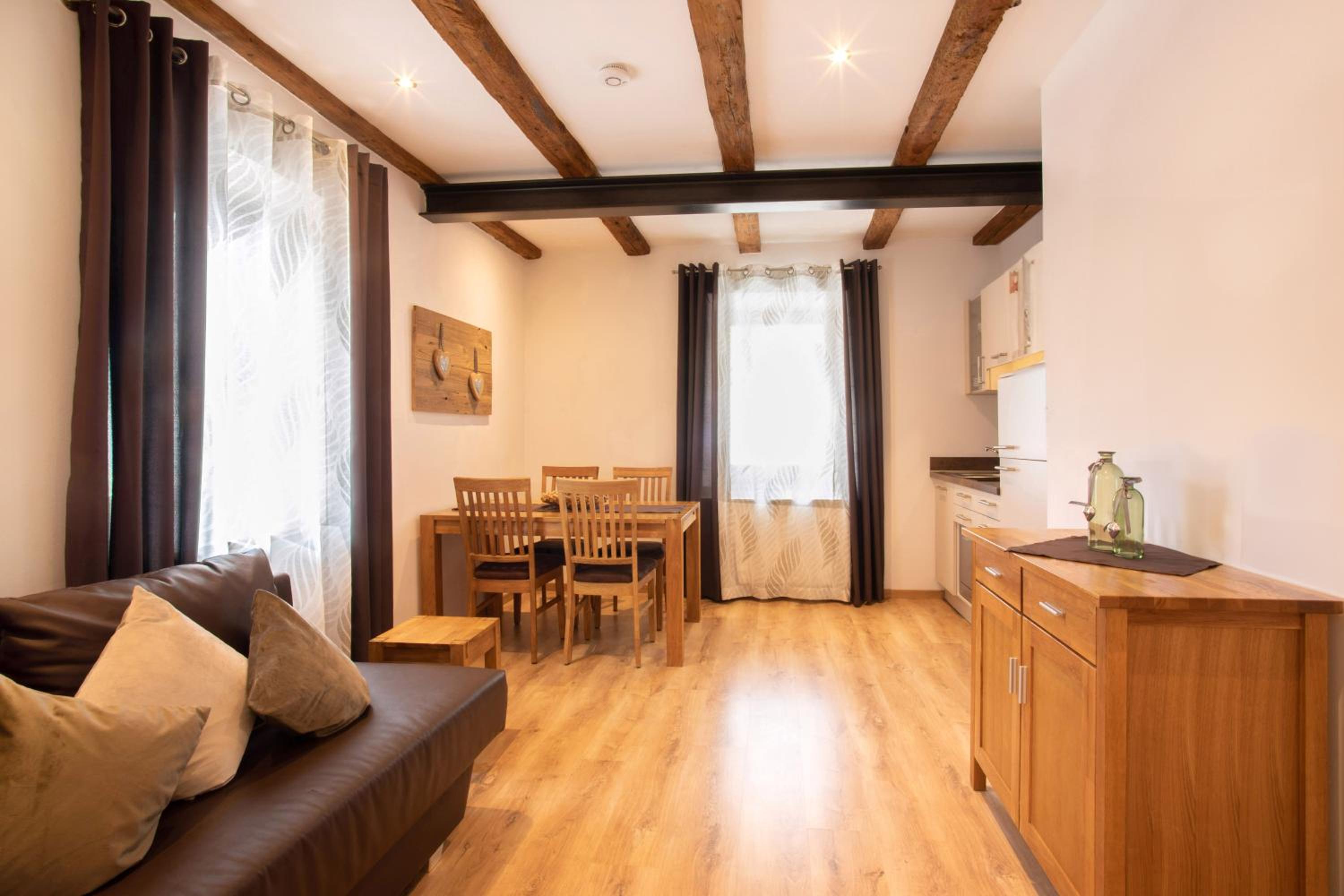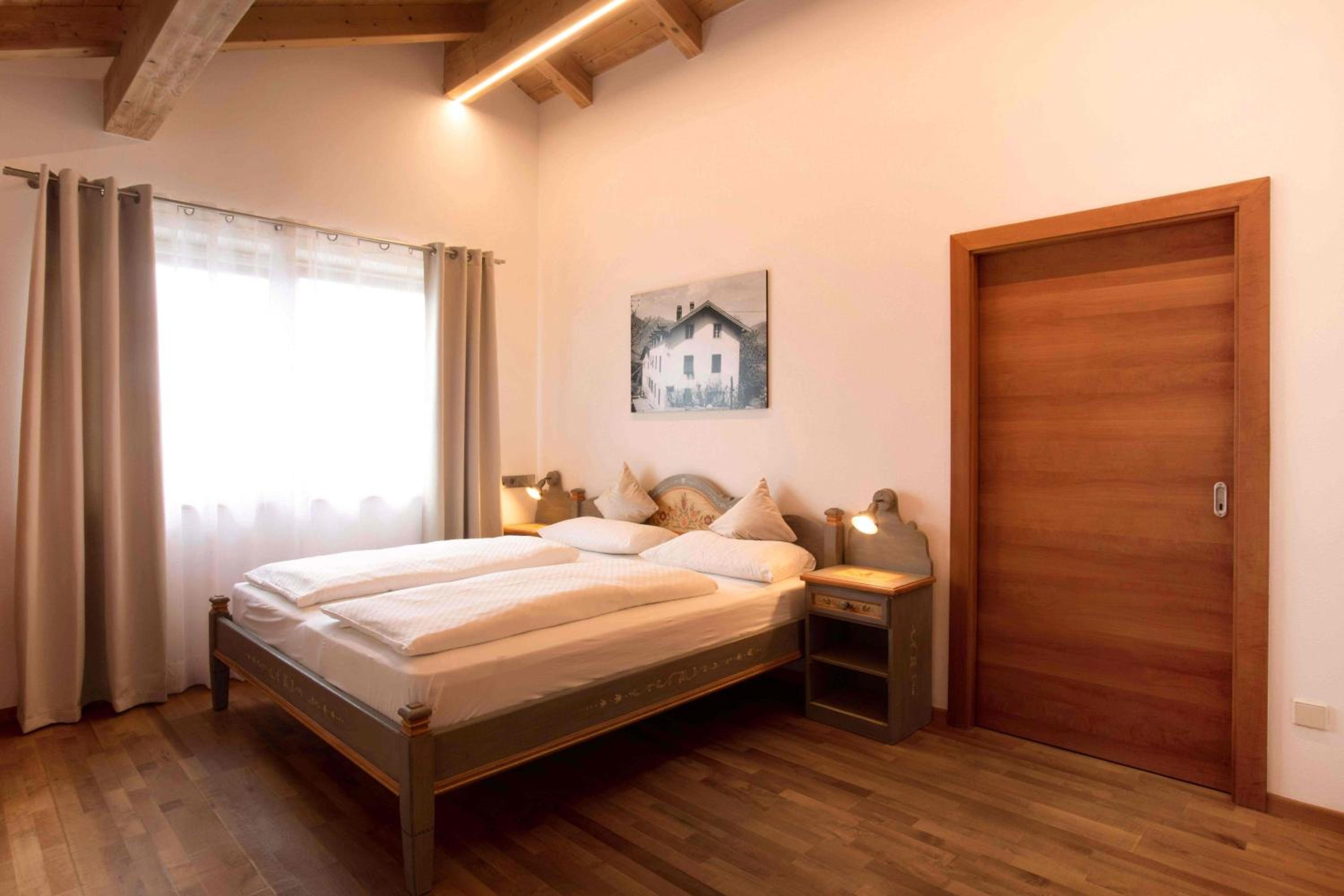 Experience the perfect blend of modern comfort and traditional charm in our apartments, featuring wooden furnishings and picturesque views of the Merano countryside.