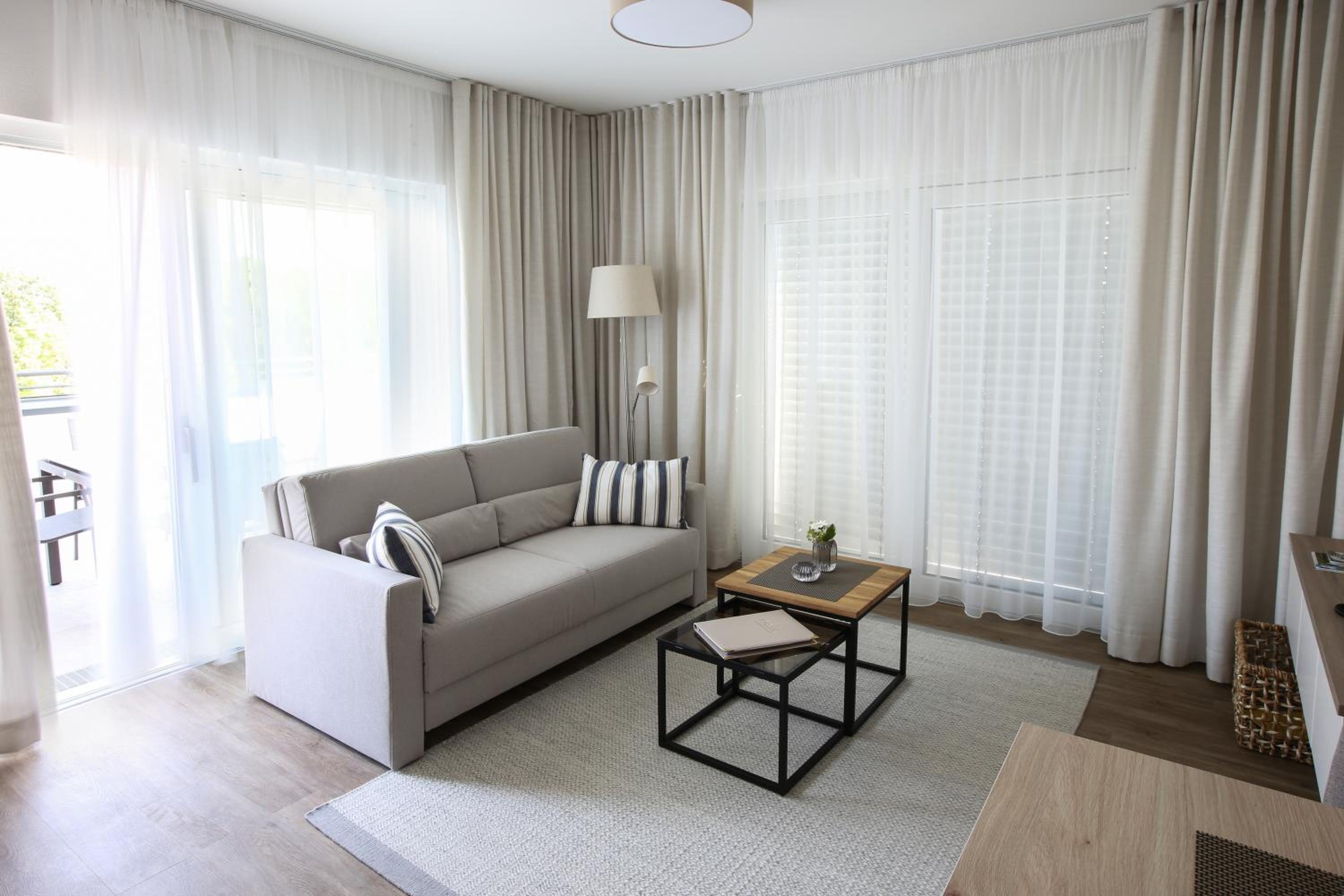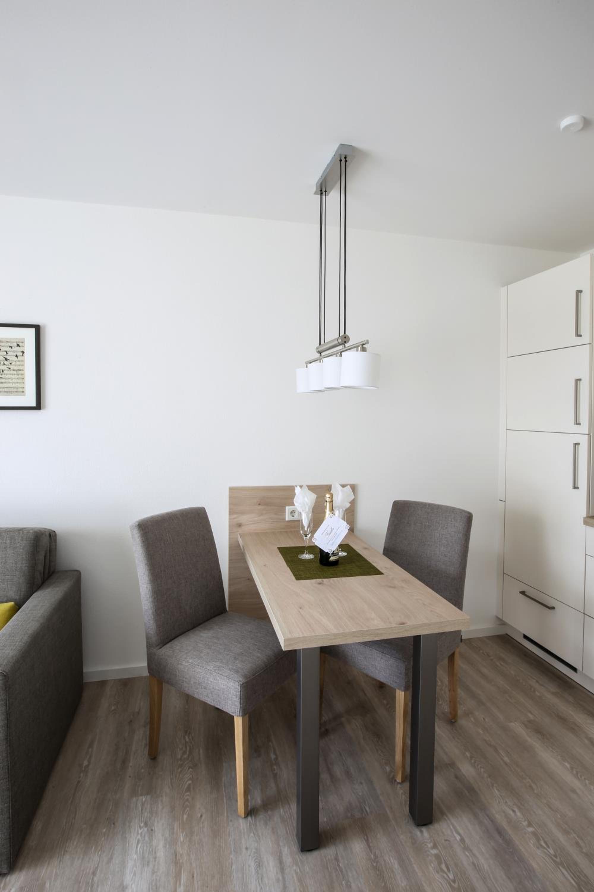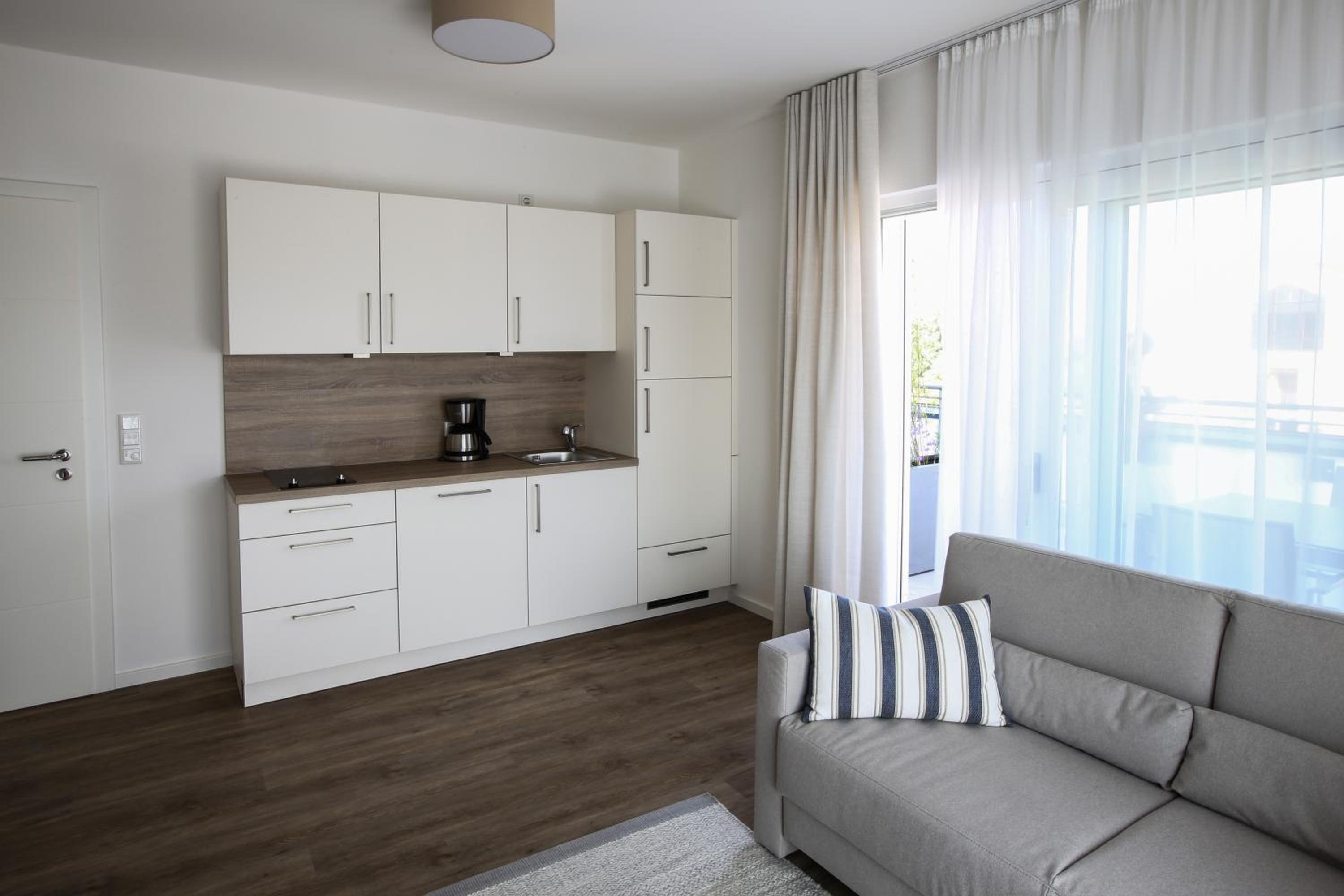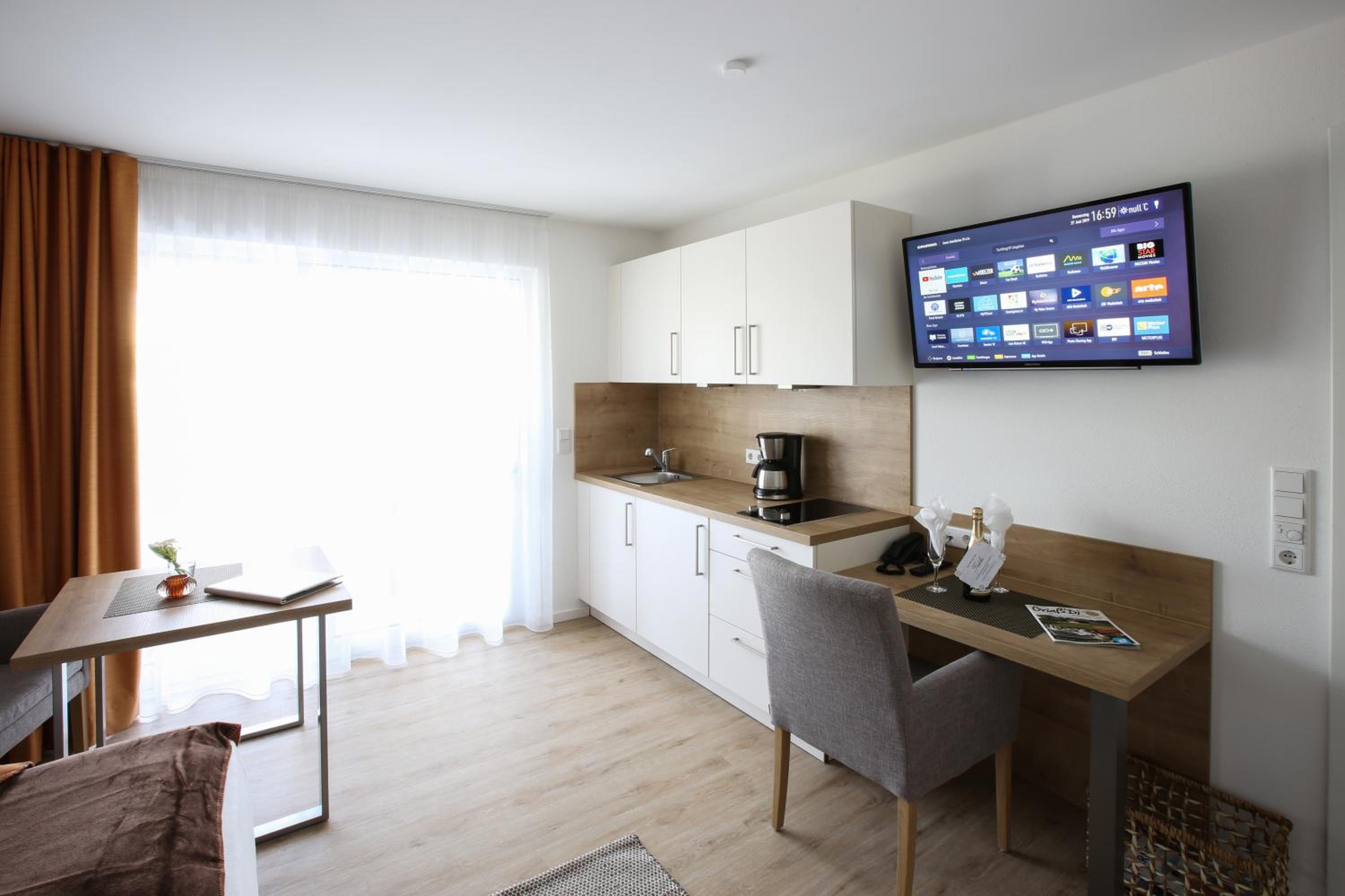 Die Küchenzeile könnte leichte Aufbesserungen vertragen wie ein Regalchen über dem Tisch, wo man Kleinigkeiten abstellen könnte. Auch der Tisch ist einfach zu klein wie auch die Sofatische. Also, wenn das mal ausgetauscht werden sollte,sollte man das beheben. Und, irgend eine Art von Schreibtisch resp PC-Tisch ist auch für das Zielpublikum, mind ü60, mind gern gesehen. Vllt sollte man anbieten - gegen Aufpreis ? - dass bei 2-wöchigem Aufenthalt mal 1 Reinigung erfolgt.