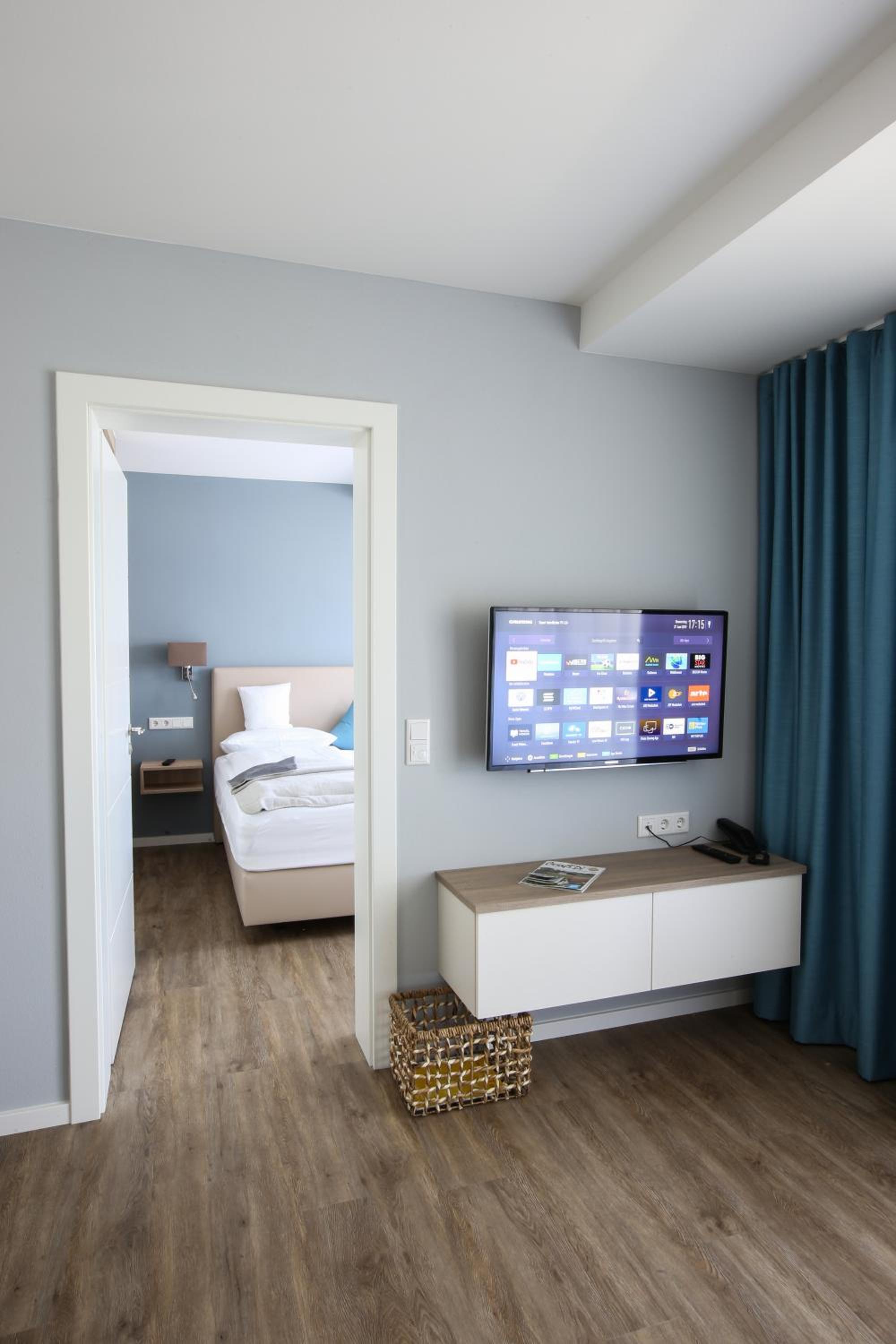 Es ist wirklich sehr angenehm, alles sehr sauber, gut durchdacht von den Fahrradzellen vor dem eigenen Auto in der Tiefgarage, die verhältnismäßig nicht so eng ist, 5 min zur Europatherme zu Fuß, 10 min zur Therme 1, gleich neben der Kurallee. In der 2Zi Wohnung TV in beiden Zimmern, das verinfacht einiges. Wäscheservice gut. Die Stadt hat prachtvolle Alleen, schön angelegte Parks. Ich sage nicht, dass das nicht gefallen hat, aber das Publikum ist halt alt bis sehr alt und mind die Hälfte mit Rollatoren und anderen Mobilitätshilfen unterwegs. Das Städtchen ist lebendig, es wird wirklich einiges geboten um für die Gäste kurzweilig zu sein.