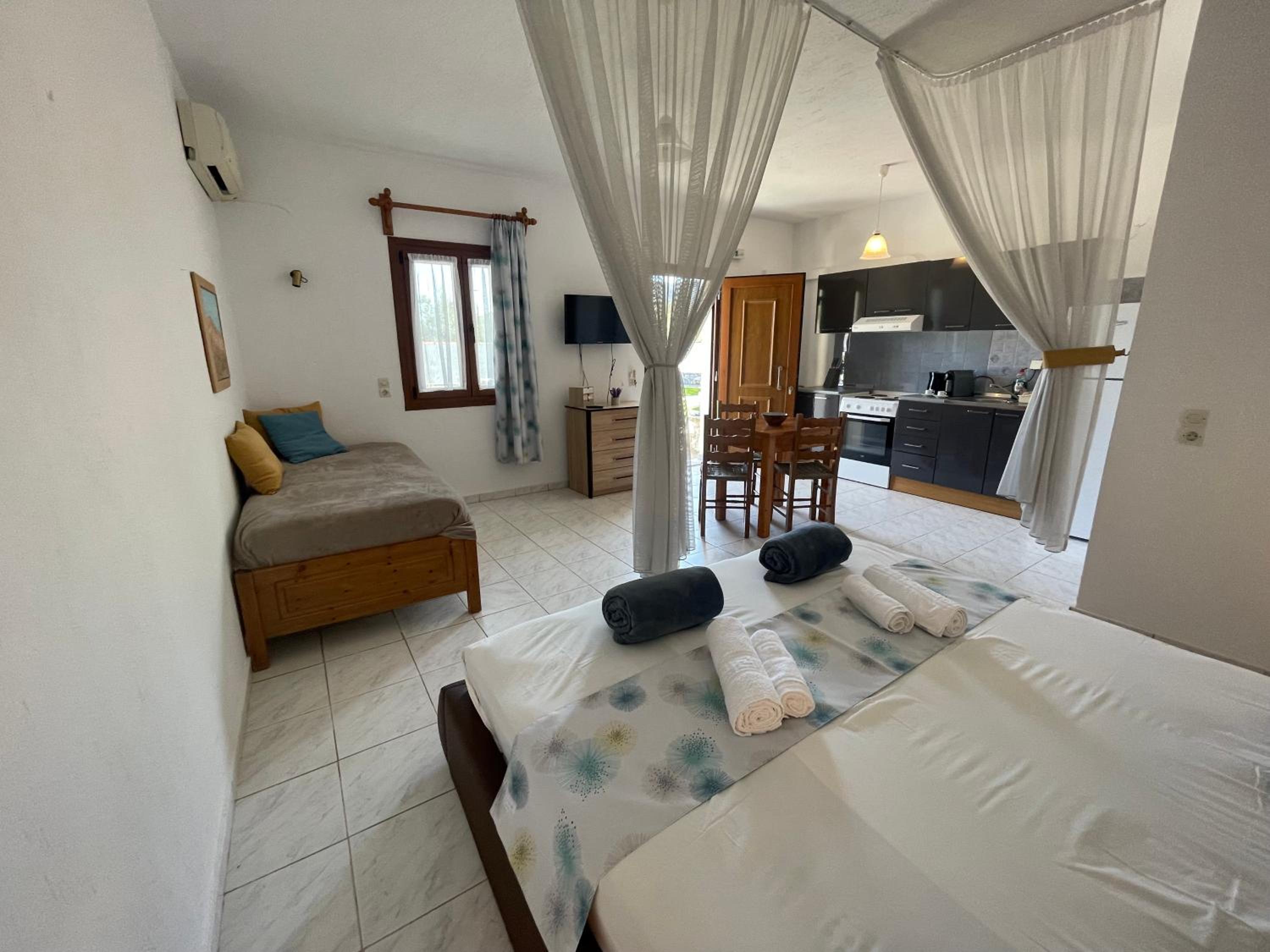 BlueMandala Apartmanhouse is a charming getaway in Panormos Skopelos, offering picturesque garden and pool views, just a short distance from Skopelos Town Beach and Glyfoneri Beach. Family-Friendly Accommodation includes well-equipped kitchenettes and private terraces with stunning mountain views. Guests can enjoy a complimentary Continental Breakfast each morning, perfect for starting the day off right. With convenient amenities such as free WiFi, private parking, and a 24-hour front desk, your stay at BlueMandala Apartmanhouse will be seamless and enjoyable. Don't miss the chance to experience the beauty of Skopelos and book your stay now!