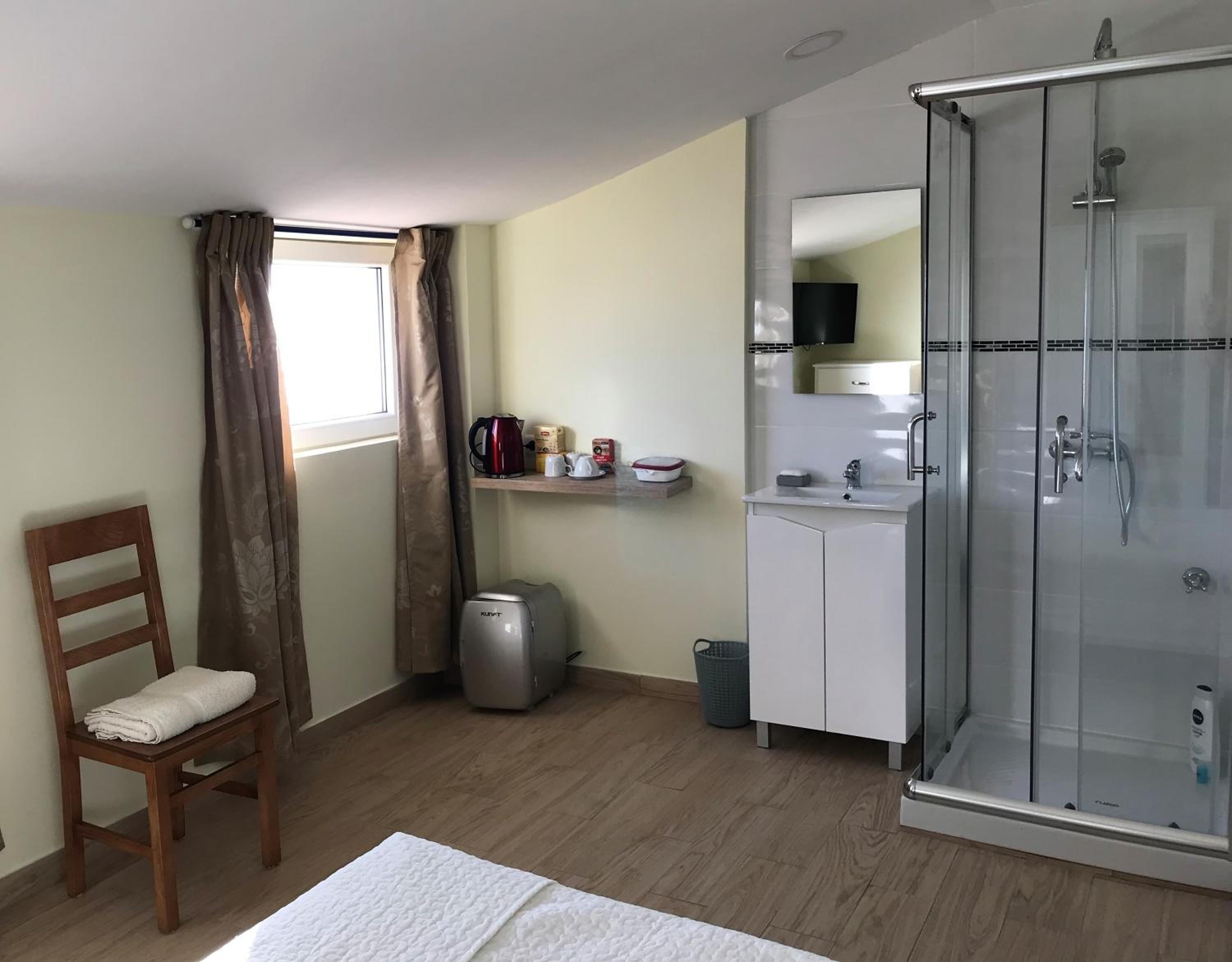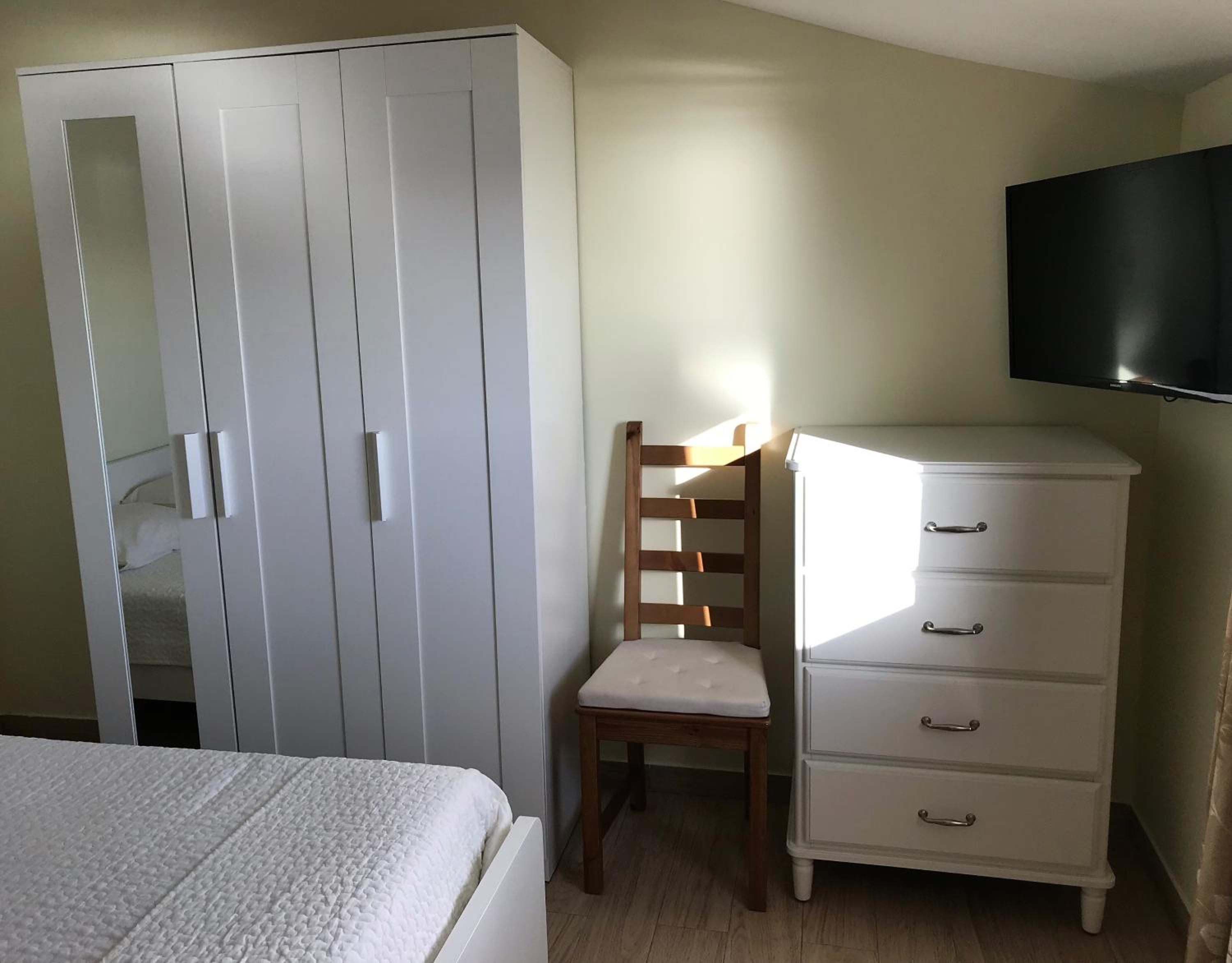 bed matrix is very soft and thin so causes back pain. no kitchen of an kind, very small fridge in the hallway that is shared among the other rooms' guests.