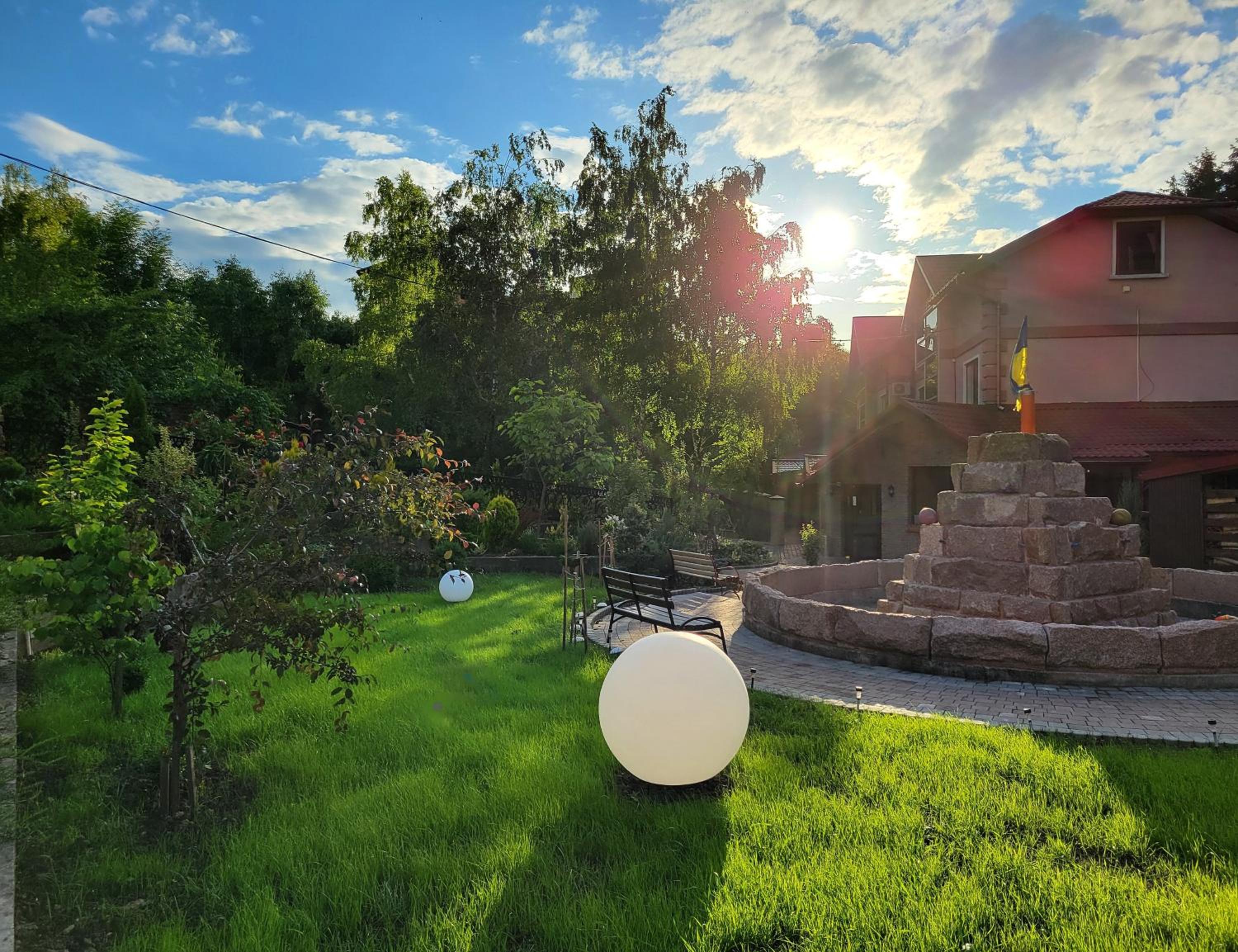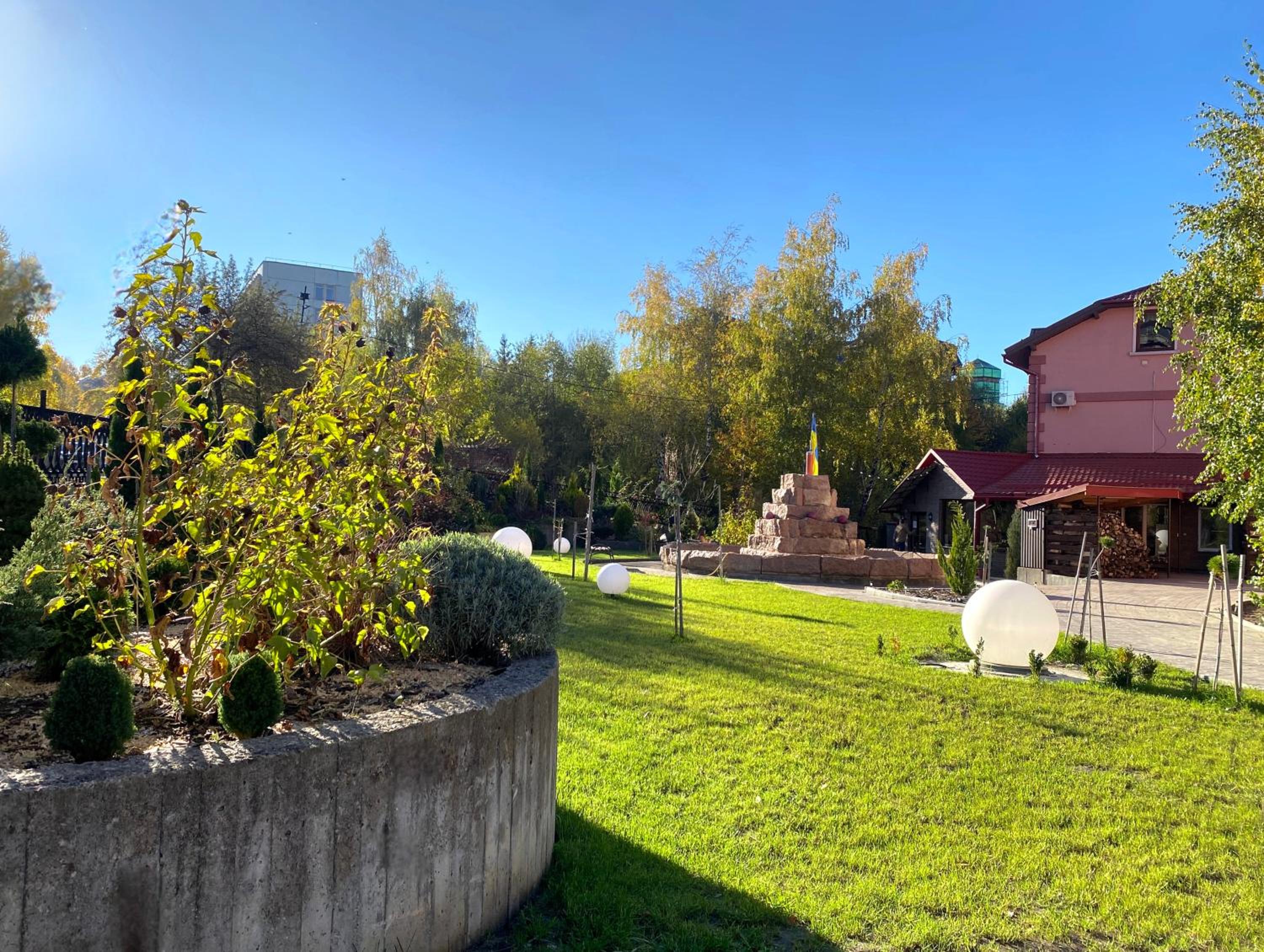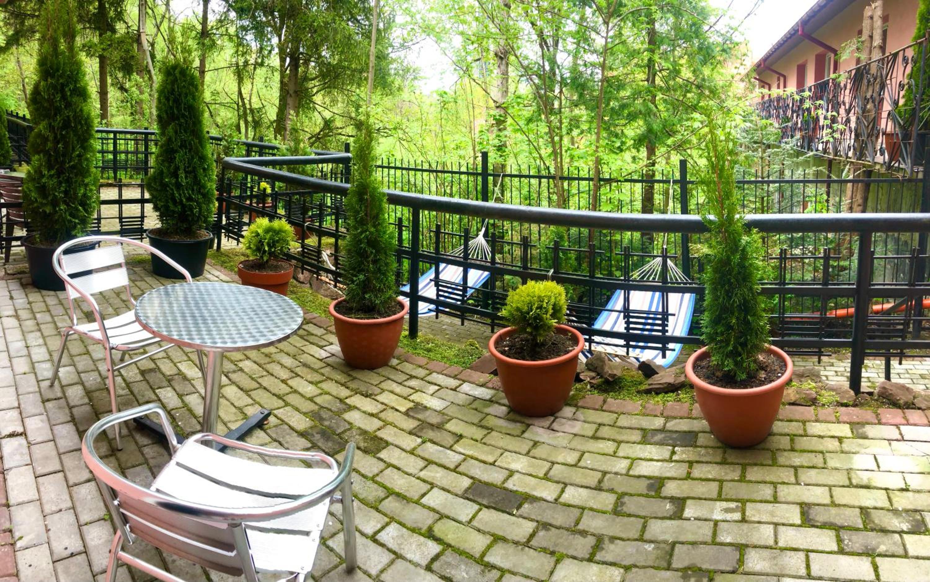 Сама територія дуже чиста і охайна незважаючи на перший погляд трішки депресивне розташування, видно що весь персонал докладає усіх зусиль для створення дійсно комфортного місця для проживання та проведення гарного часу, на території є озелененні місця з деревами, альтанки та гамаки, гойдалки для дітей та дорослих, і з приємного також є чан з басейном та кімната для масажу, окремо слід похвалити масажиста - що також завжди вам допоможе за відсутності власника.