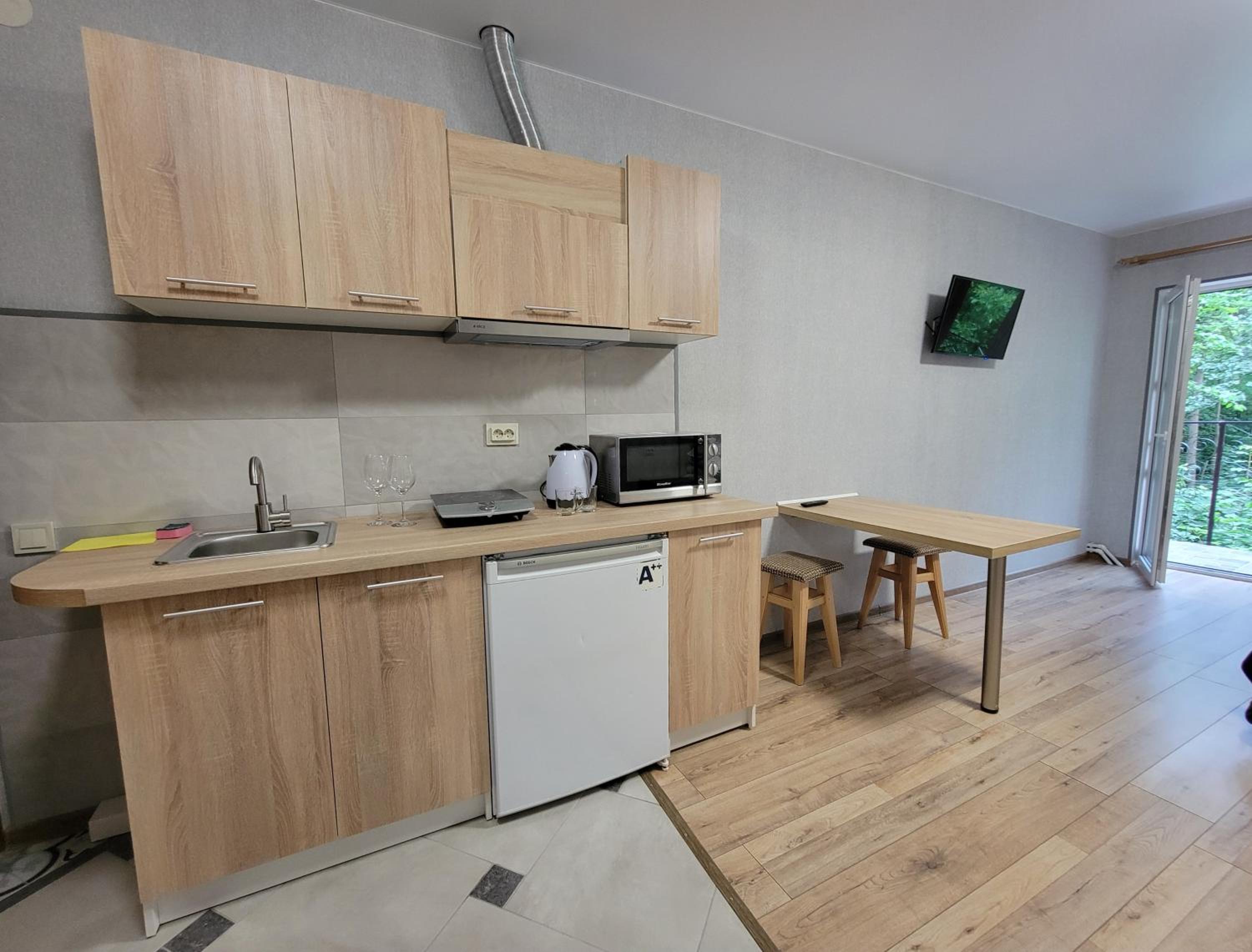 Жили в апартаментах,є власна мінікухня і холодильник - все працює, все чисте і доглянуте.