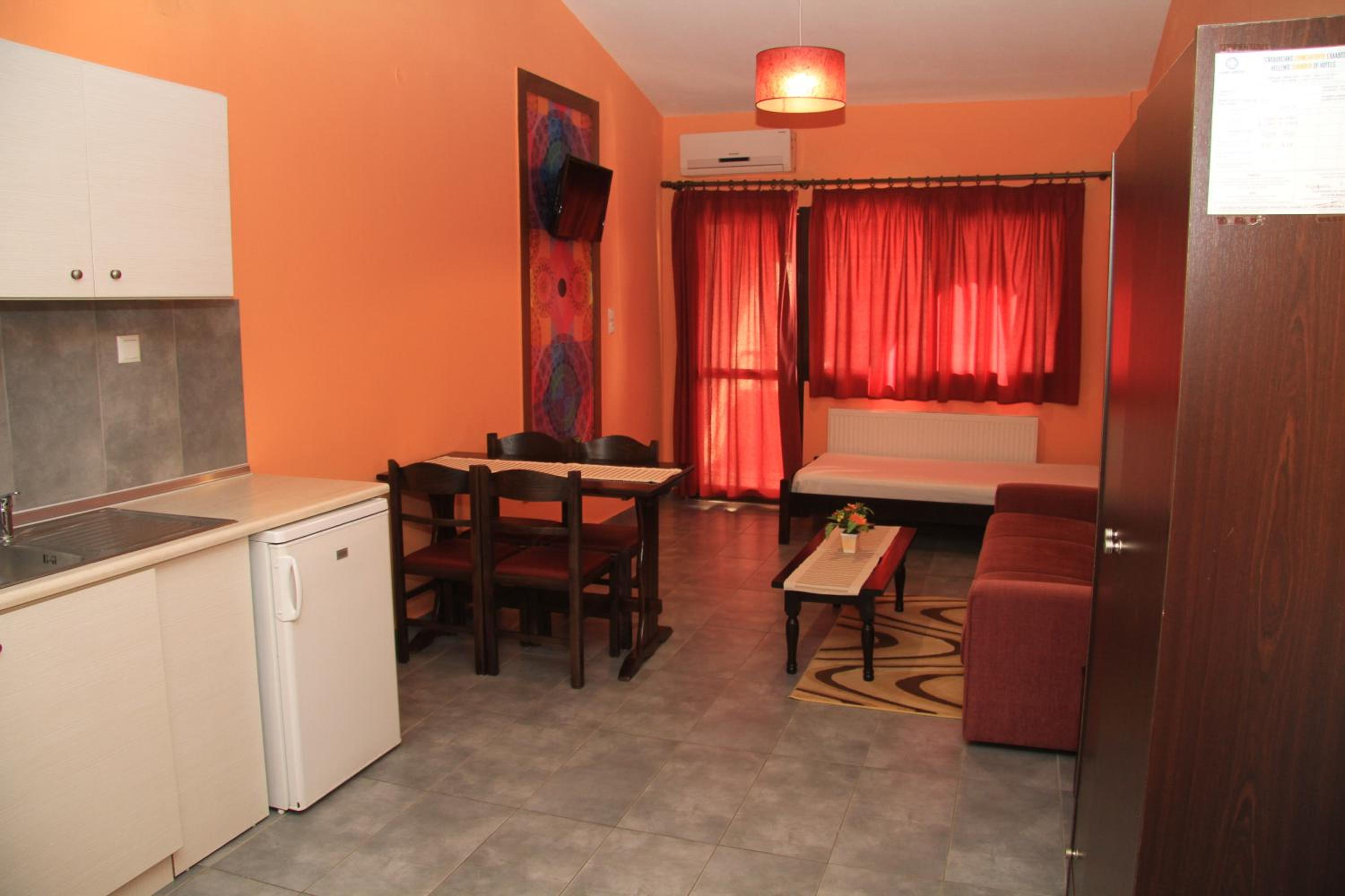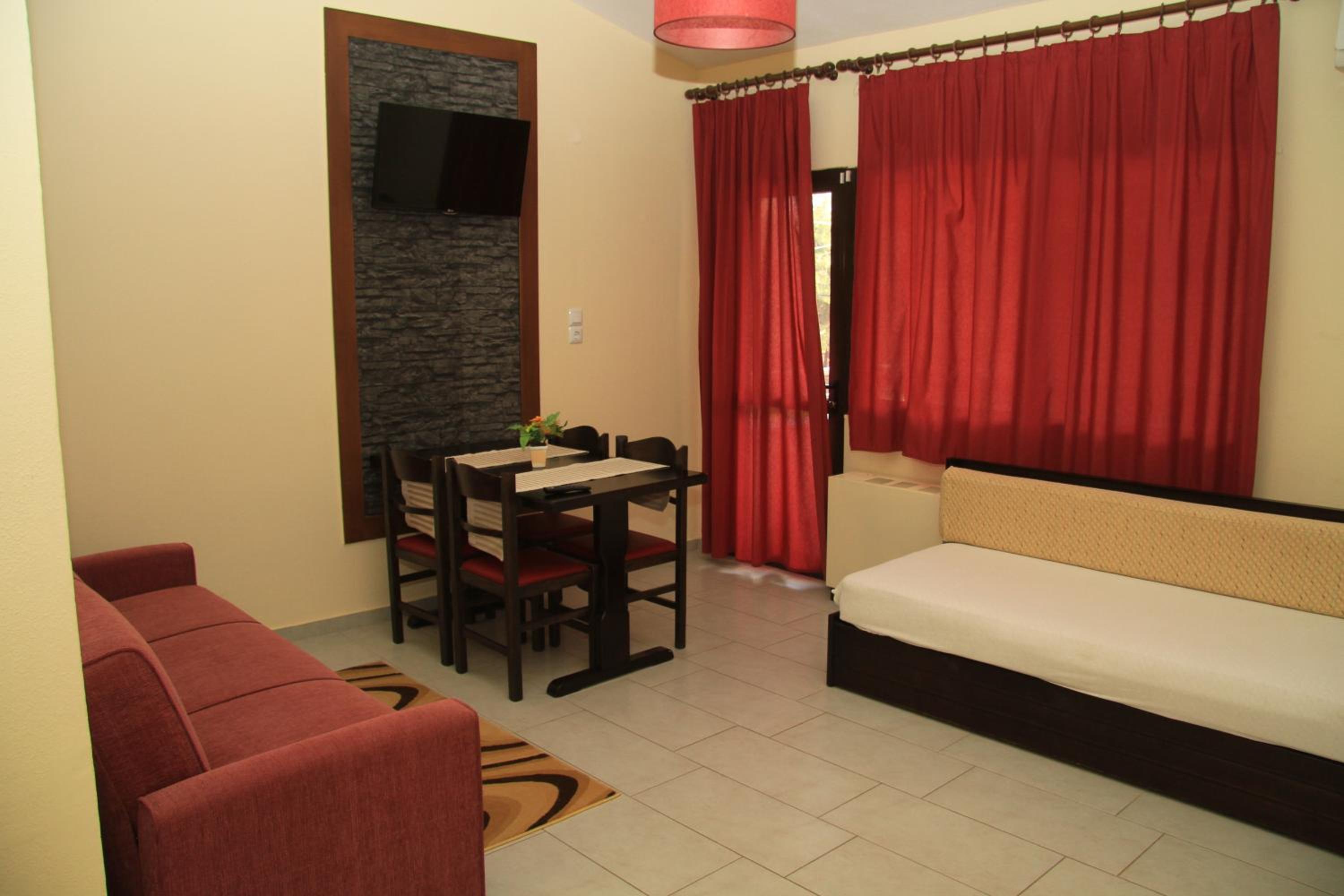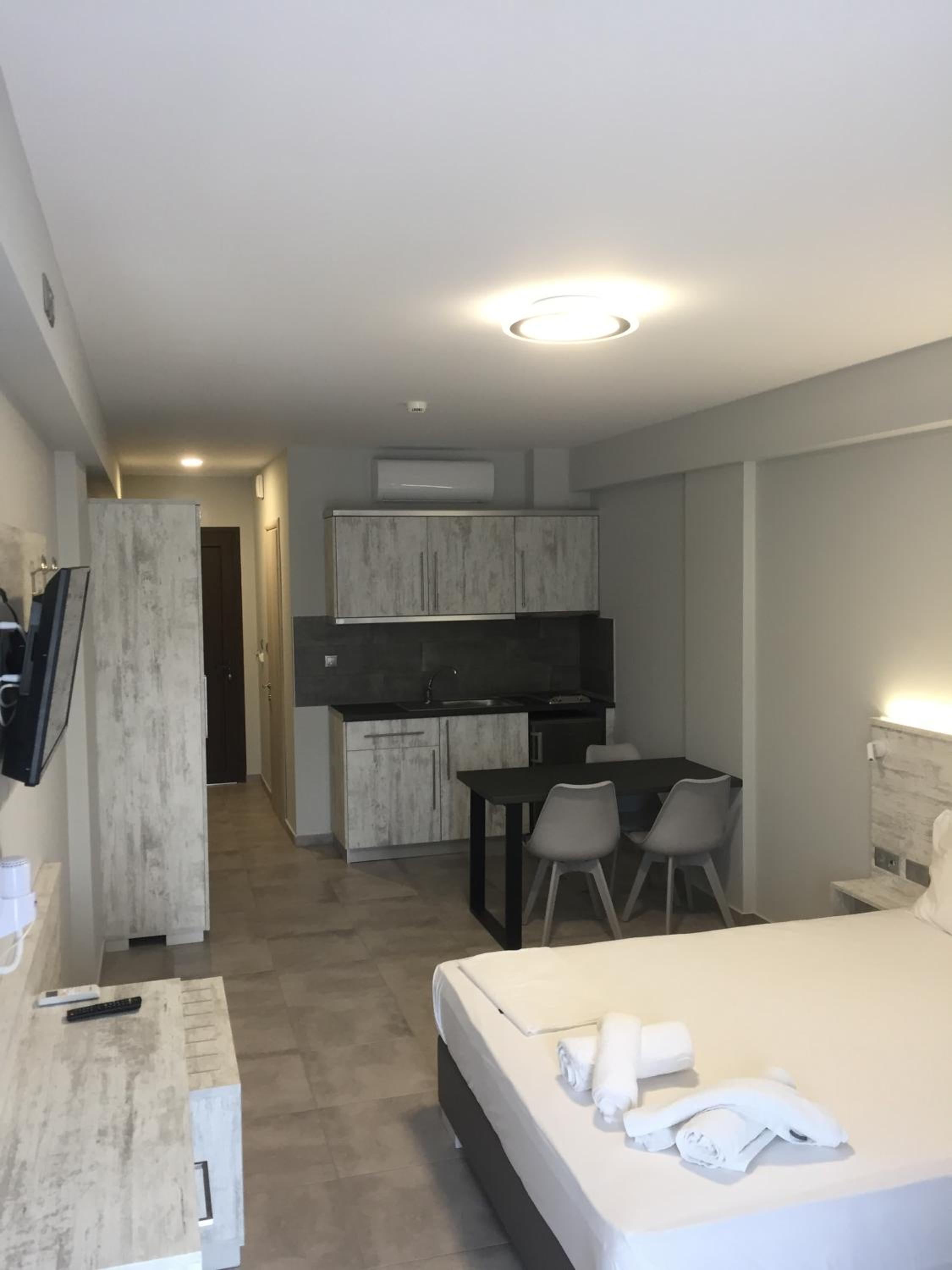 Relax in air-conditioned studios and apartments equipped with modern amenities like a flat-screen TV, kitchenette, and balconies overlooking the hotel garden.