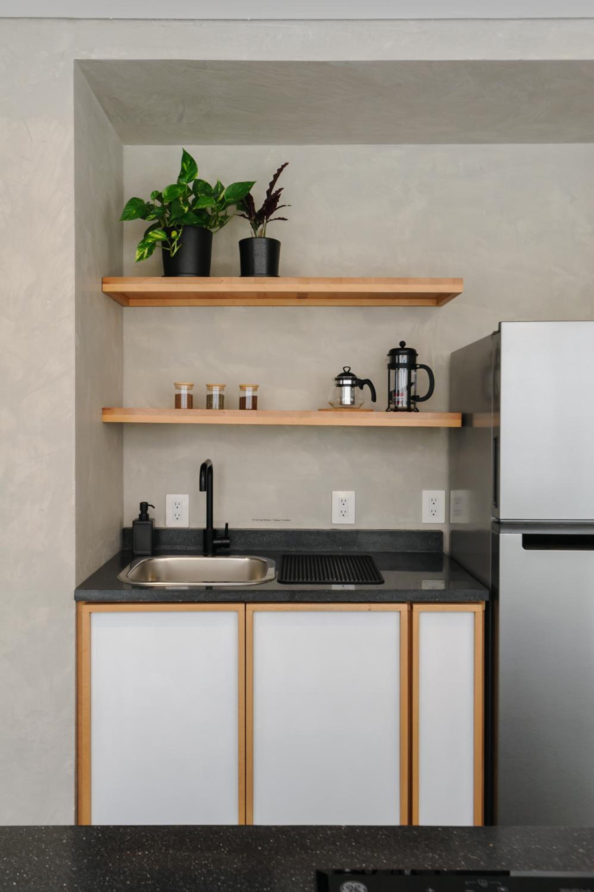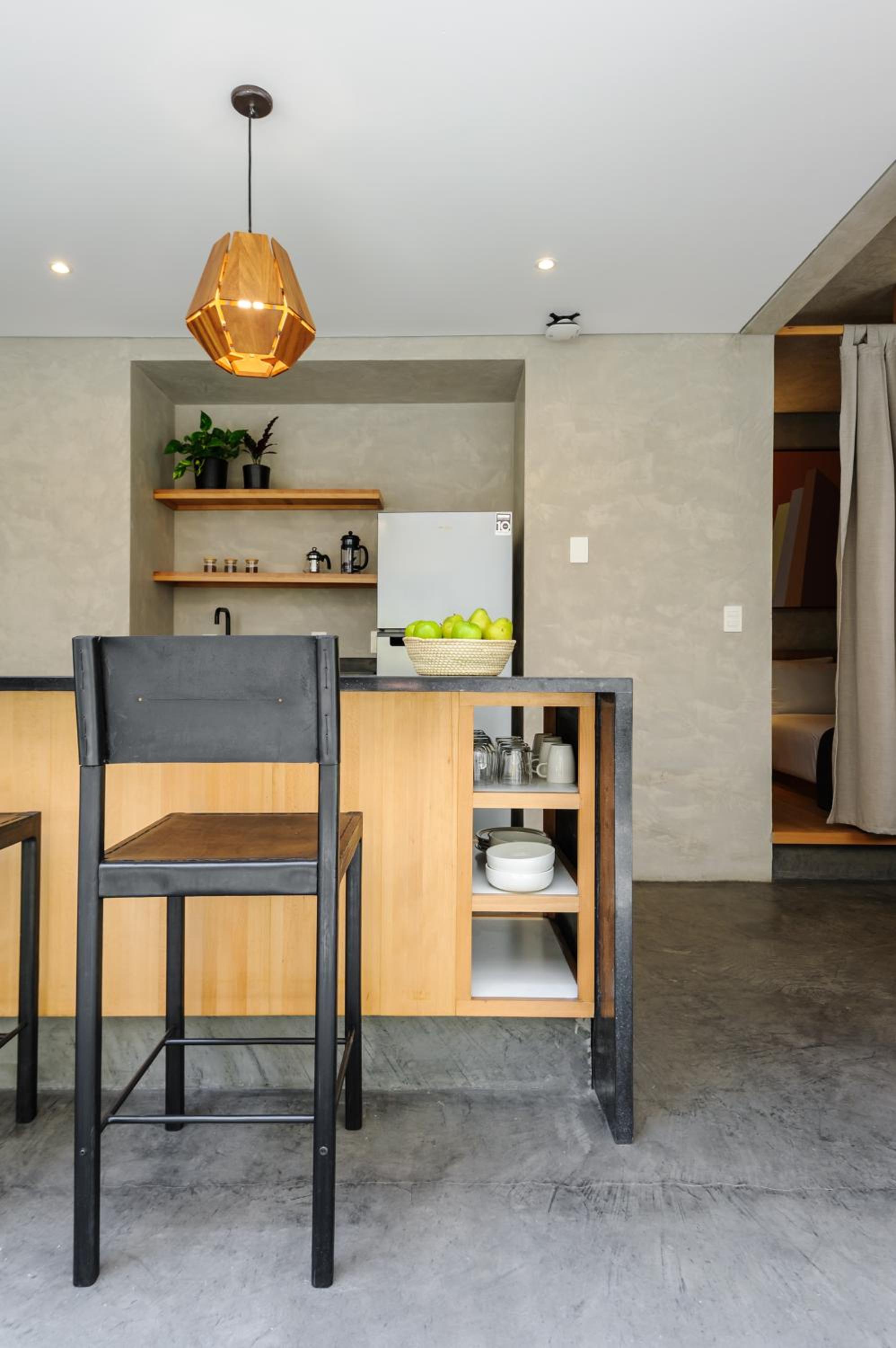 The space of the room is well used. It was good for us to stay 4 nights the 2 of us as a couple spending most of our days outside. We had extra facilities like coffee, tea, snacks and beer in the kitchenette once we arrived. The roof had great pastries and coffee in the morning. The staff onsite was wonderfully kind. The location is incredible.