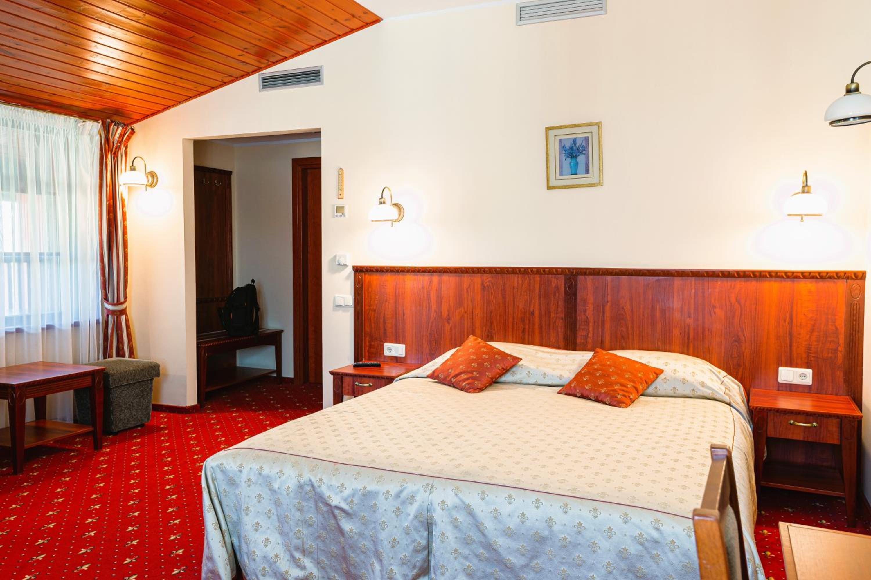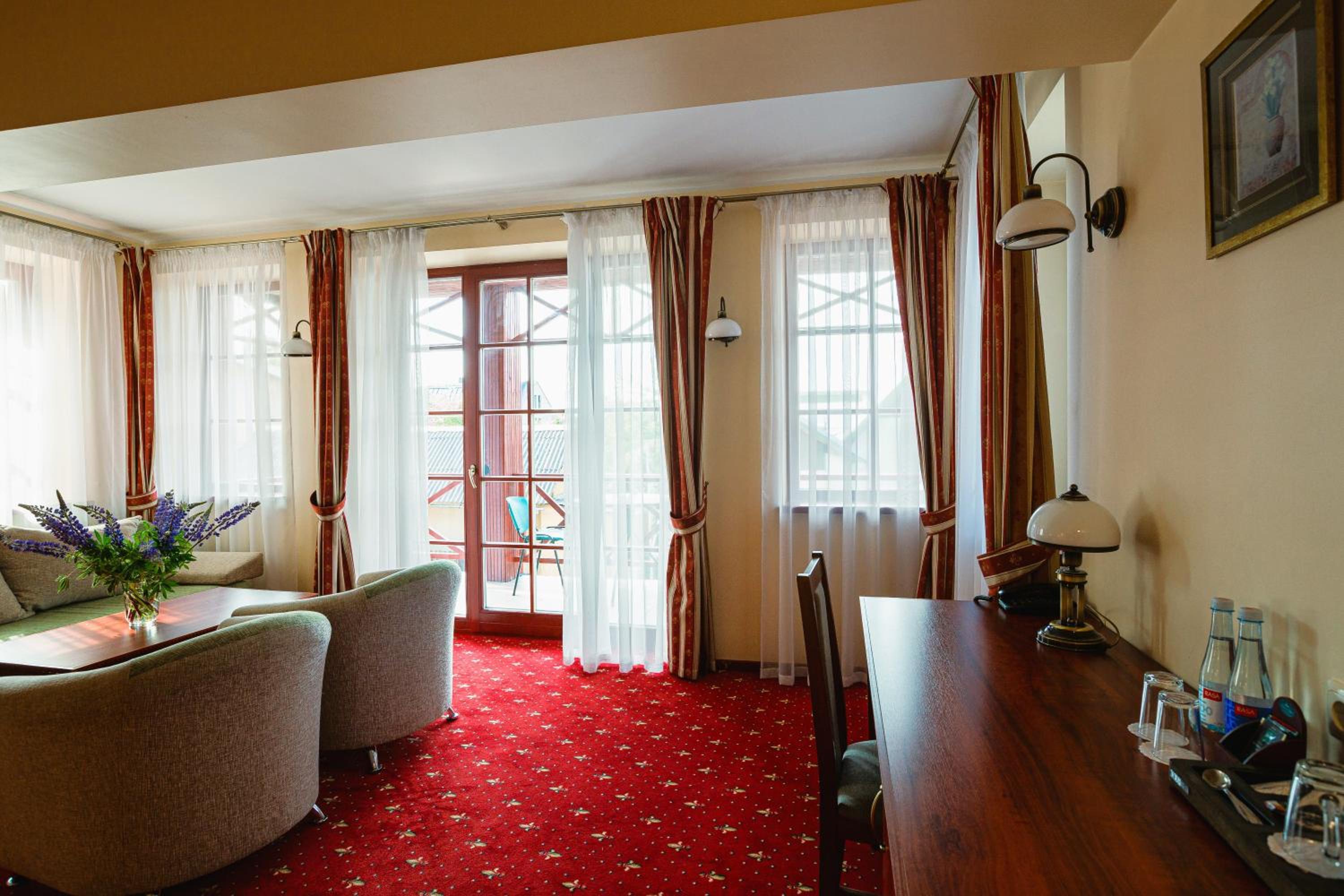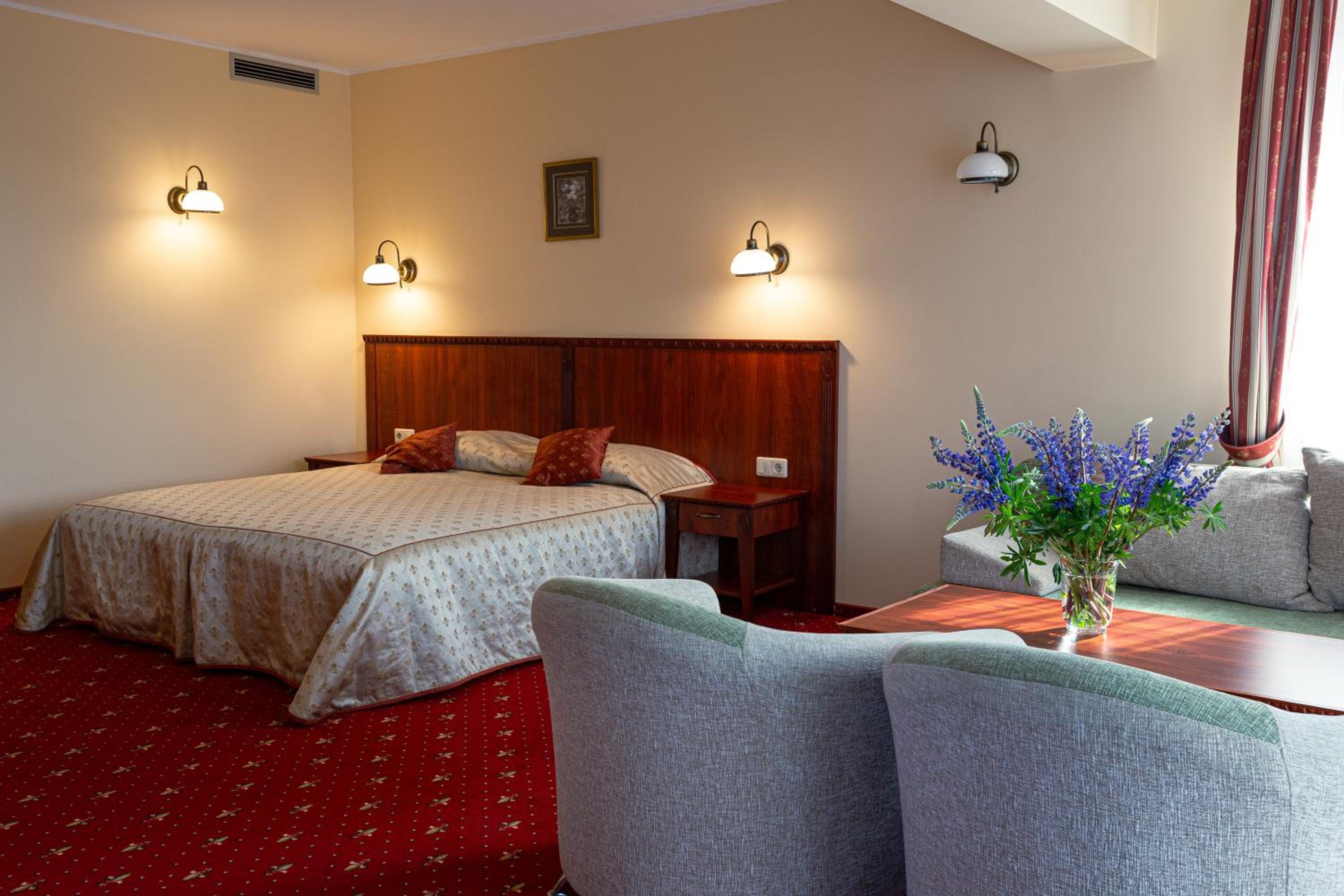 Guests can unwind and rejuvenate at the hotel's spa complex, swimming pool, and sauna, perfect for a tranquil retreat.