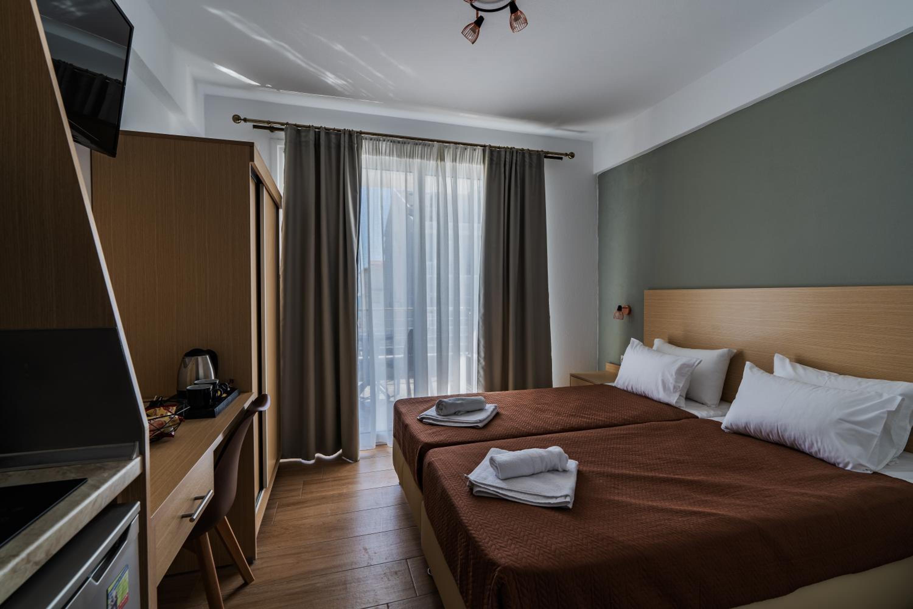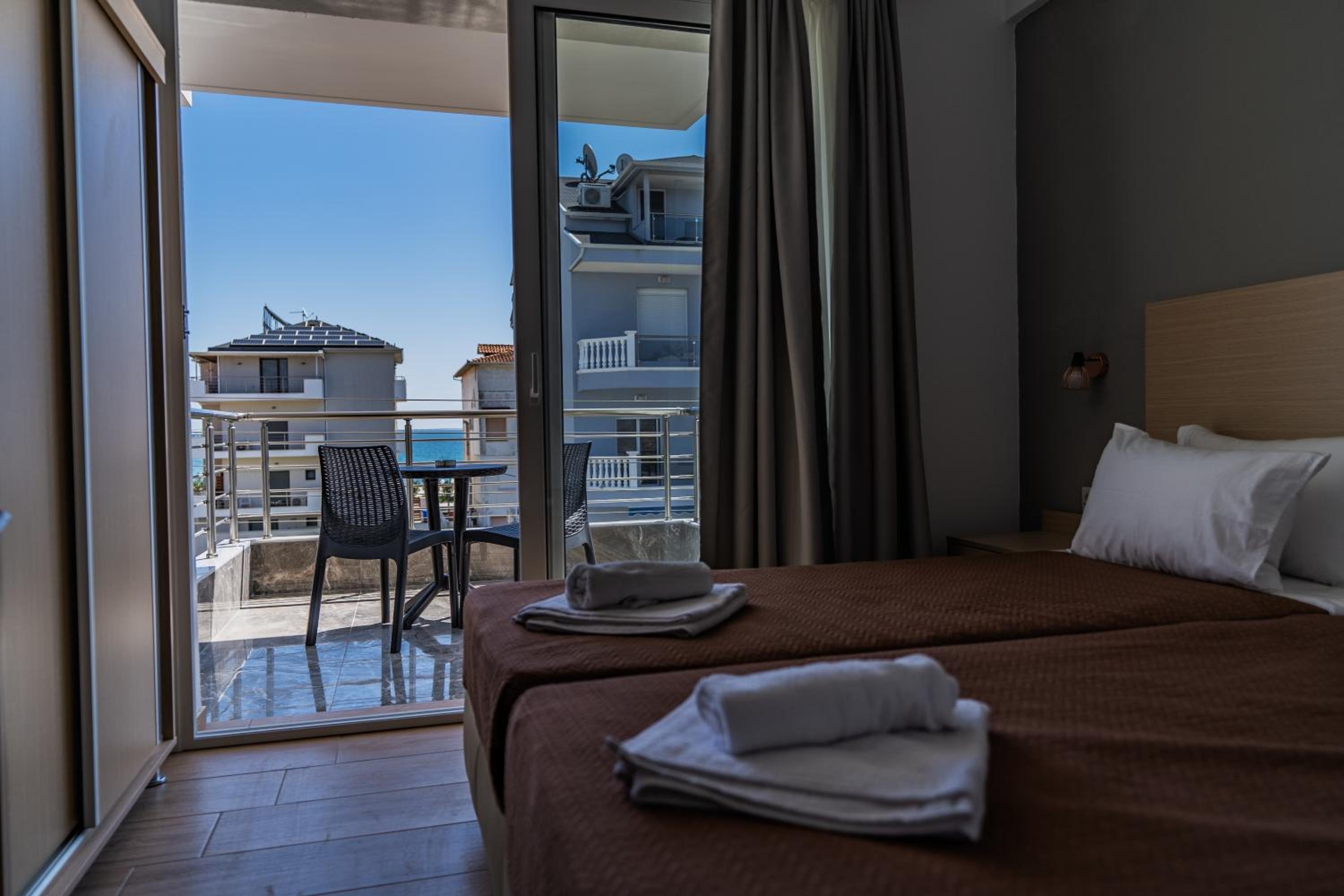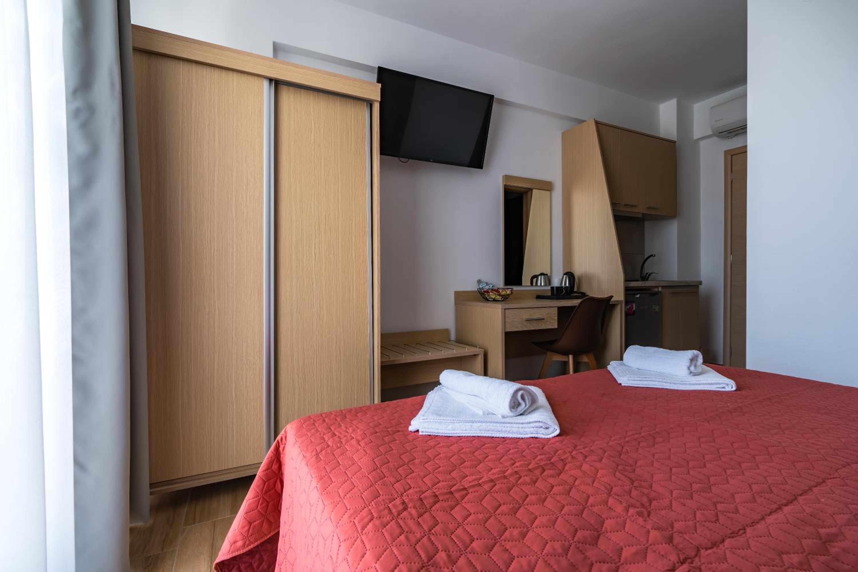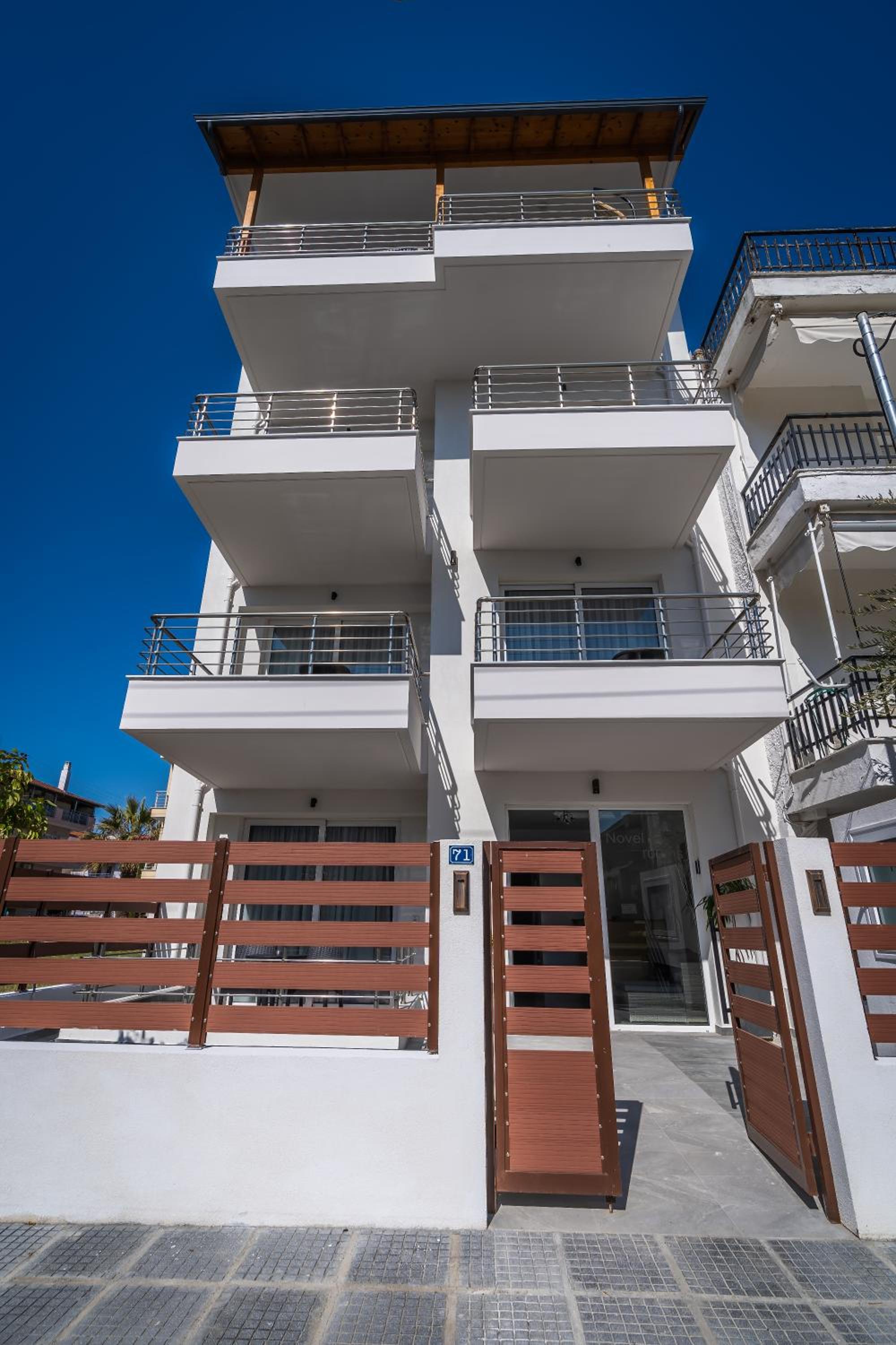 Experience a sustainable stay at Novelrooms, just steps away from Paralia Kolimvisis Beach. Indulge in our allergy-free rooms, equipped with modern amenities including a fully equipped kitchenette and a cozy patio for relaxation. Each air-conditioned unit offers a private bathroom, terrace, and a balcony with stunning city views. Enjoy the convenience of a lift, private check-in/out, and complimentary WiFi throughout your stay. Explore nearby attractions like Korinos Beach and Dion, then return to the comfort of your room. Book now and make Novelrooms your home away from home.