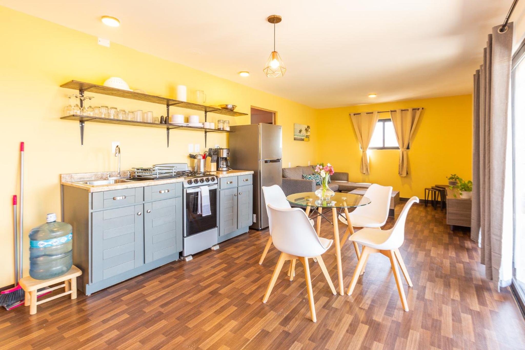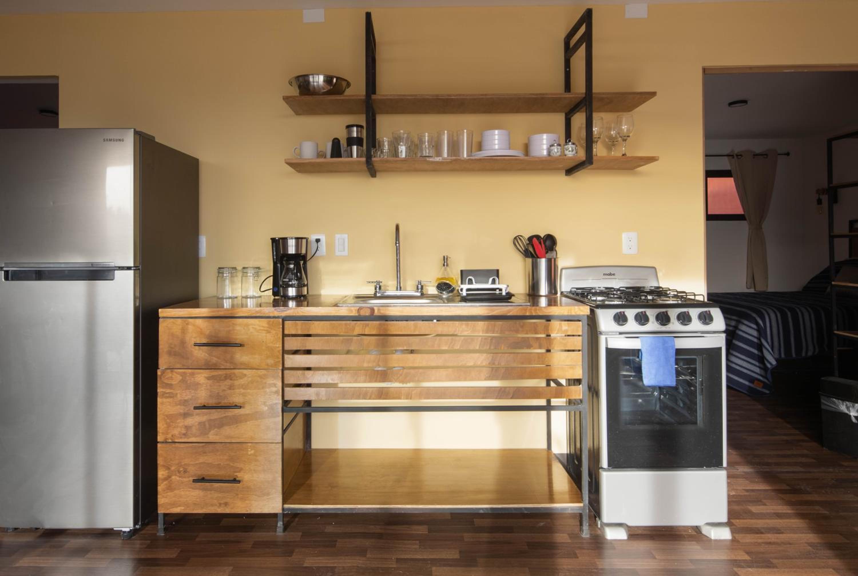 Es fácil de llegar, muy cerca del pueblo, cuenta con lavandería, una tienda de alimentos y detalles como prendas de ropa, las habitaciones estan limpias, son grandes - sala, cocina, recamara y baño. Cuanta con su área de jardín muy agradable y limpio. Tiene estacionamiento muy accesible. Y lo más encantador desdé mí punto de vista es que aceptan mascotas. Mí perrita esta encantada con el jardín explorando toda el área. Los perritos y gato del hotel son muy amistosos, divinos.